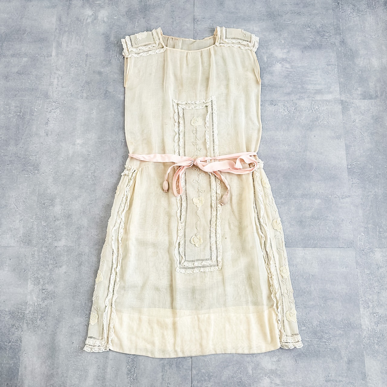 Antique 1920's ivory lace no sleeve dress