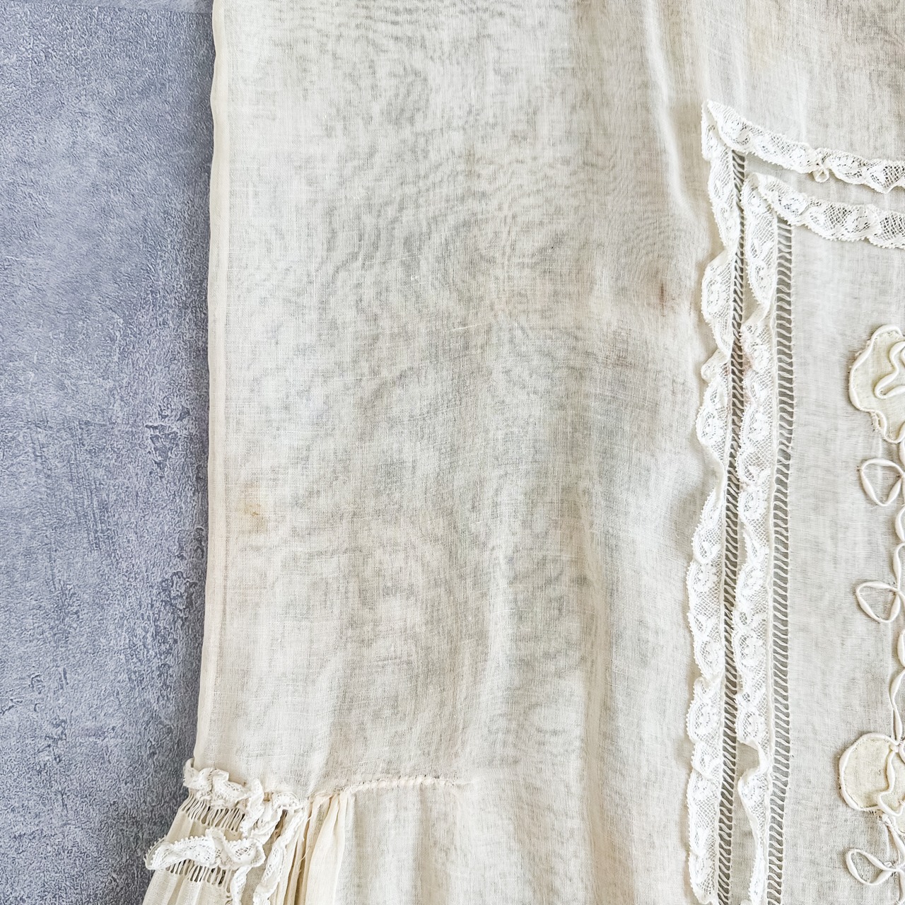 アンティークならではな繊細な透かし編みやレースが随所に使用された美しすぎる逸品です。