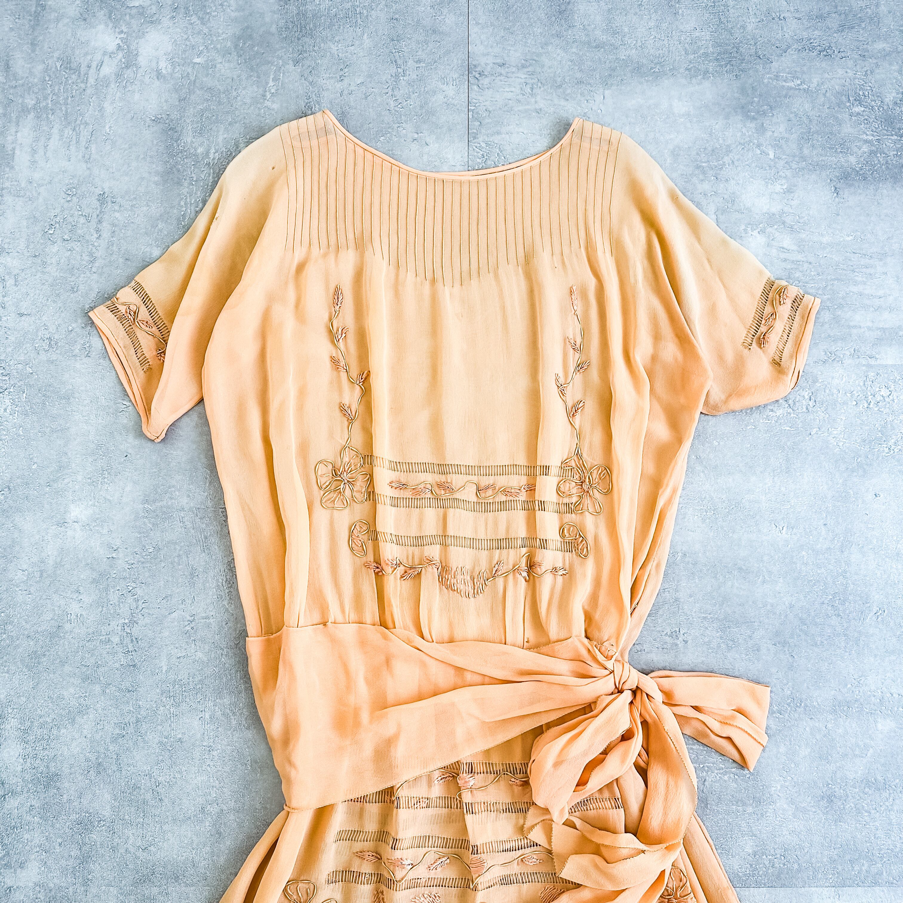 Antique 1920's pleats×embroidery design dress