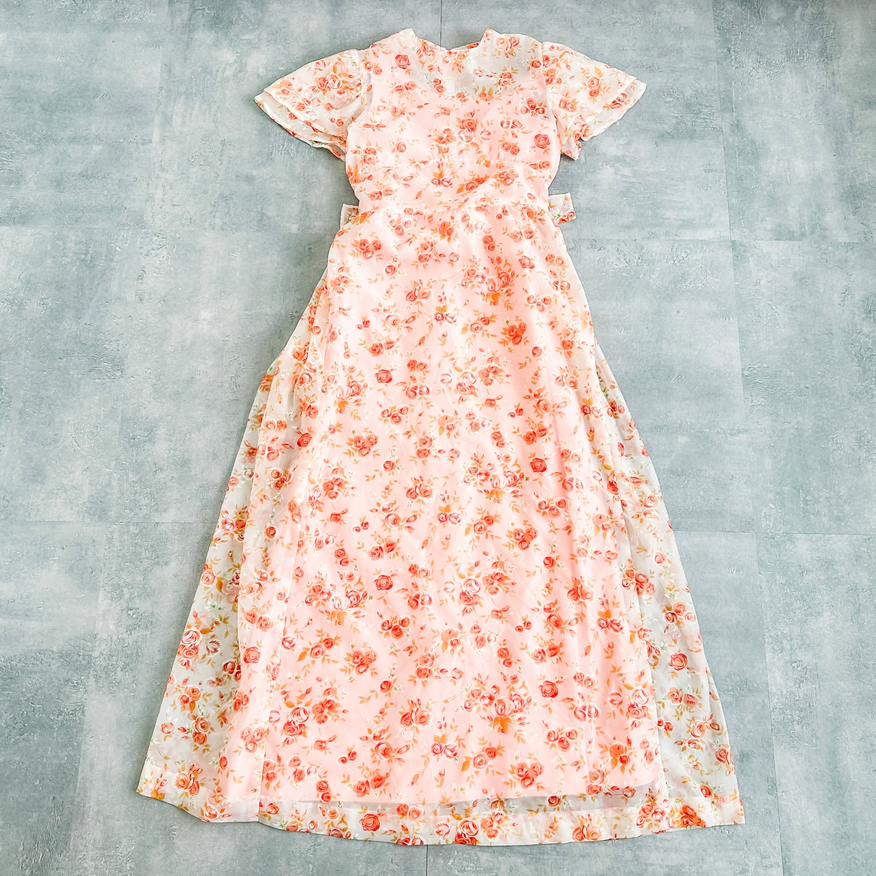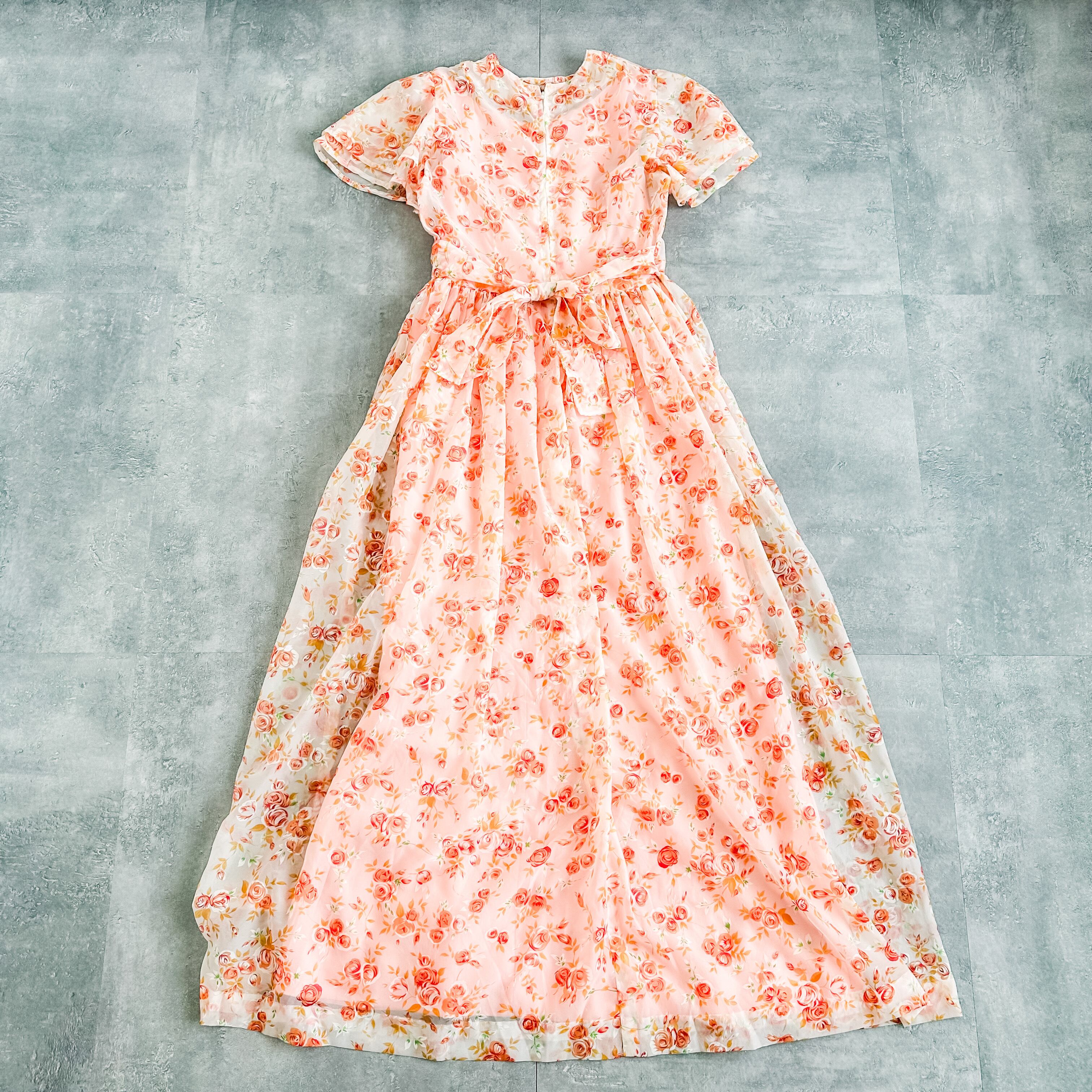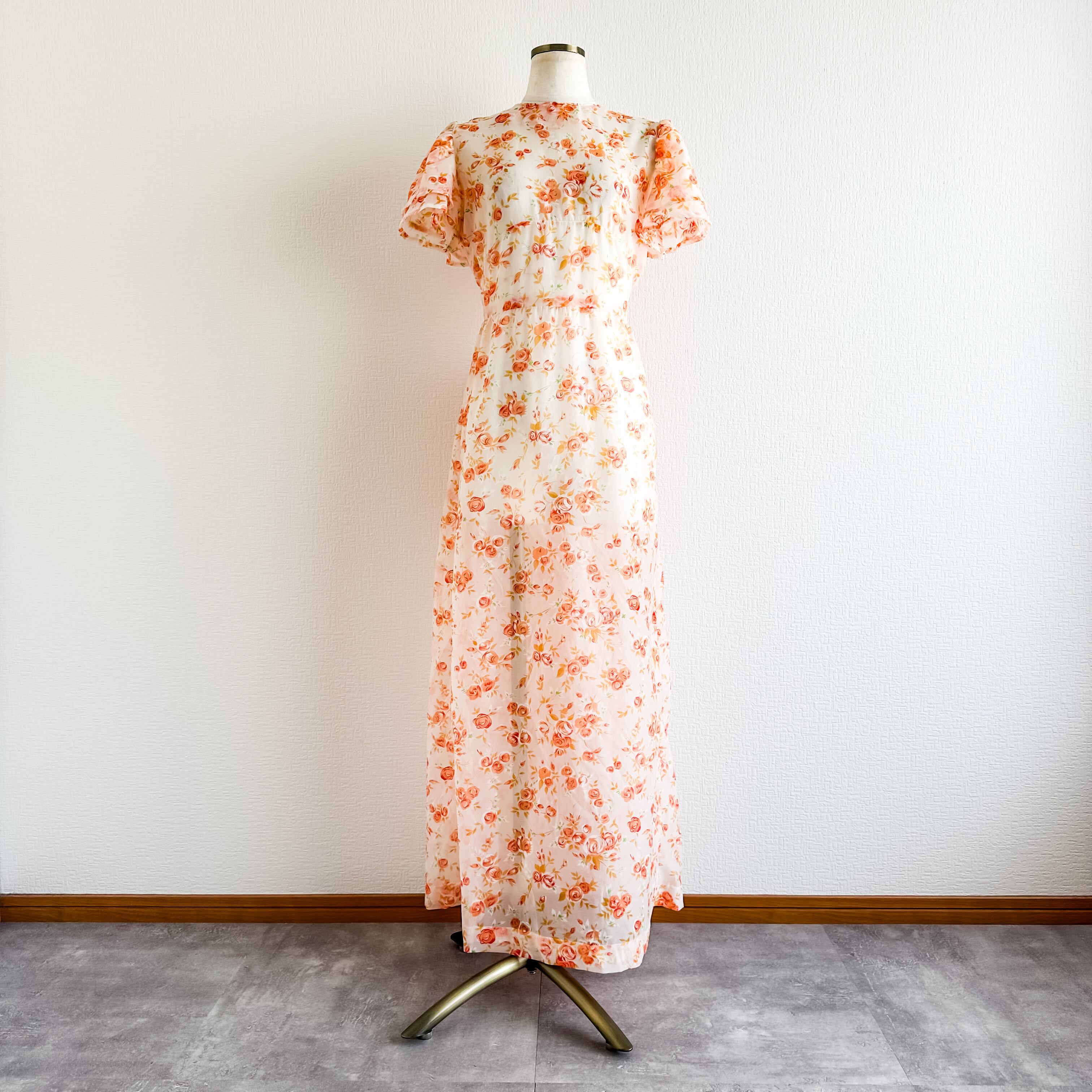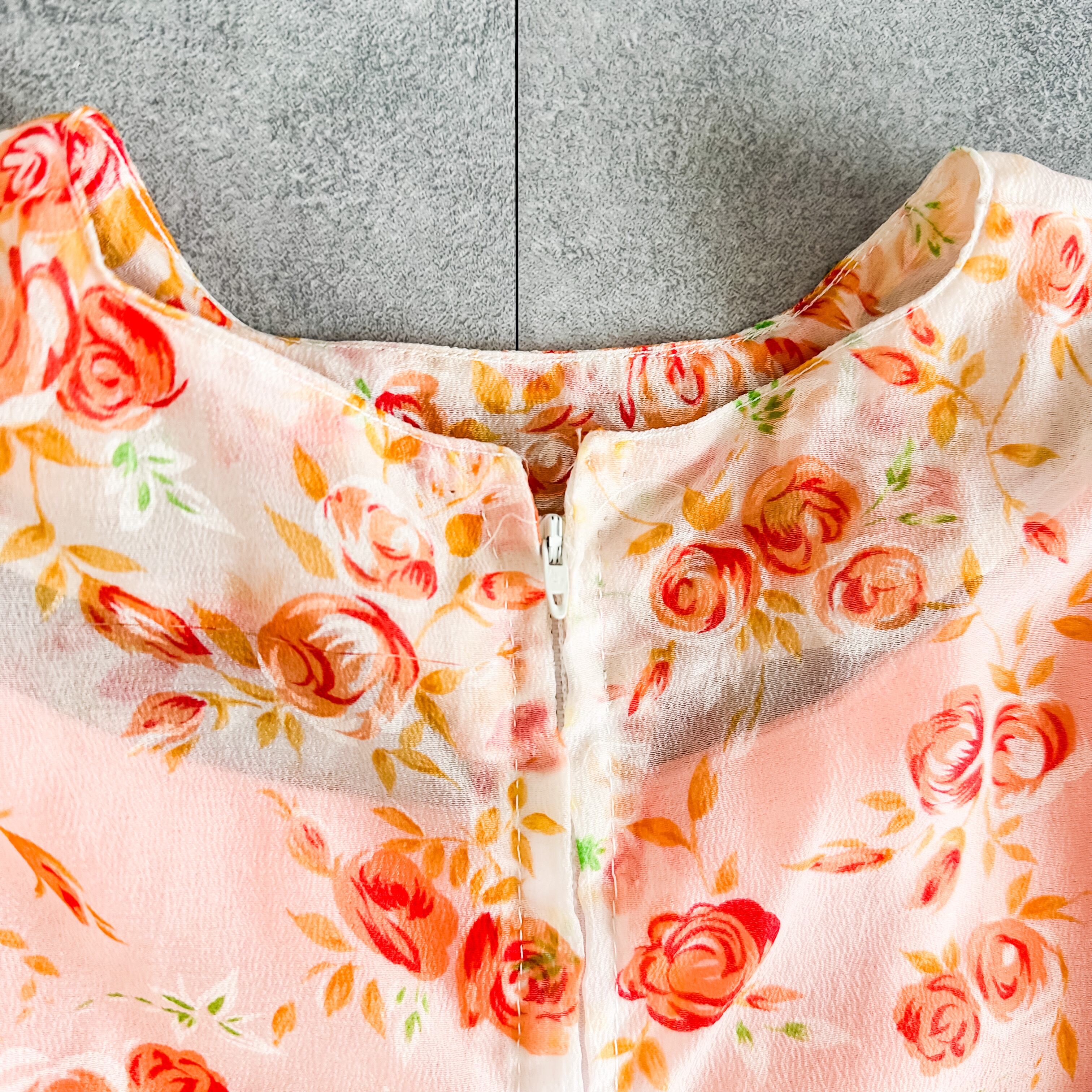 少しシアーな素材感に、全面にお花のテキスタイルがプリントされた素敵な逸品です。