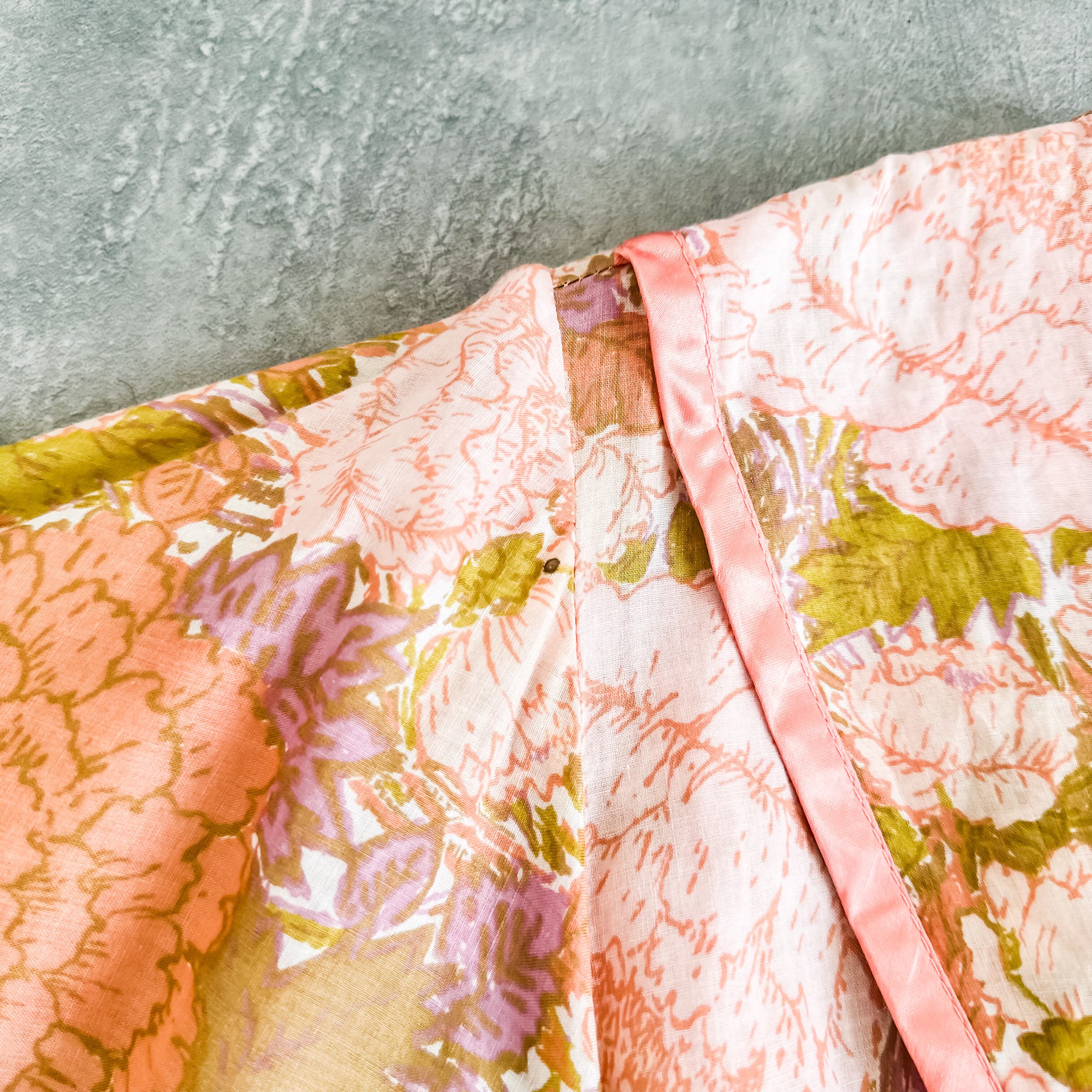 サテンのパイピングや全体のお花柄のテキスタイルなど可愛らしさの詰まった素晴らしい逸品です。