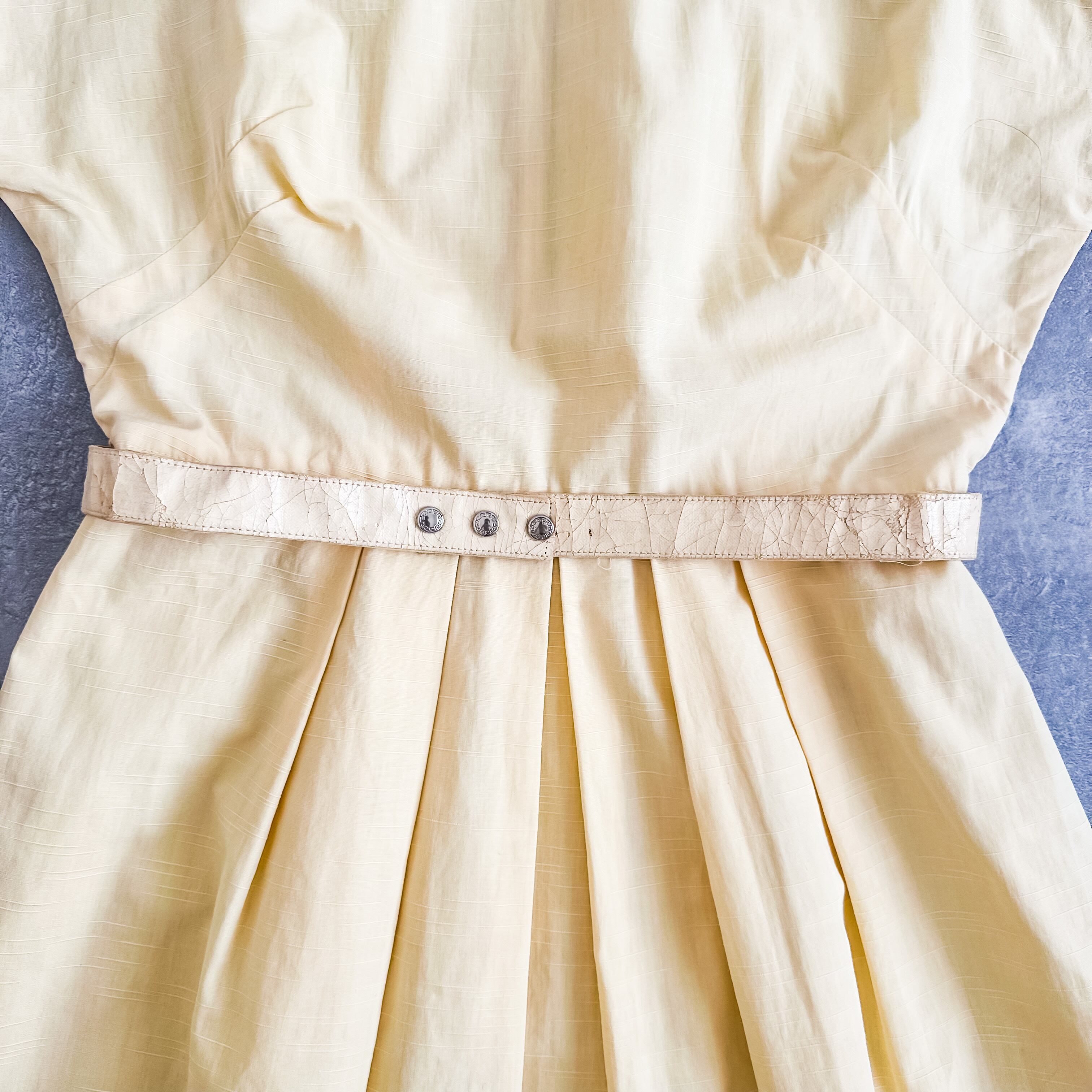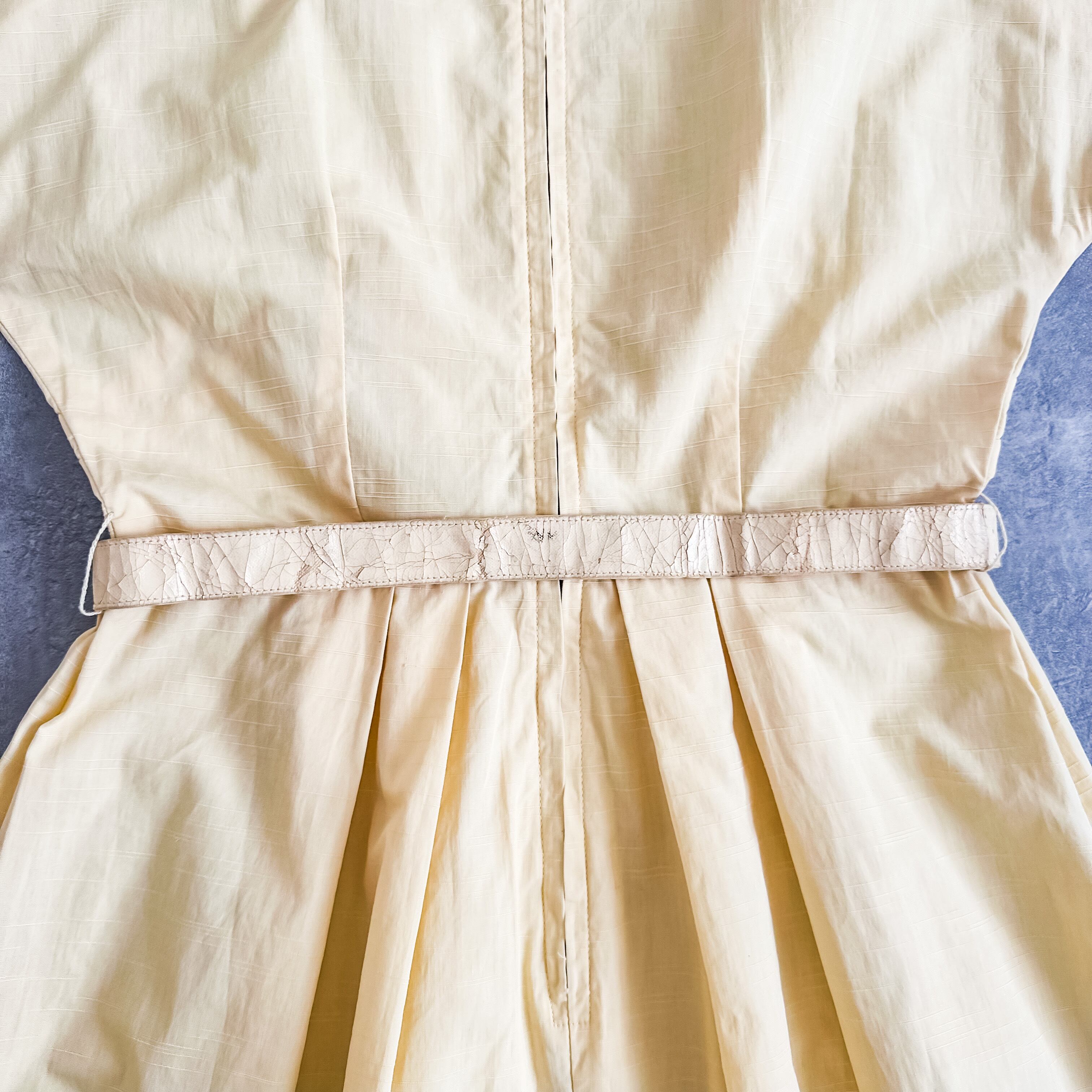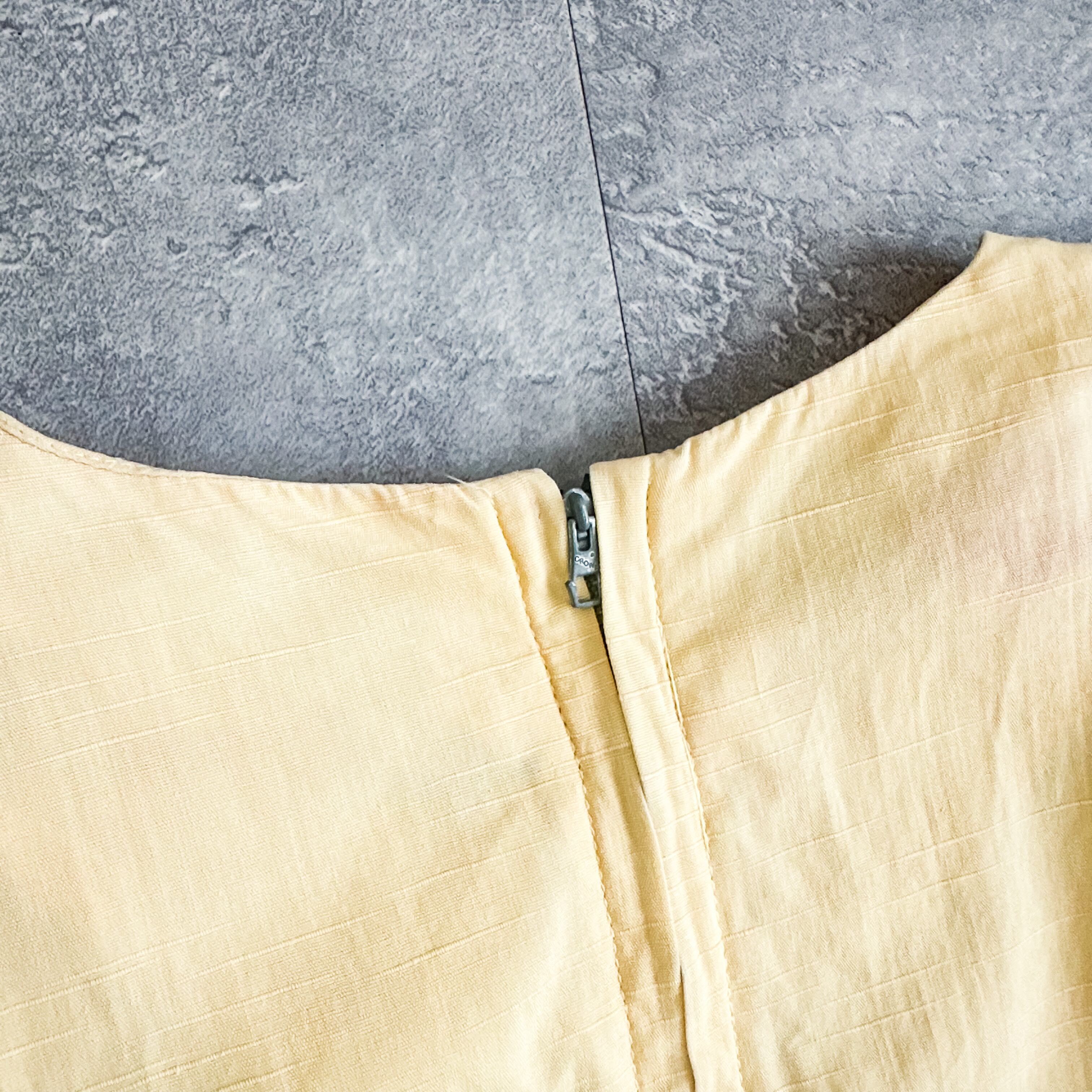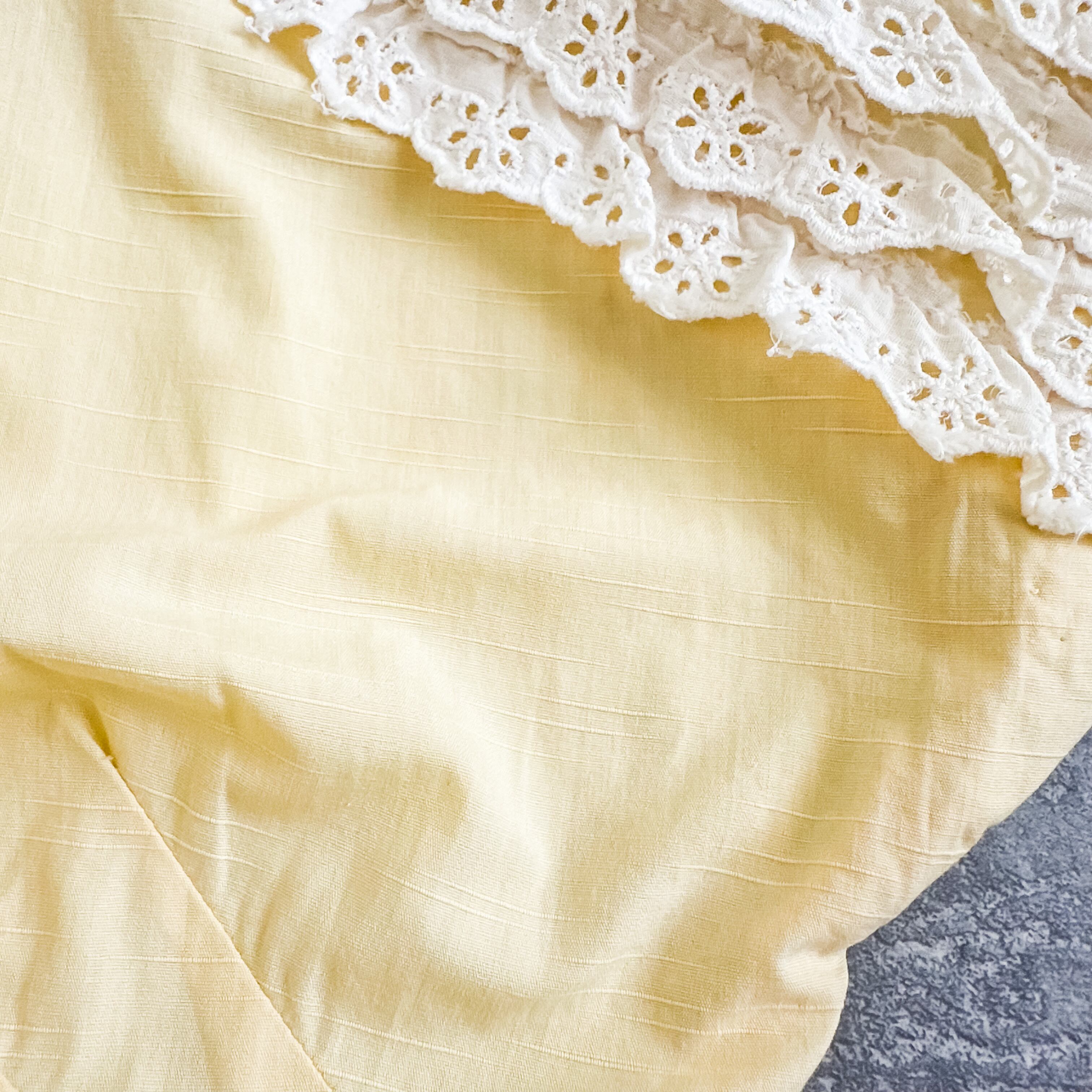 夏らしいイエローカラーに、肩から袖にかけてカットワークやレースが美しい逸品です。