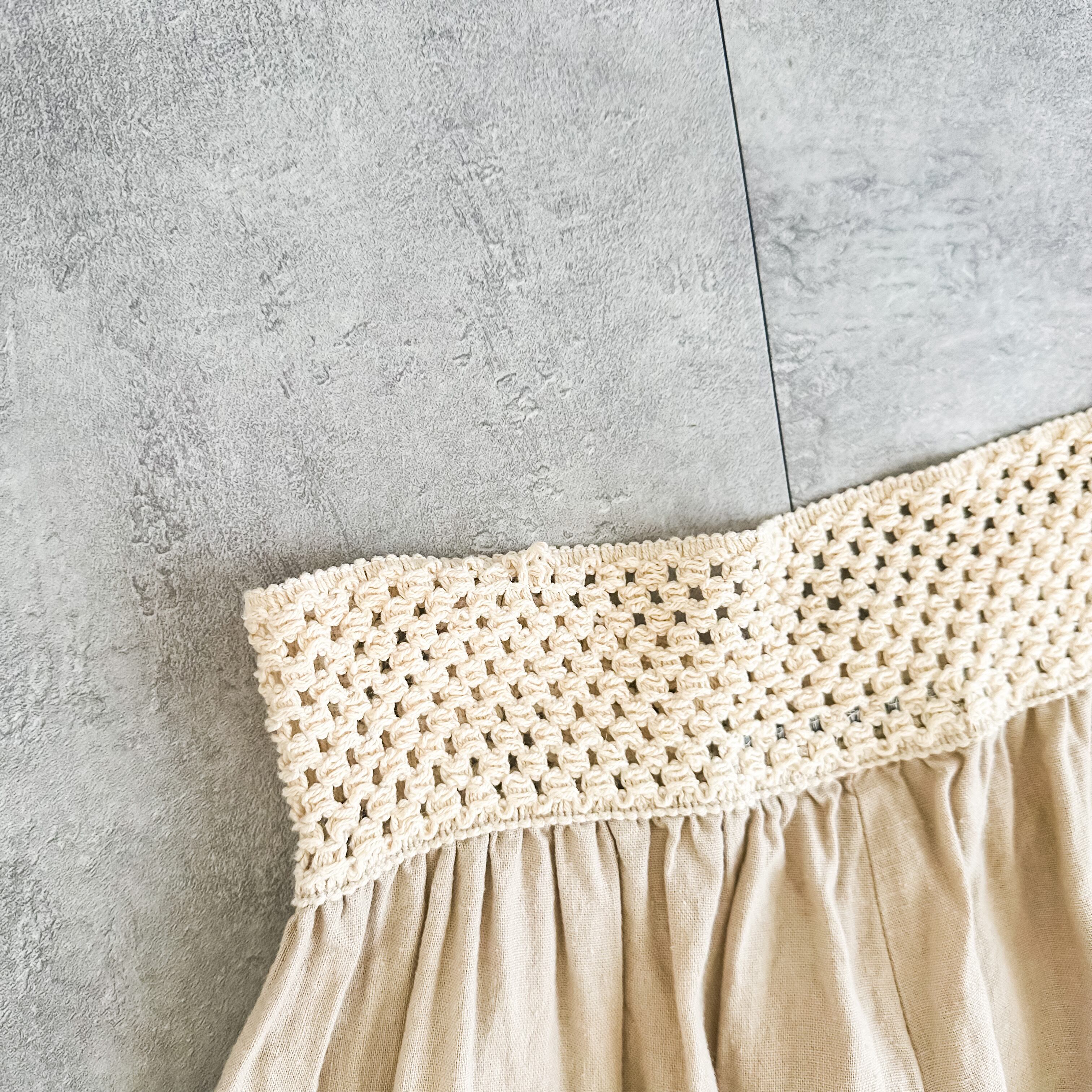 生成り系のカラーリングに、ウエストがクロシェに切り替わった可愛らしいデザイン。