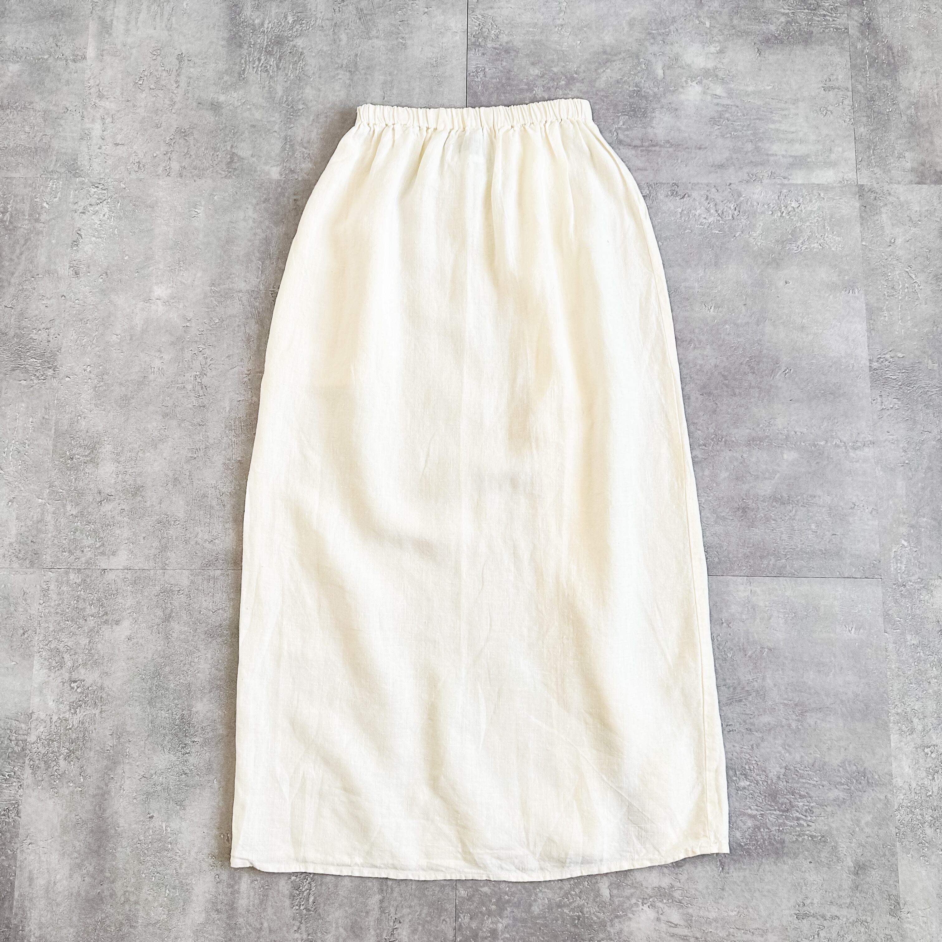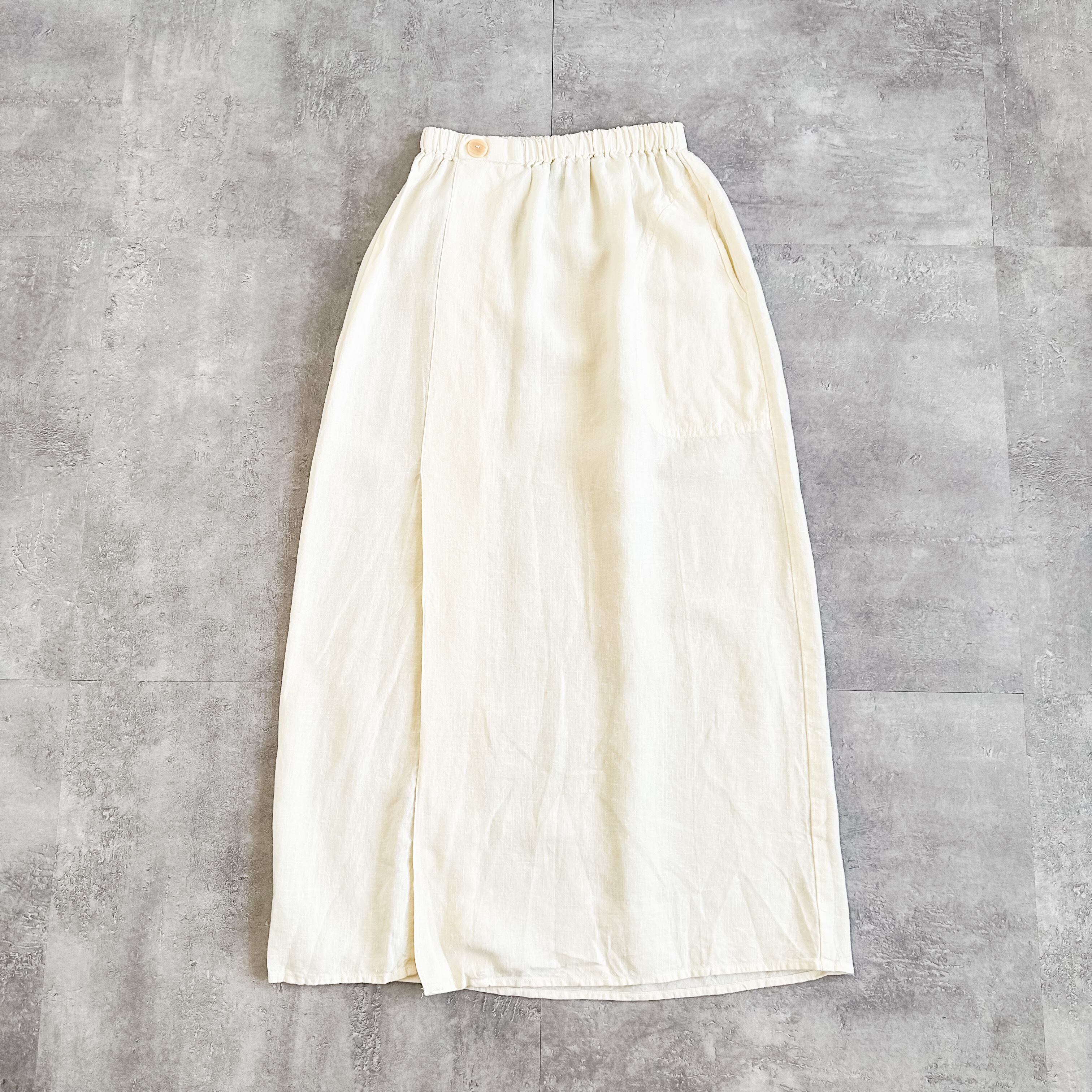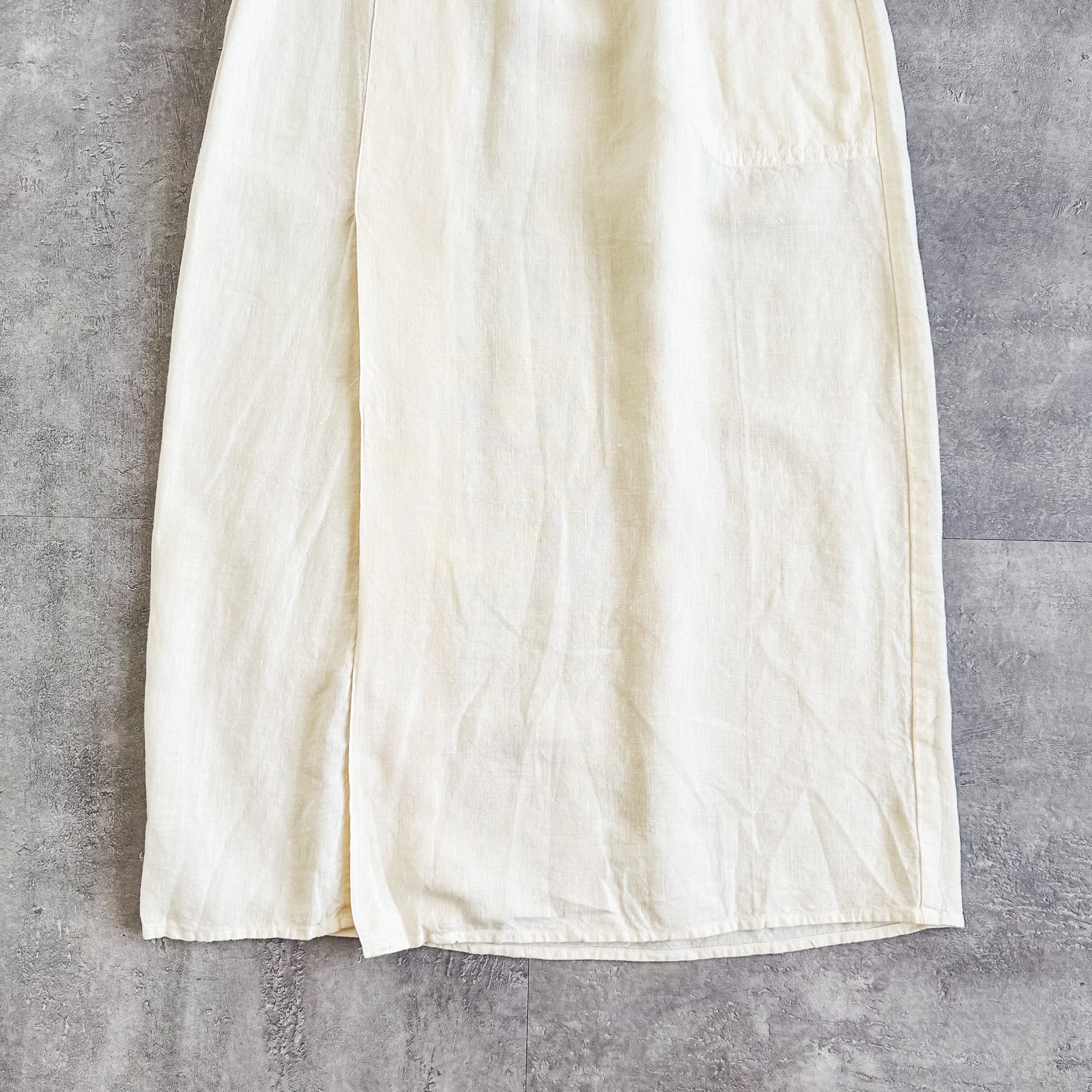 1990's "FLAX" white baker pocket linen long skirt made in Lithuania