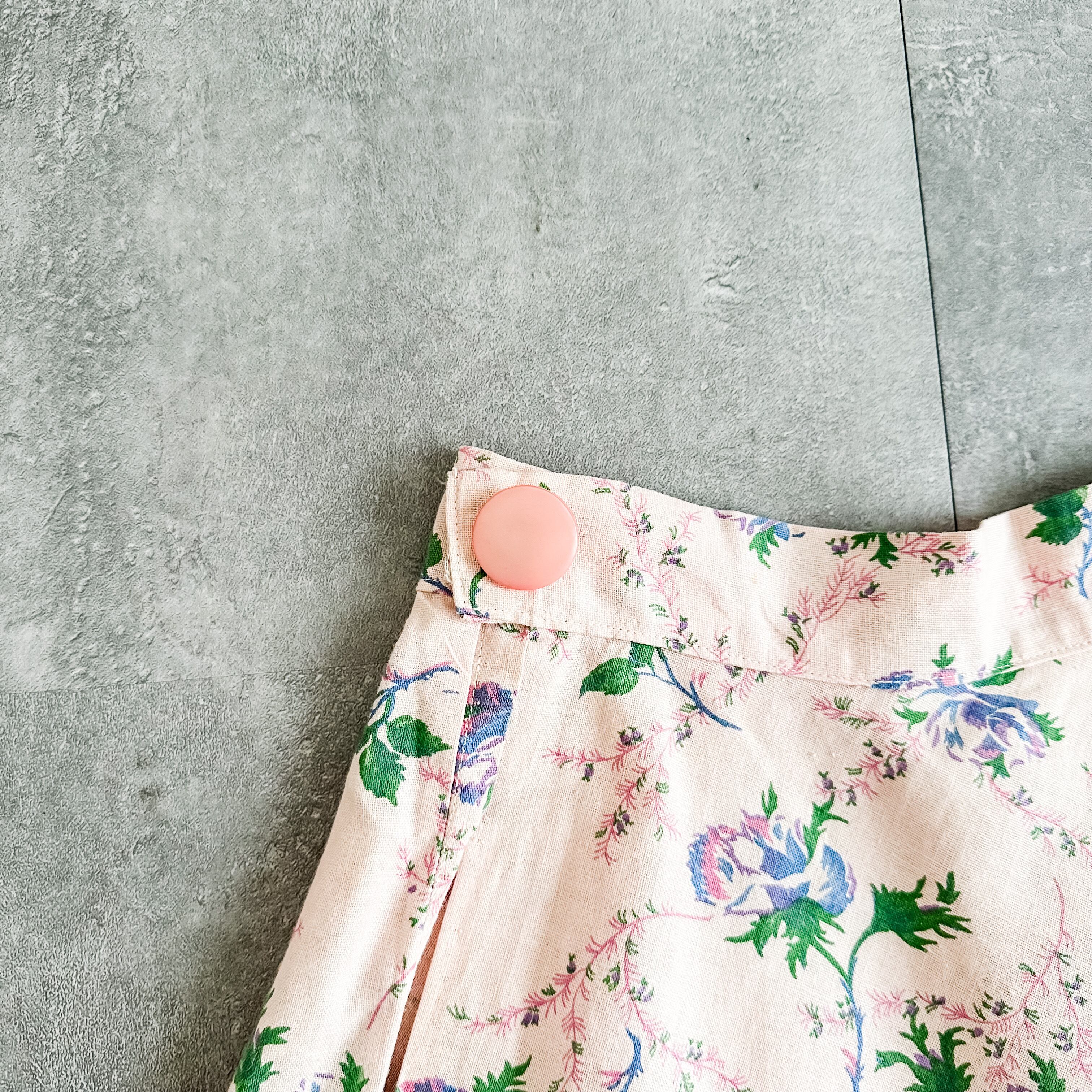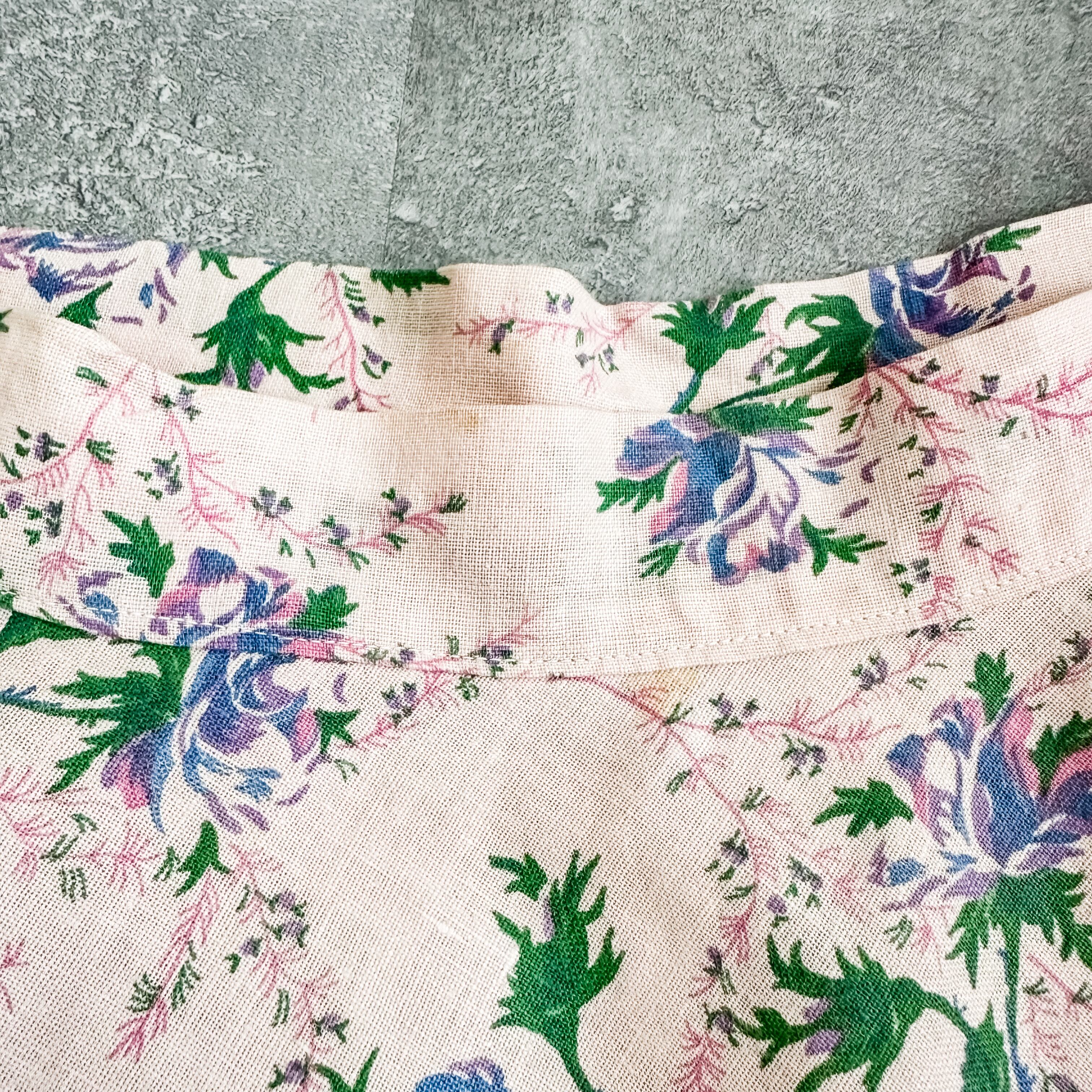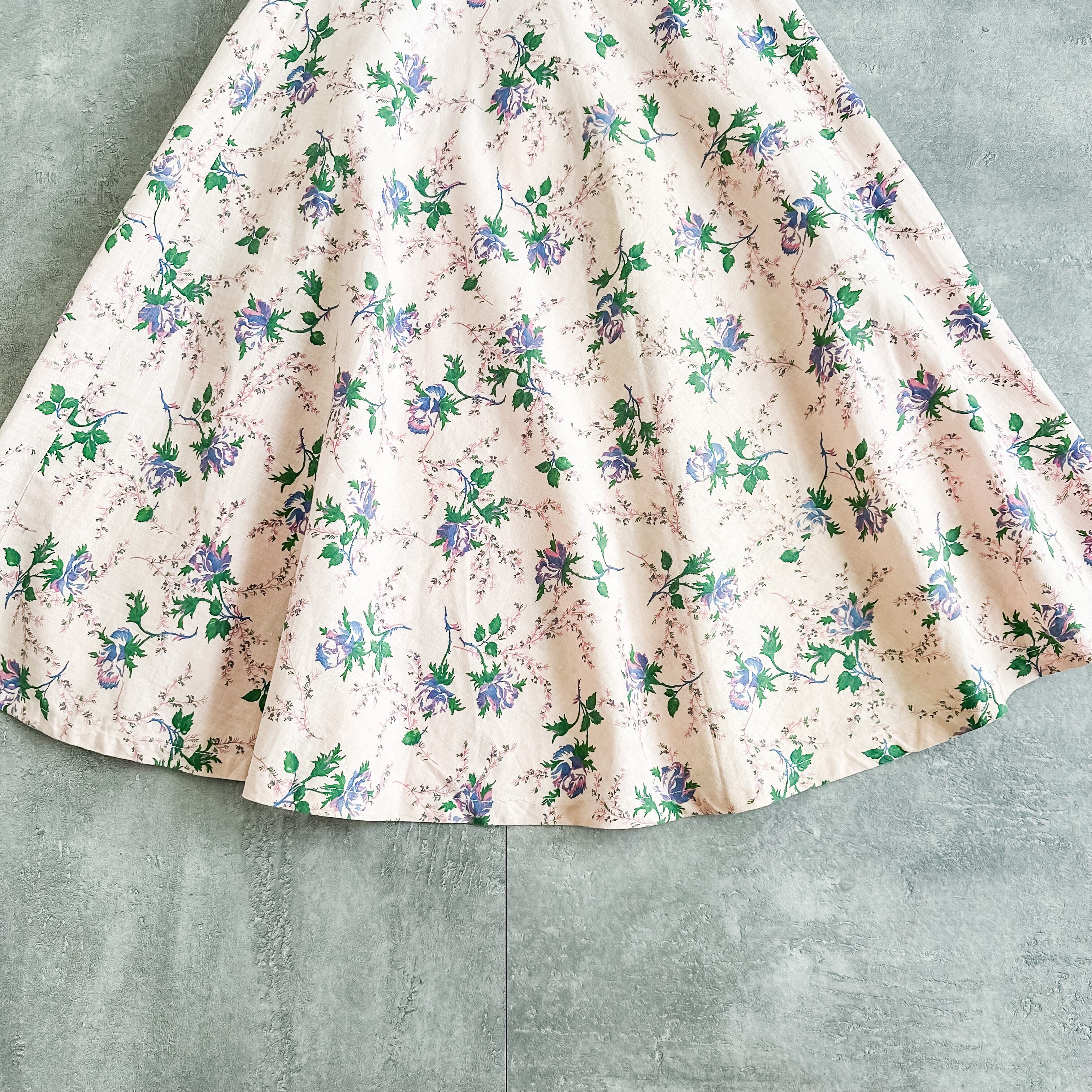 淡いピンクベースに全体にはテキスタイルの素晴らしいお花柄がプリントされた逸品。