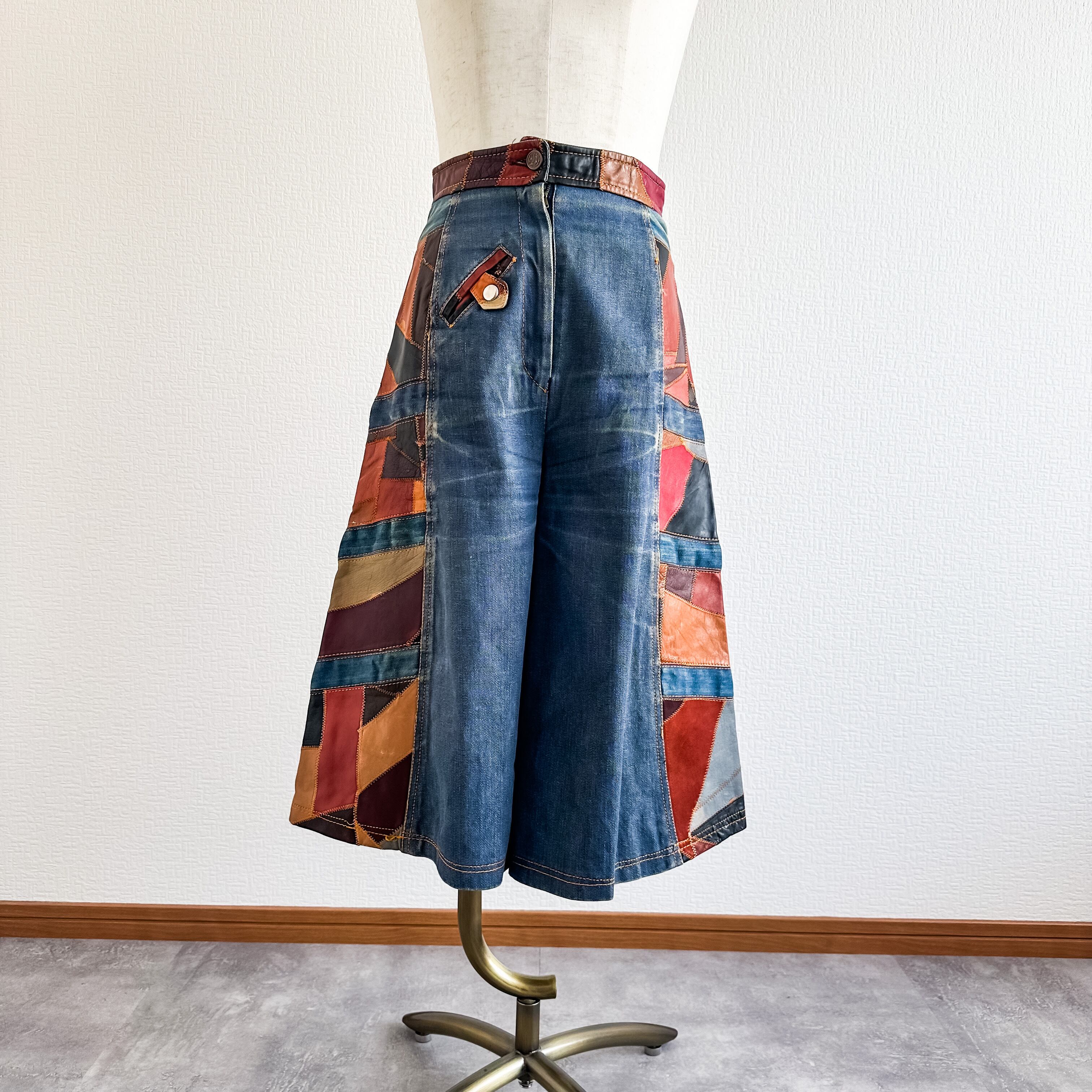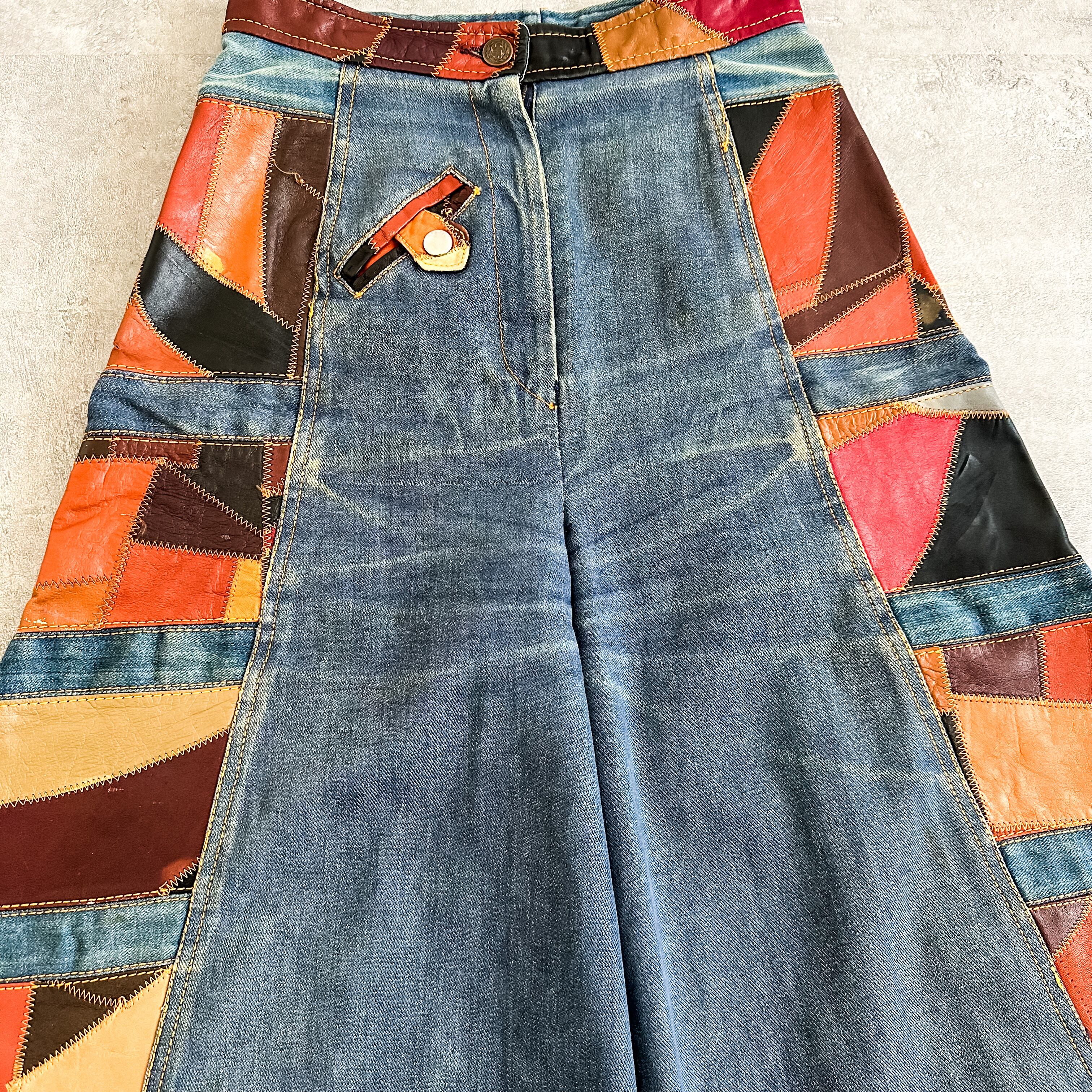 Vintage 1970's leather patchwork denim pants