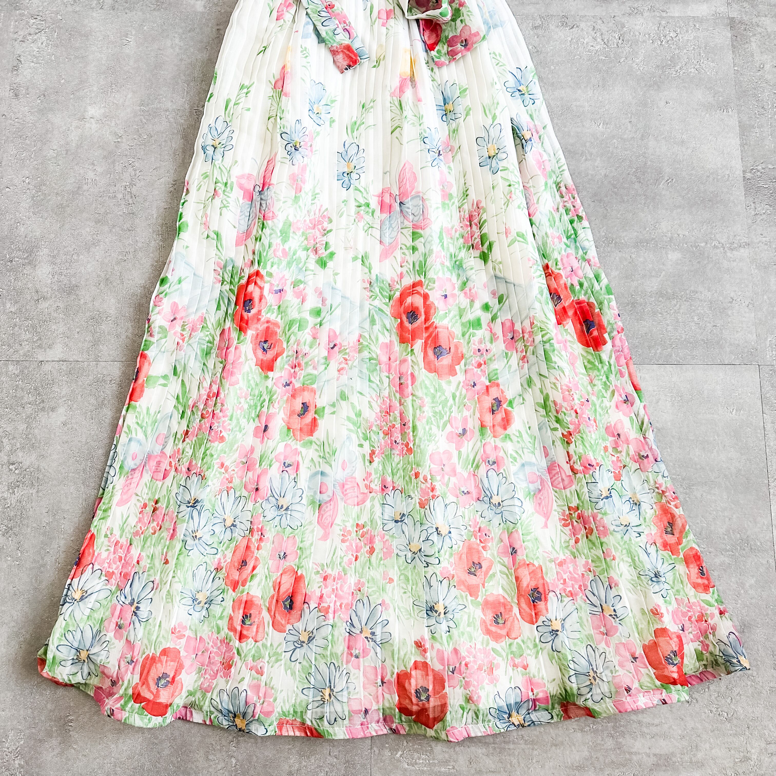 幻想的なお花のテキスタイルやプリーツの入ったスカートが素敵な逸品です。