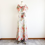 Vintage 1970's "I.magnin" floral pattern pleats skirt maxi dress