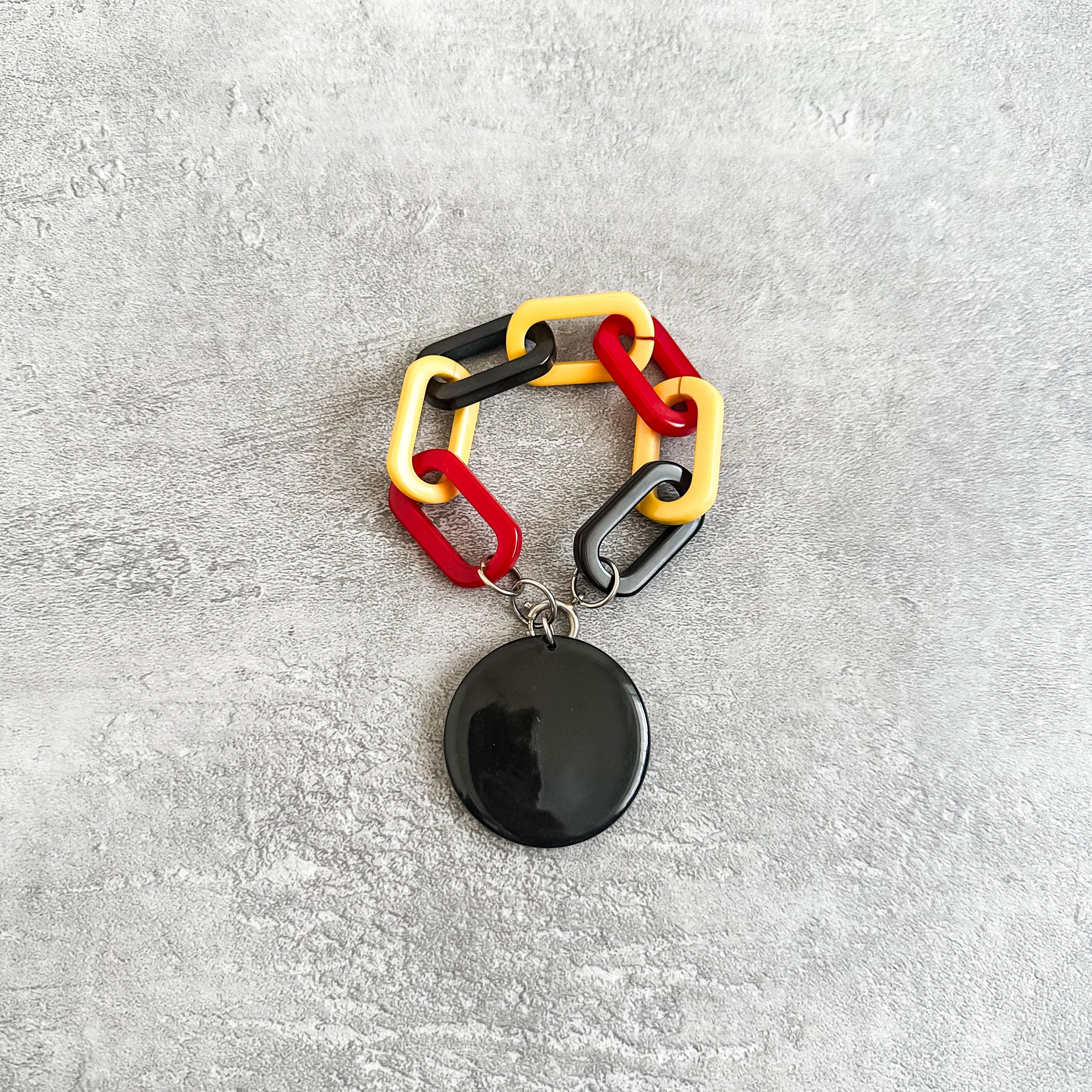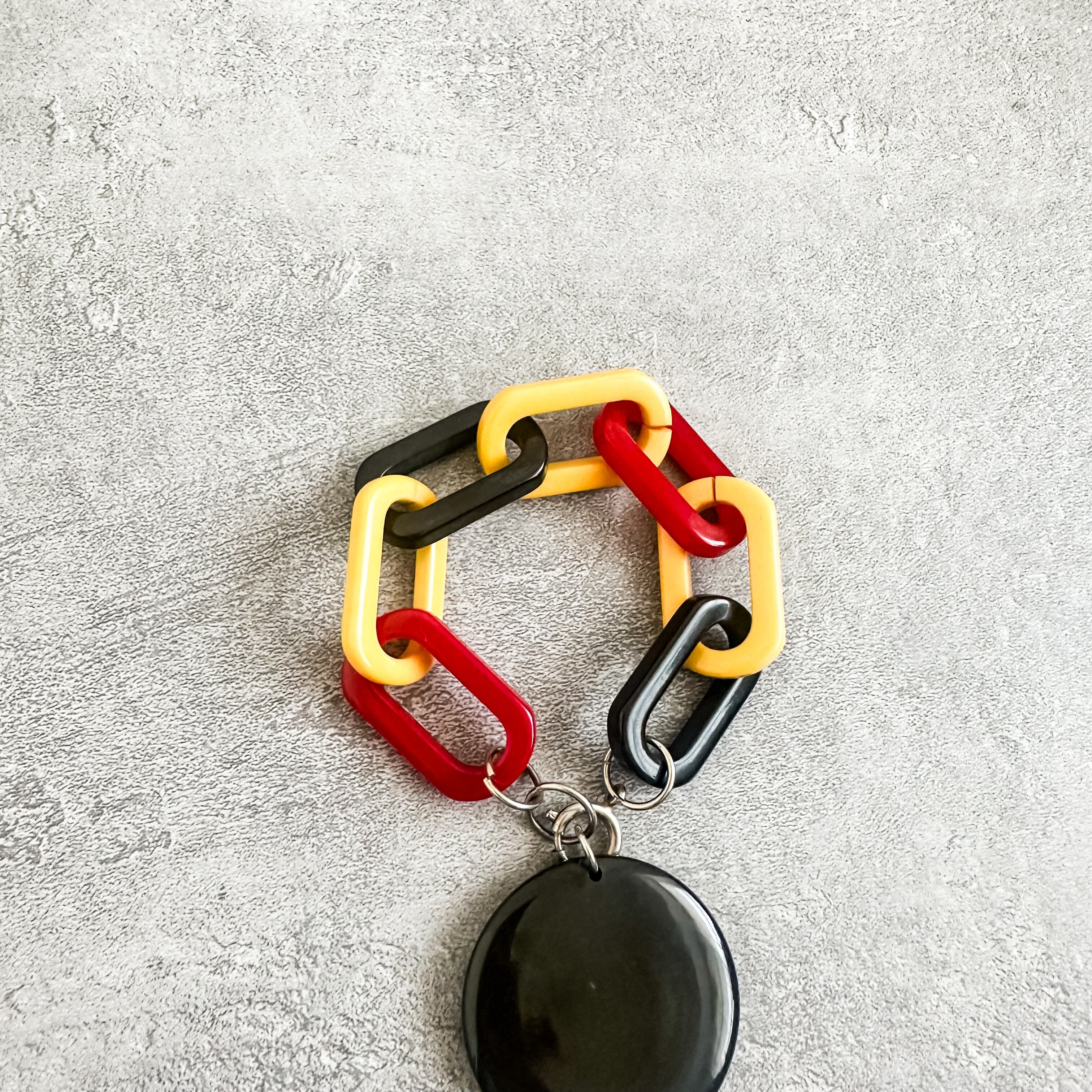 ベークライトの中でもかなり珍しいスリートーンカラーのベークライトのチェーンとブラックのベークライトチャームが付いたスペシャルな個体になります。