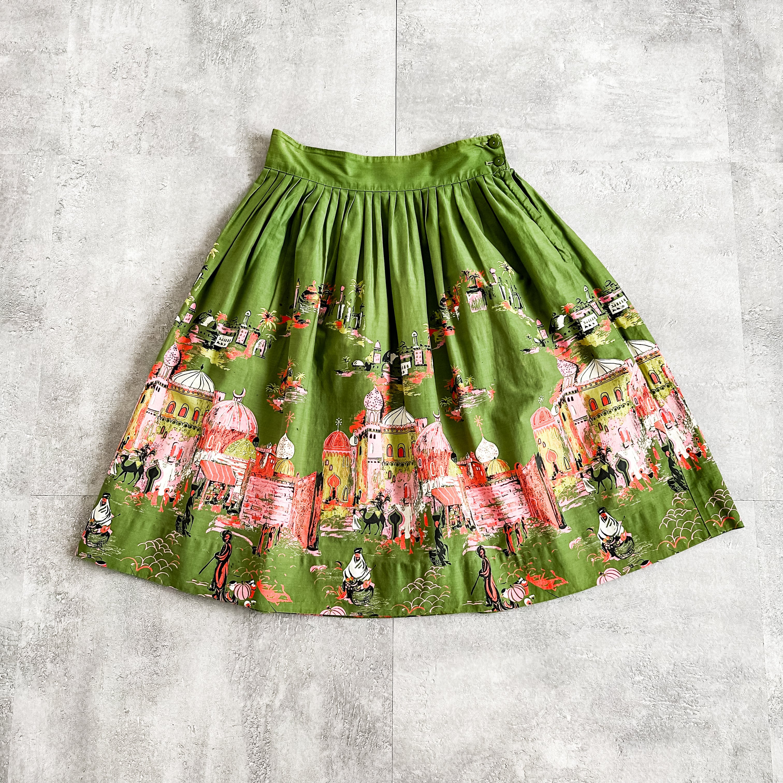 Vintage 1950's green novelty print cotton skirt