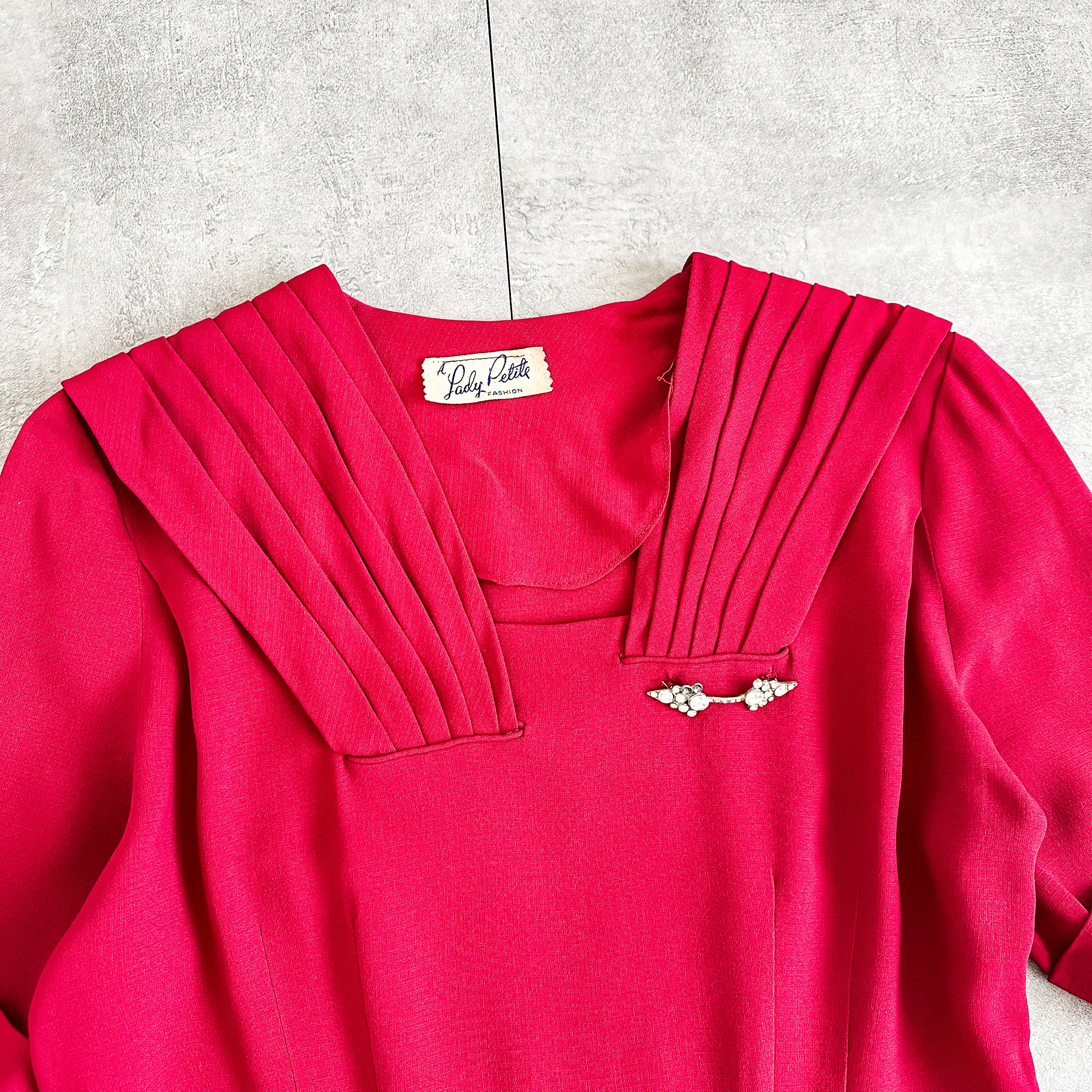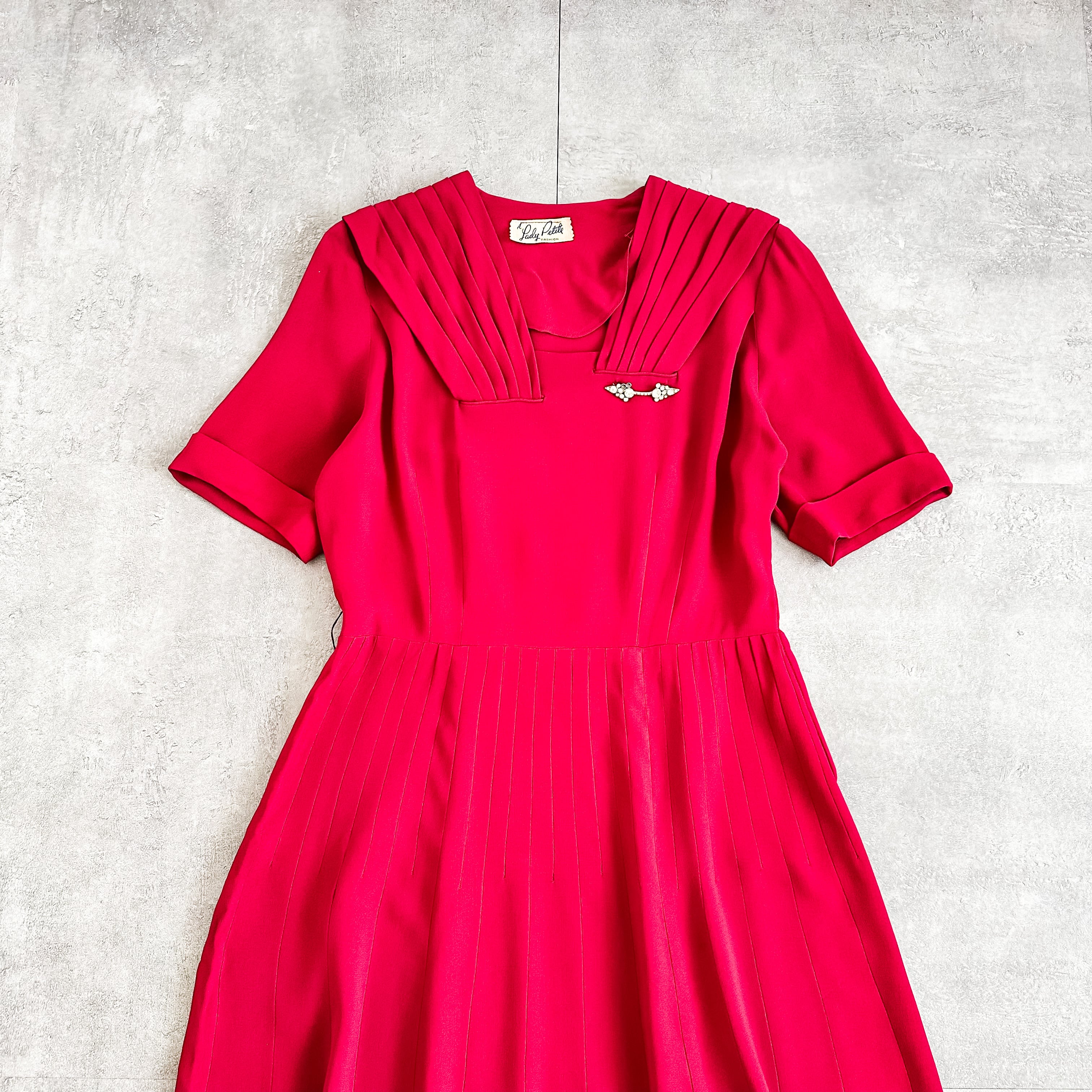 Vintage 1950's pleats design dress with rhinestone