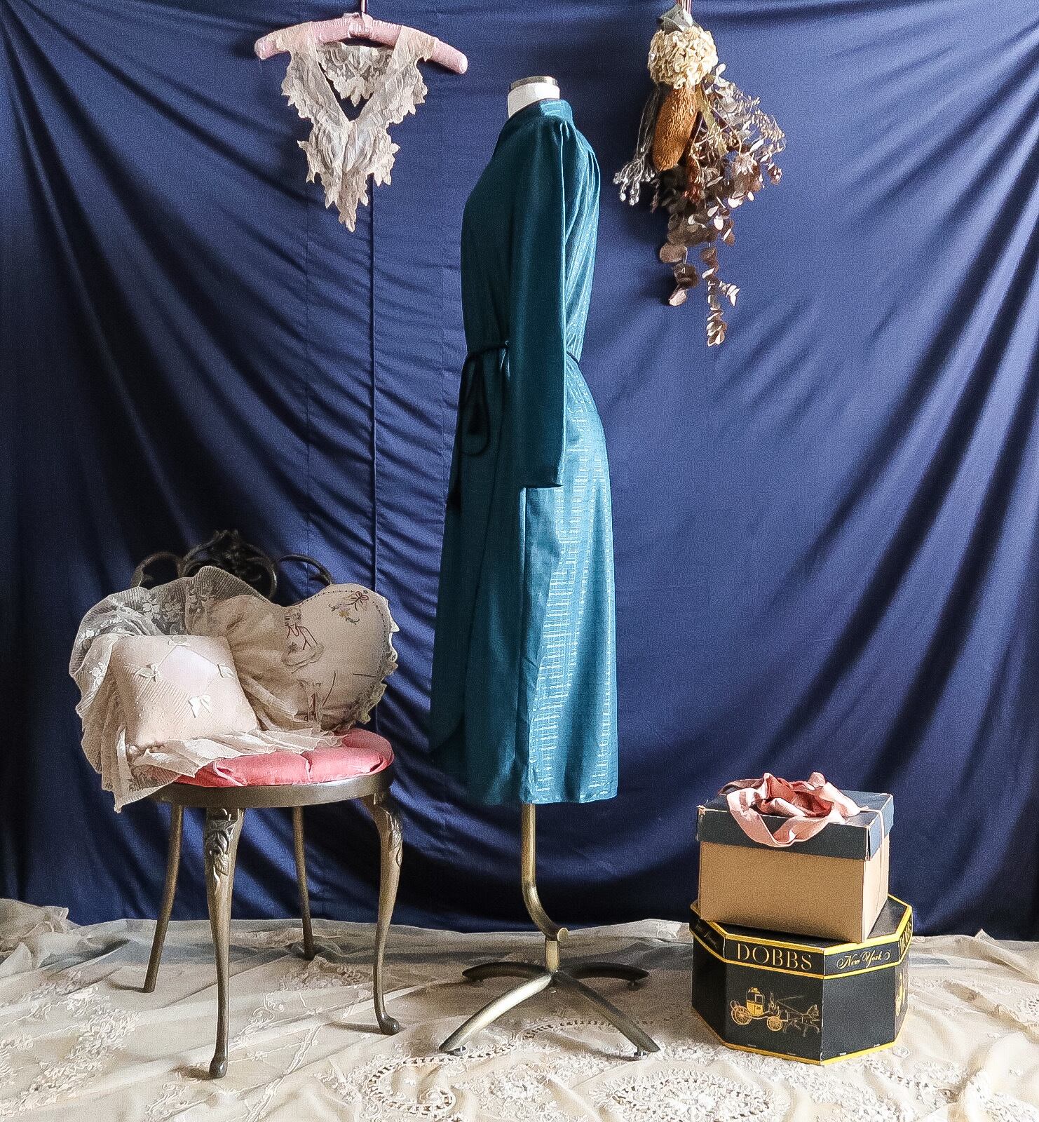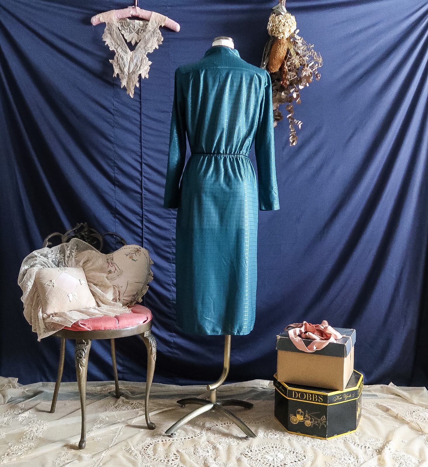 特徴 :少しシアーな素材に綺麗なグリーンカラーの1980's頃のワンピース。