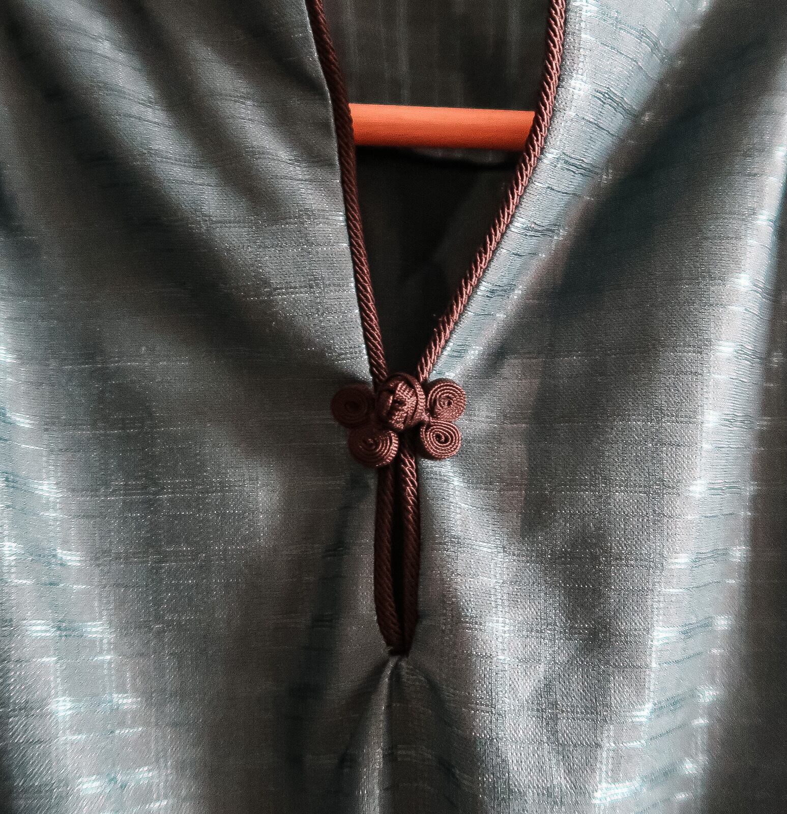 首周りのパイピングデザインに、チャイナボタンのデザインがキュートですね。