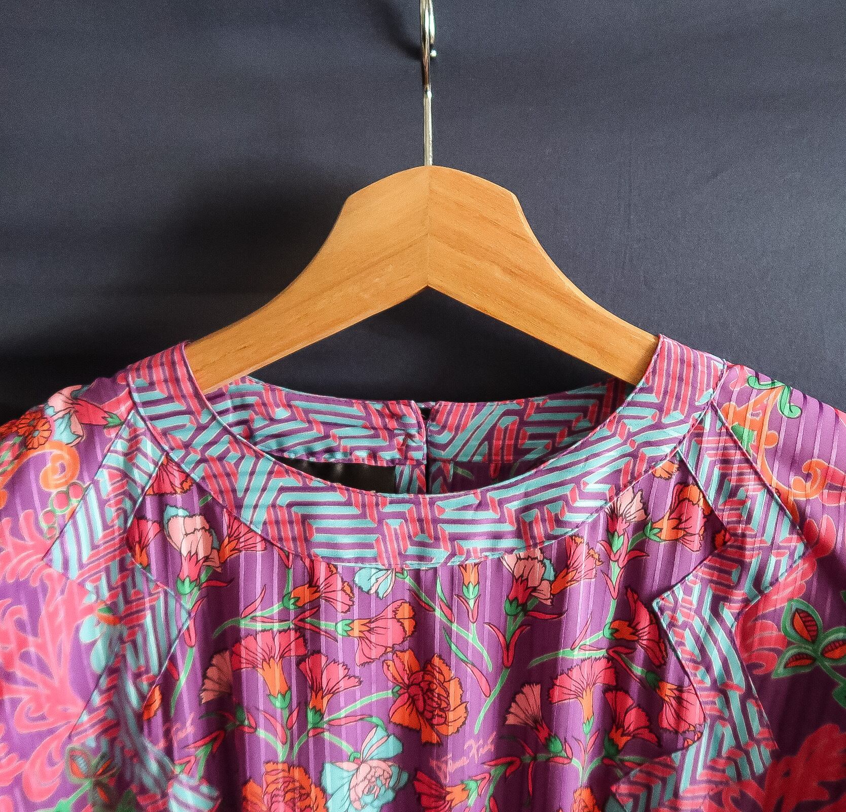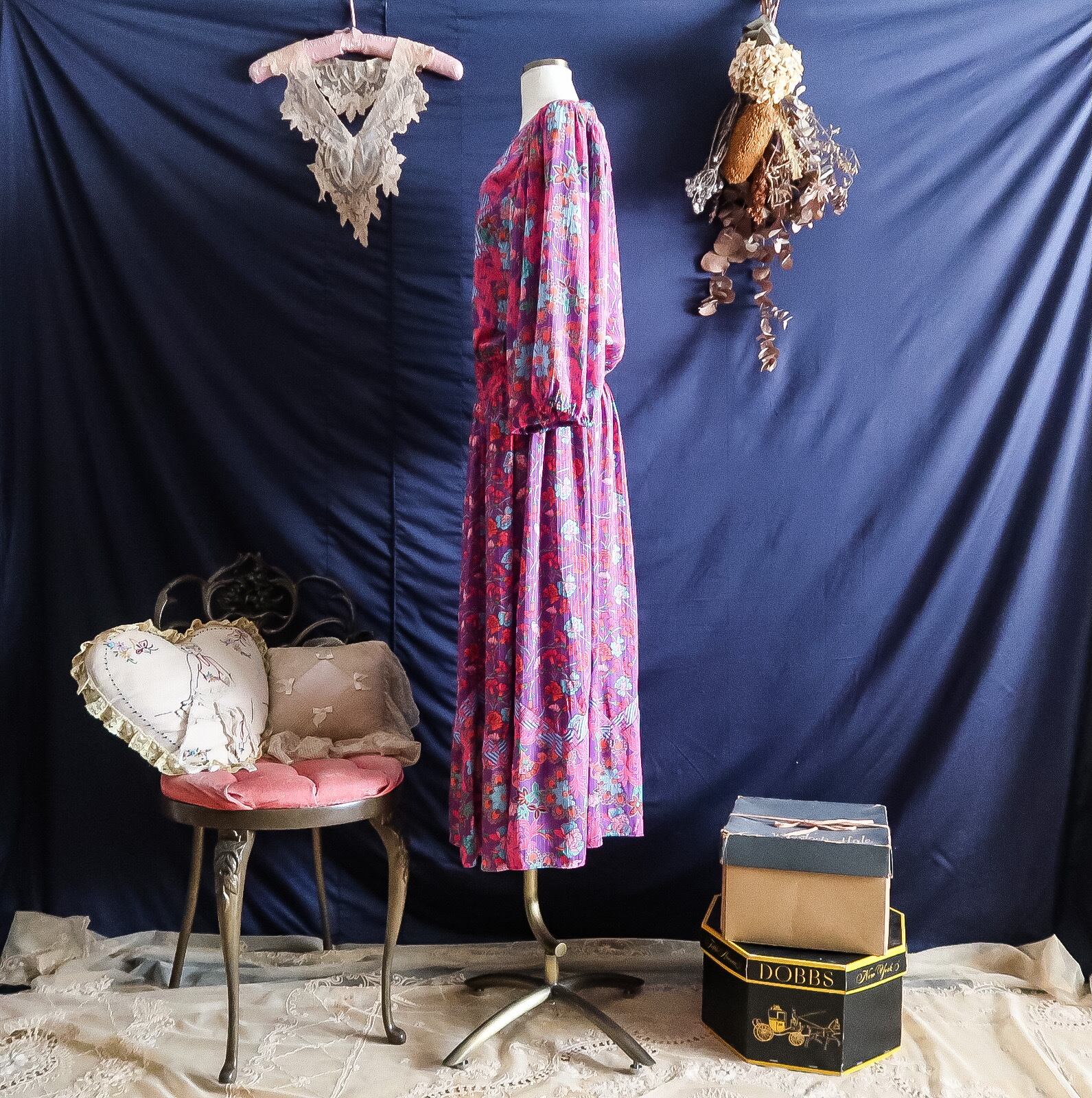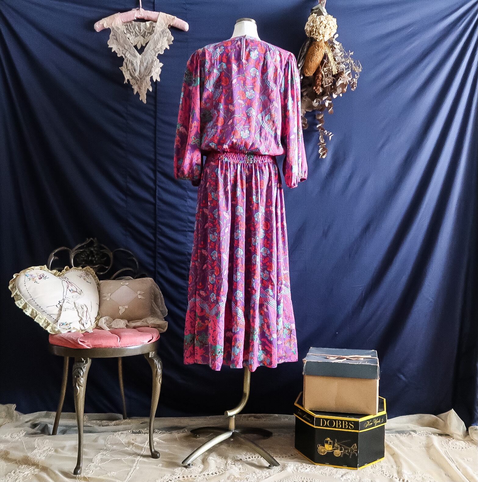 Vintage 1980's Diane Freis no collar patterned allover dress