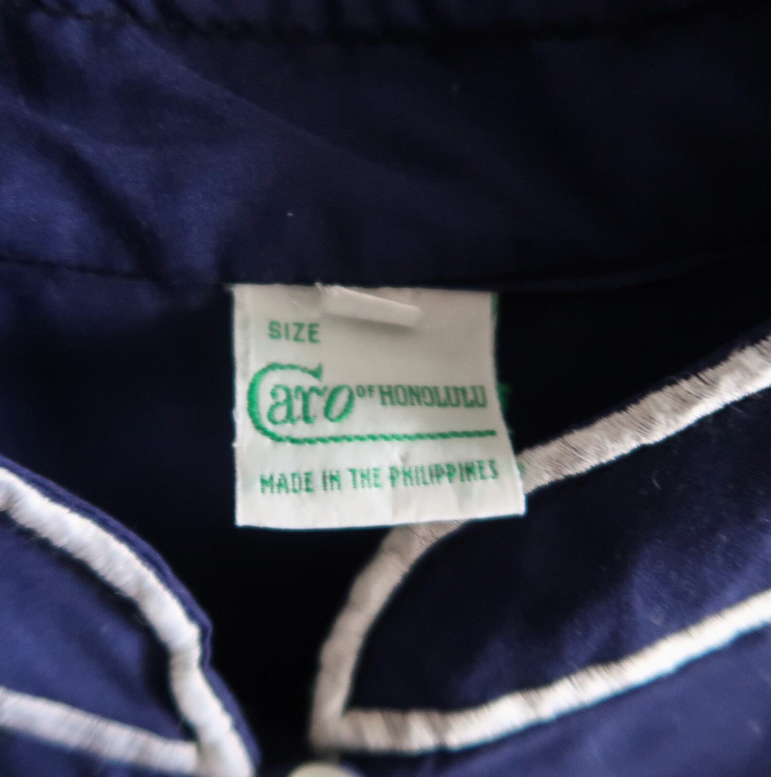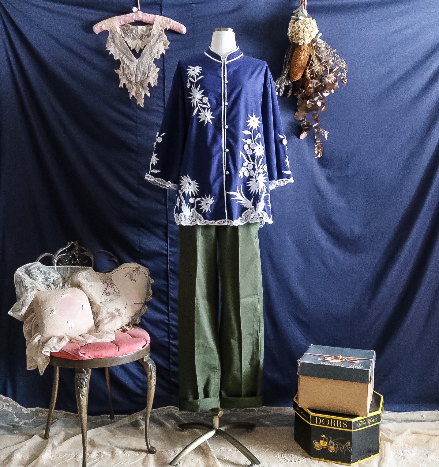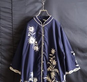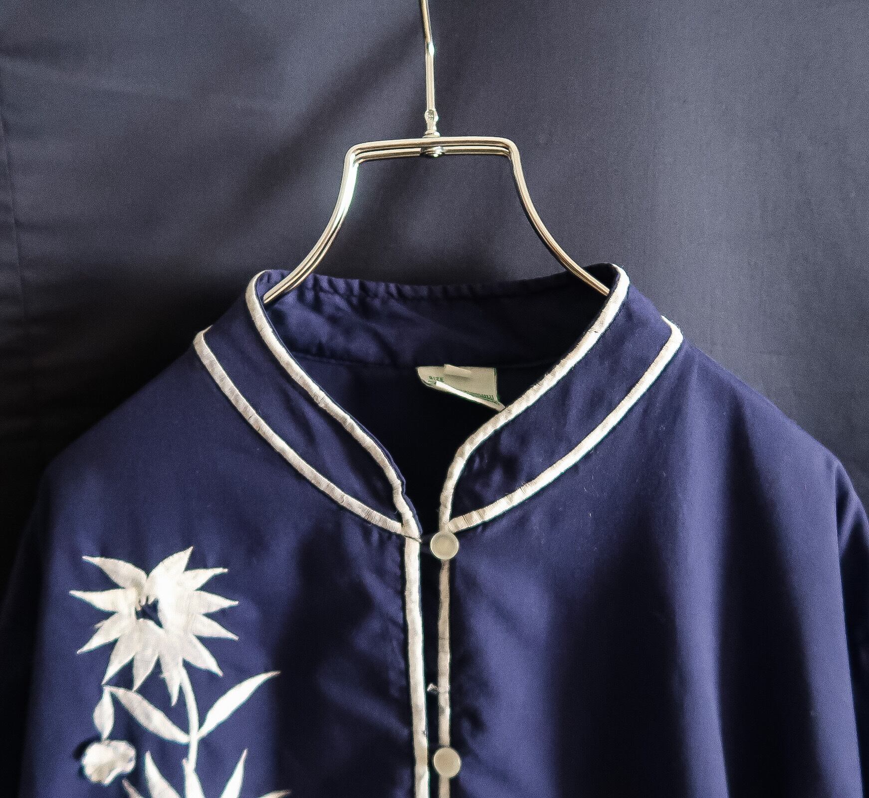 特徴 :ネイビーカラーにホワイトの刺繍が素敵な1970's~頃のスタンドカラーのフィリピン刺繍シャツ。