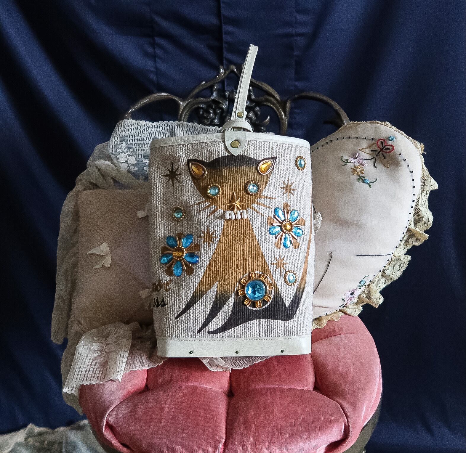 Rare! 1960's Enid Collins "glomour puss" one handle canvas bag