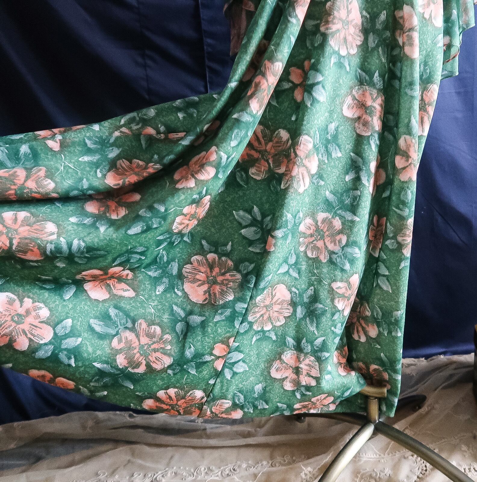 特徴 :グリーン系のカラーに、花柄のテキスタイルが素敵な~1970's頃のヴィンテージマキシ丈ワンピース。