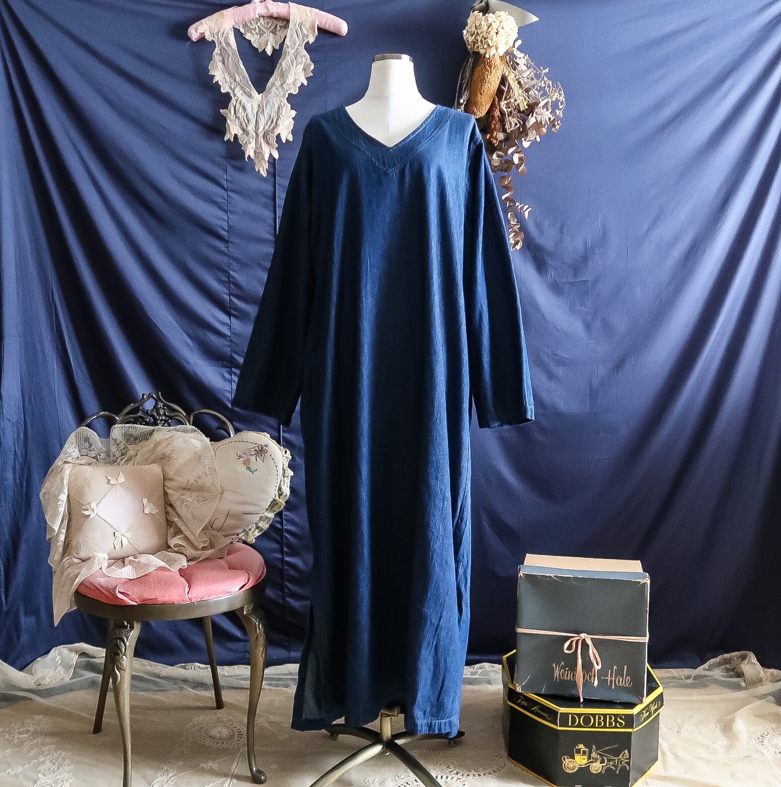 こちらも恐らくユーロのアンティークスモックからインスパイアして作られたデニムのスモックワンピース