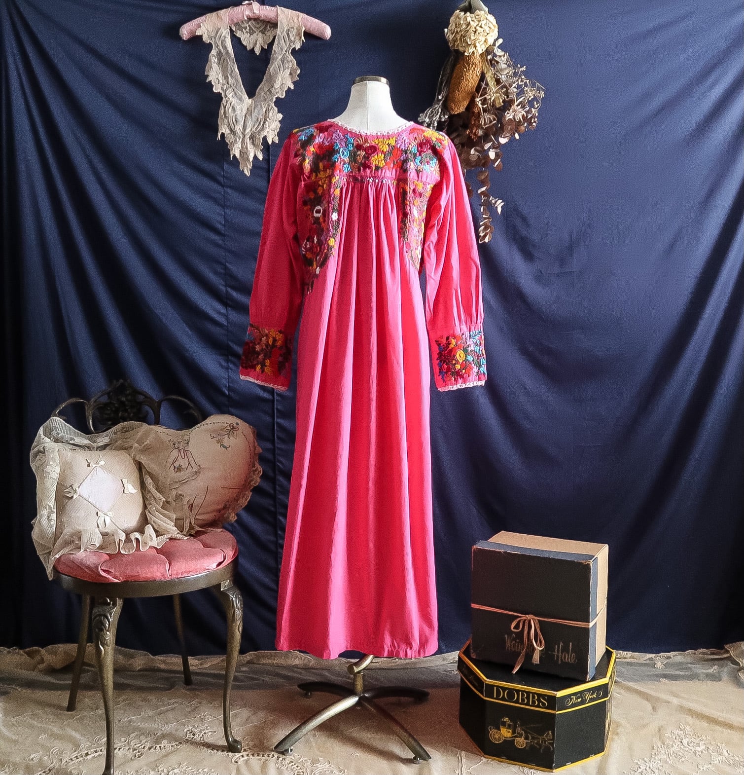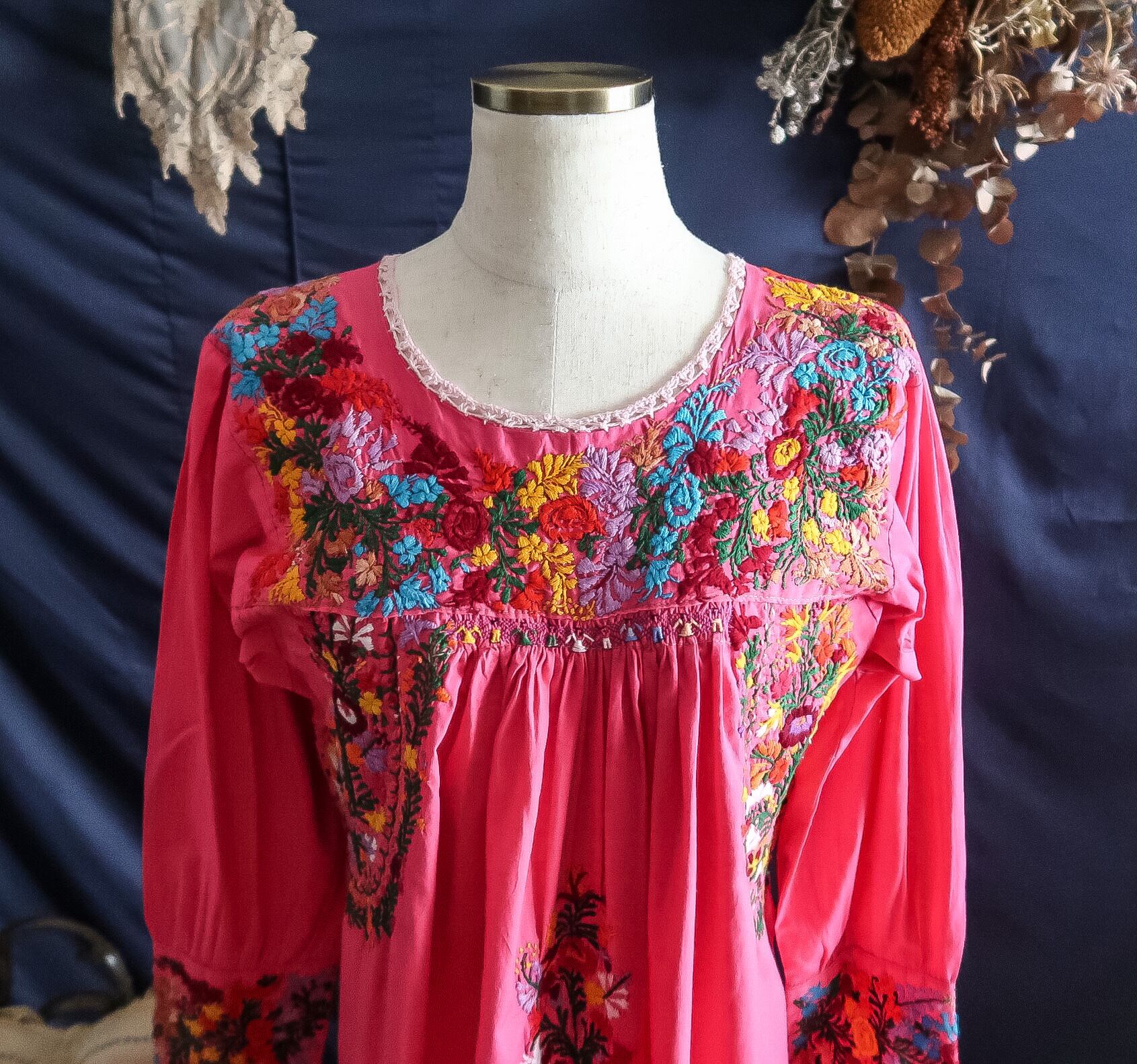 特徴 :メキシコ、オアハカ州のサン・アントニーノという知る人ぞ知る刺繍村の伝統的なサンアントニーノ刺繍のヴィンテージワンピース。
