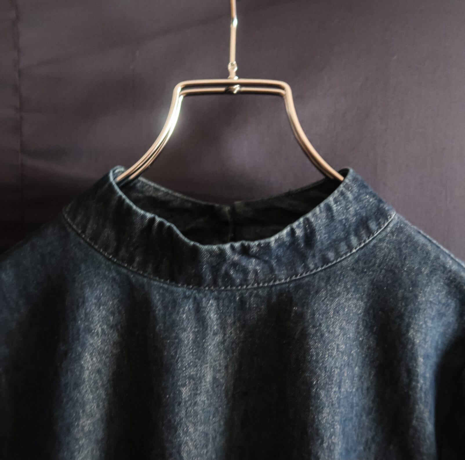 デニムのトップスはどうしてもカジュアルな物が多いですが、こちらはブラウスに近く少しレディーな雰囲気が素敵な一着ですね。