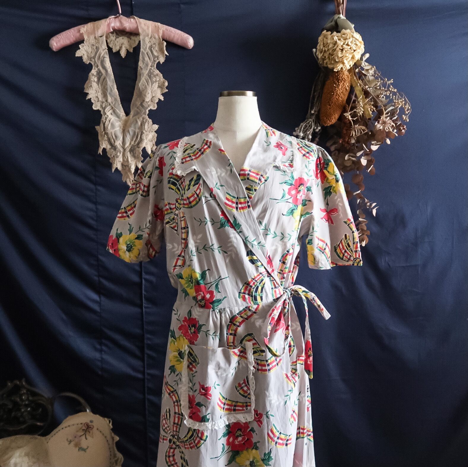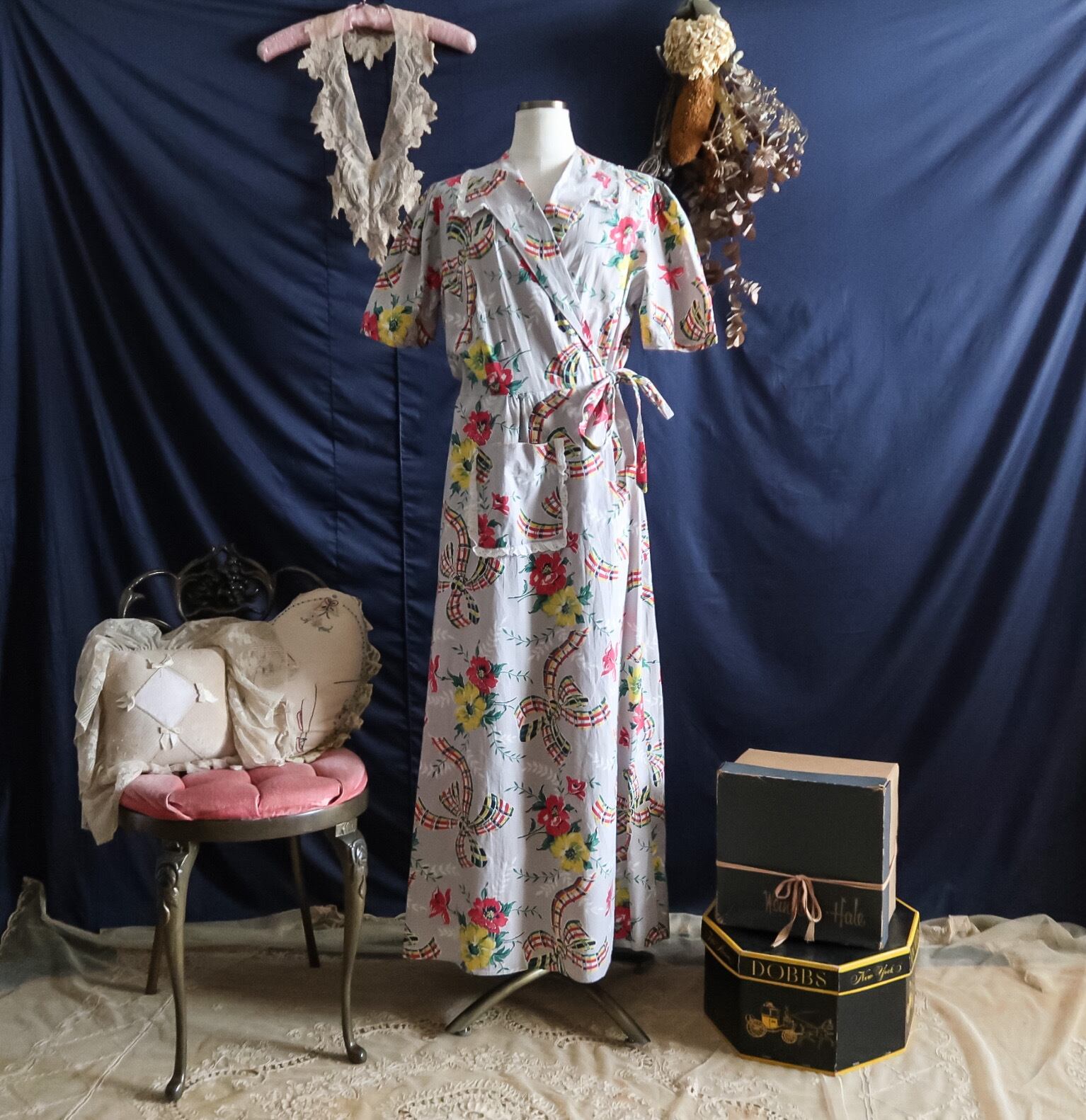 Vintage 1940's ribbon floral printed cotton wrap dress