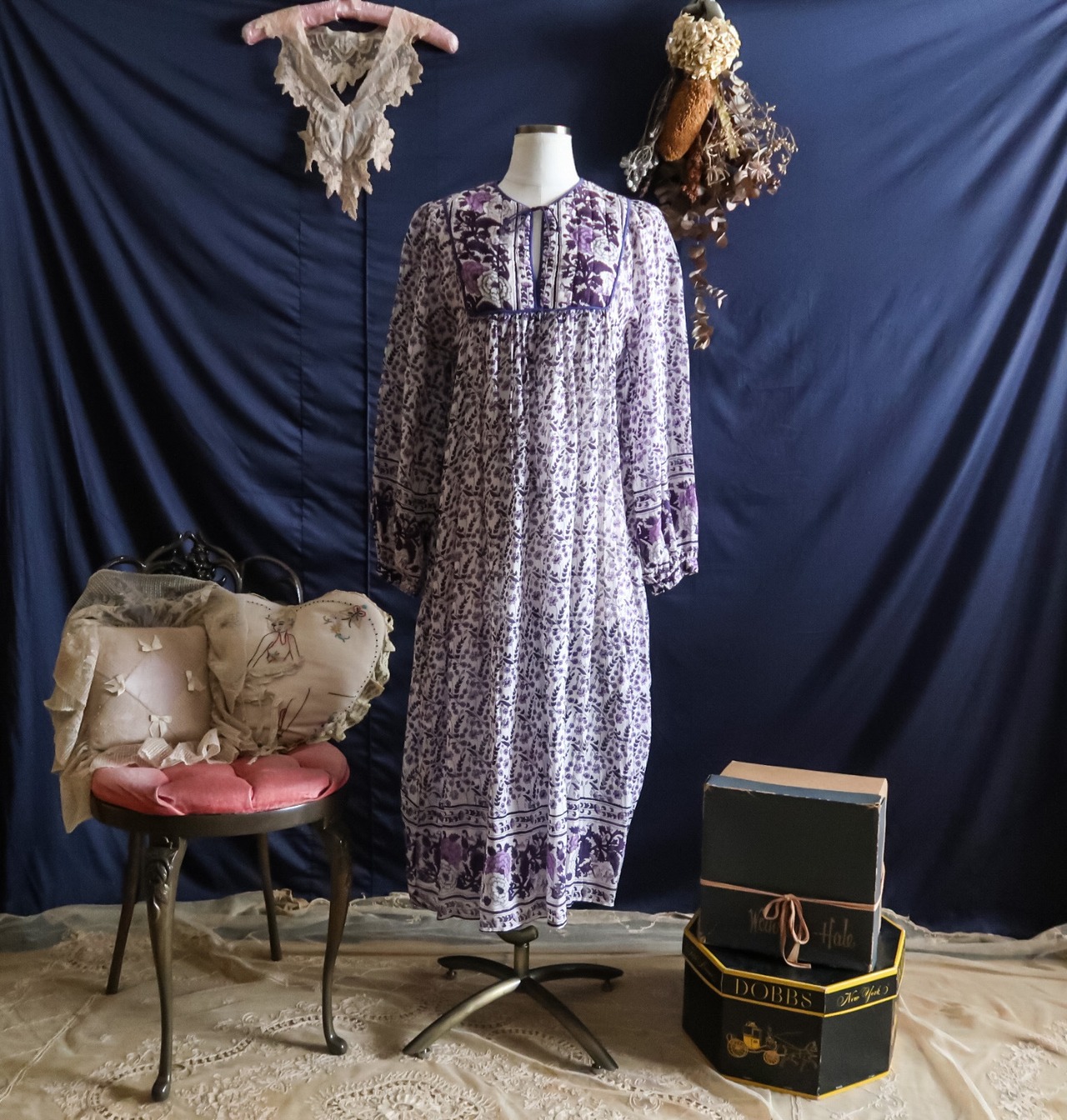 Vintage 1970's~ purple flower pattern indian cotton dress