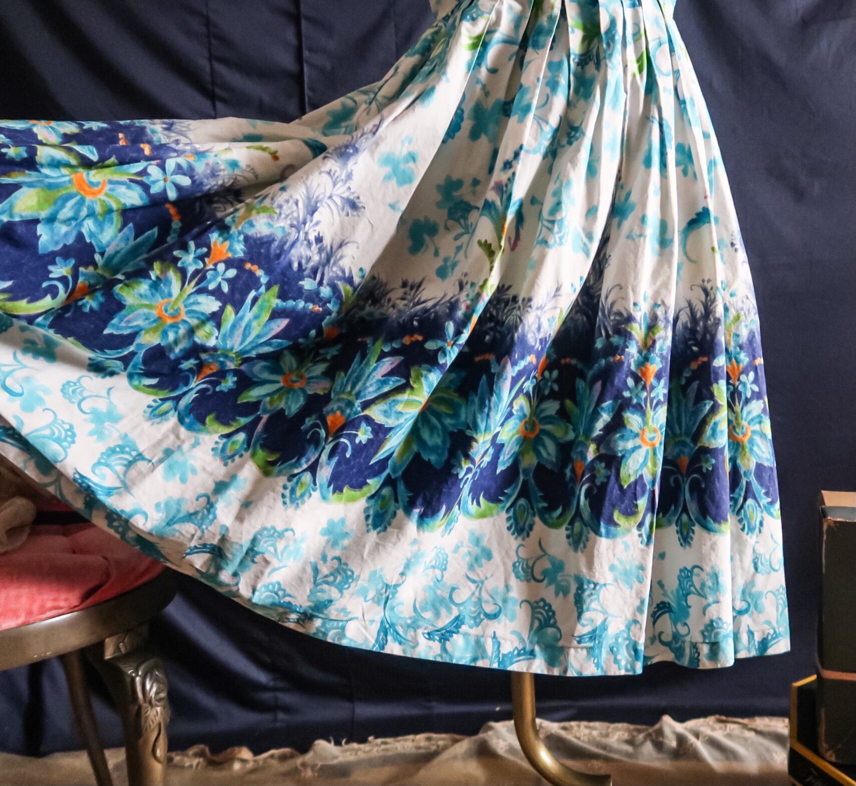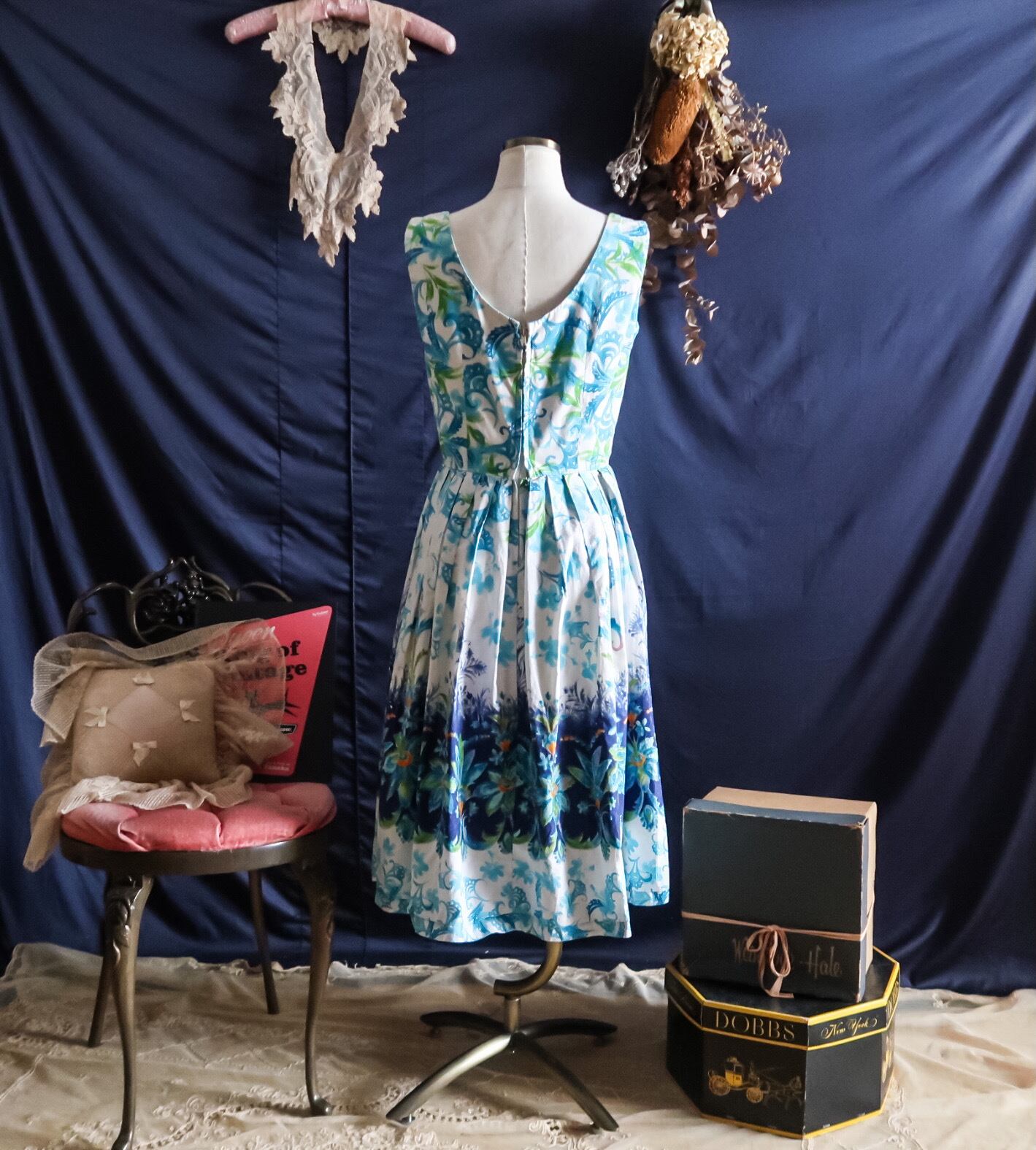 Vintage 1950's floral pattern novelty print sleeveless dress