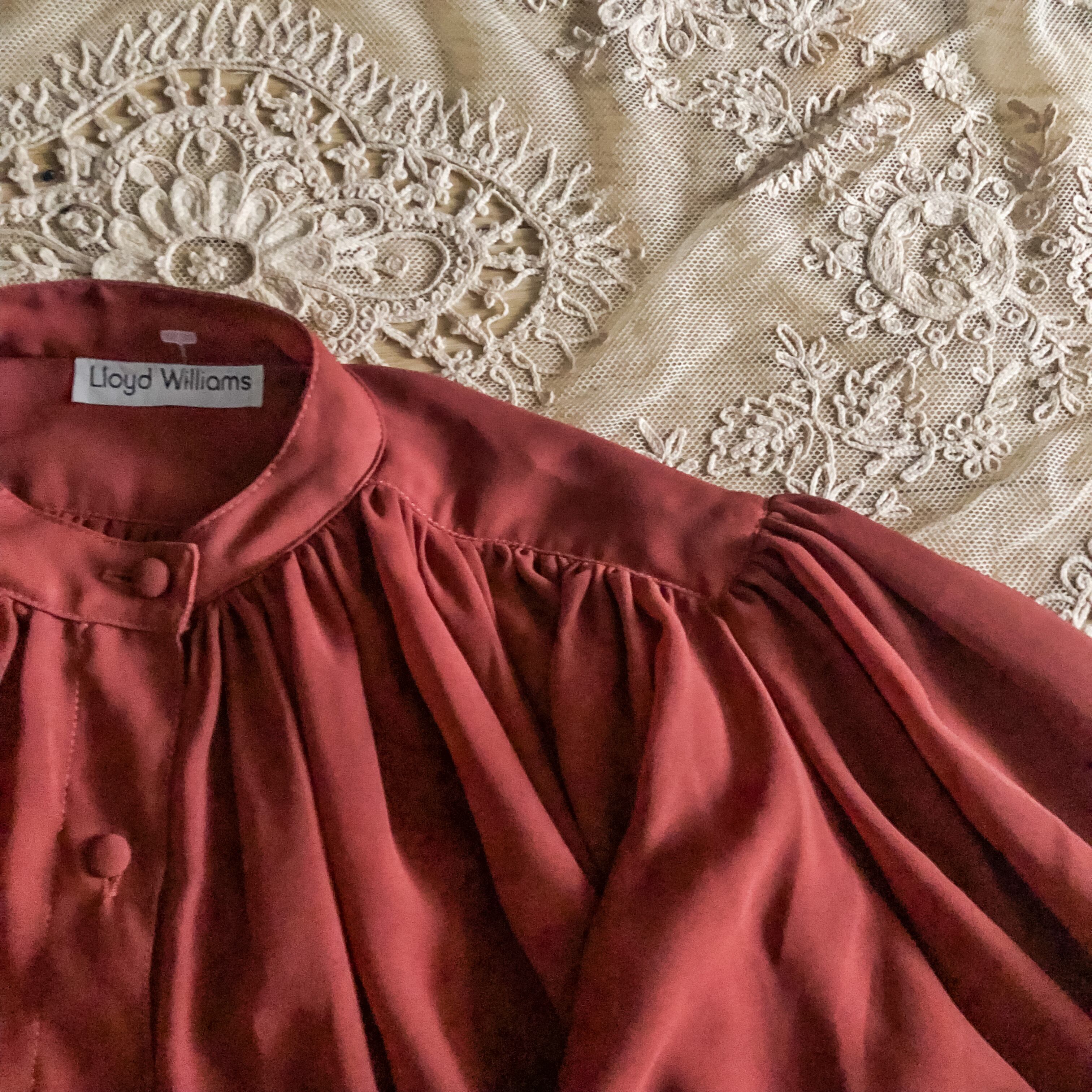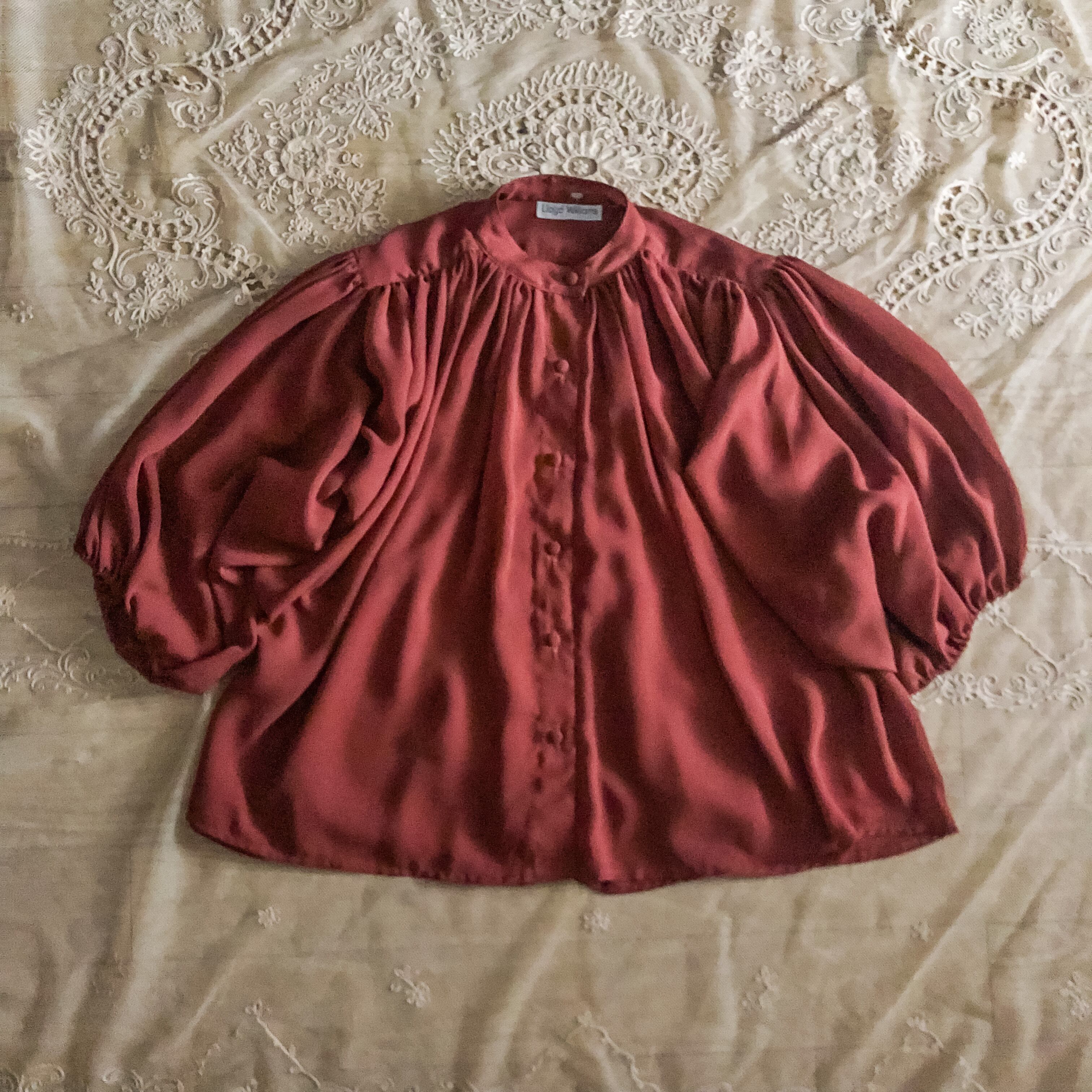 1980's~ "Lloyd Williams" balloon sleeve band collar blouse