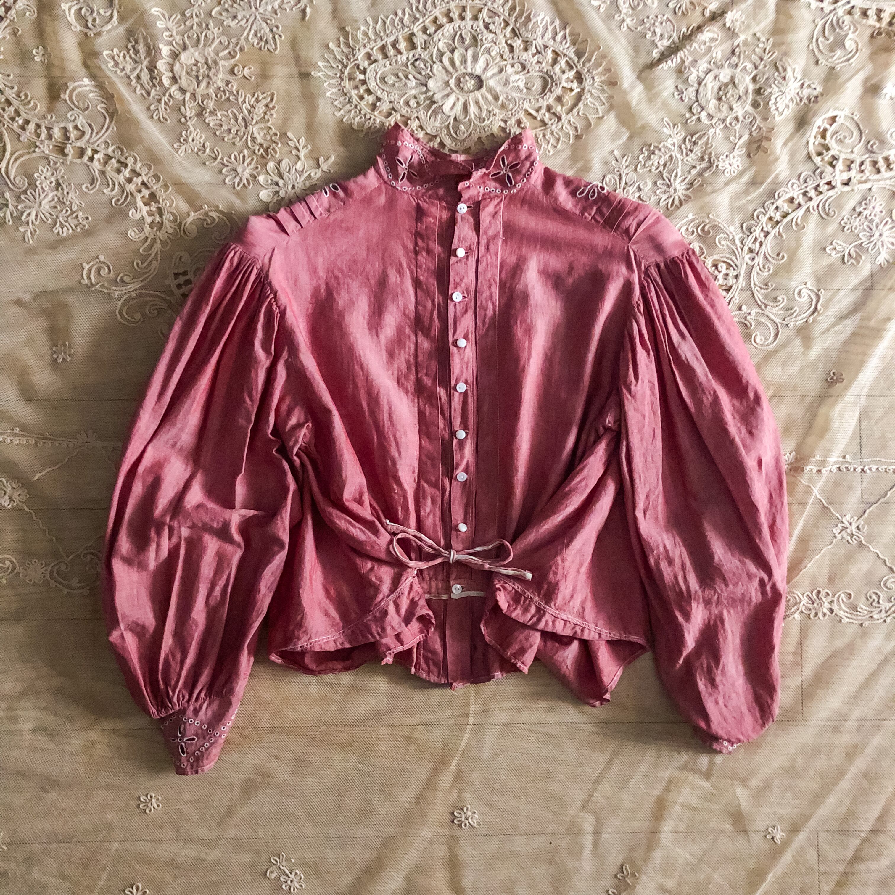 特徴 :約130年前のスペシャルなアンティークのレッドシャンブレーブラウス。
