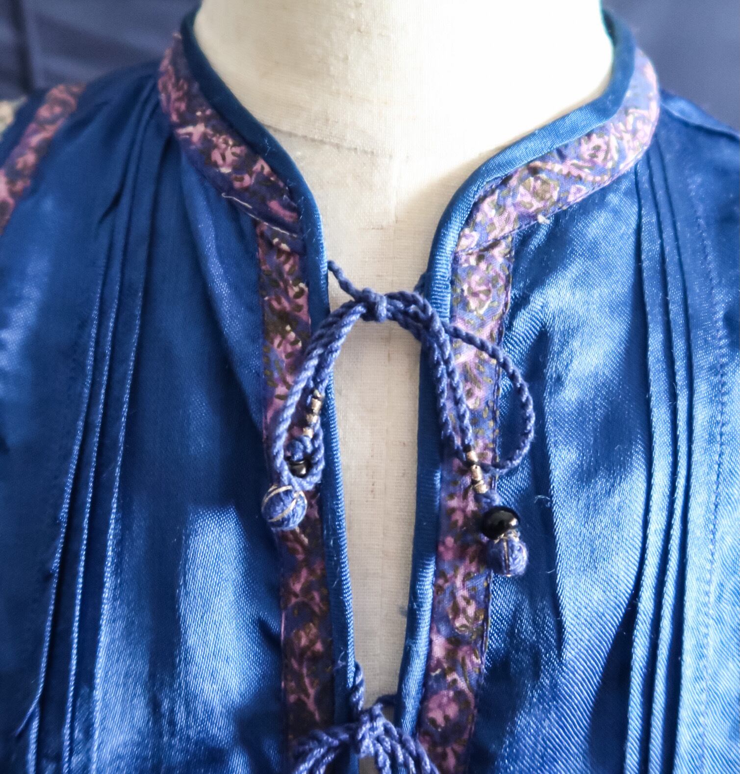 袖口や裾のパイピングもサテン生地になっています。