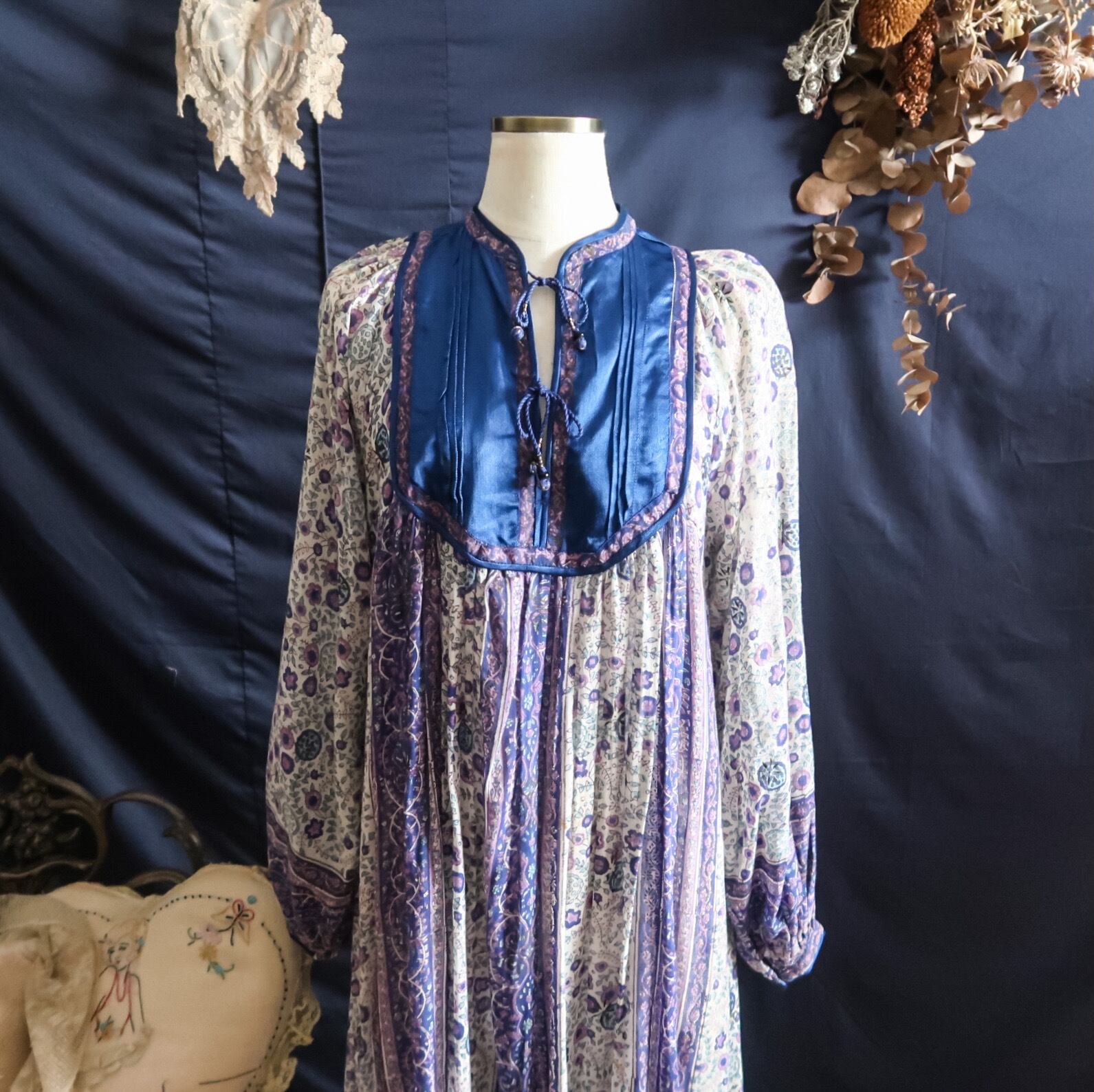 特徴 :年々希少価値の高まる1970年代頃のヴィンテージインド綿ワンピースです。