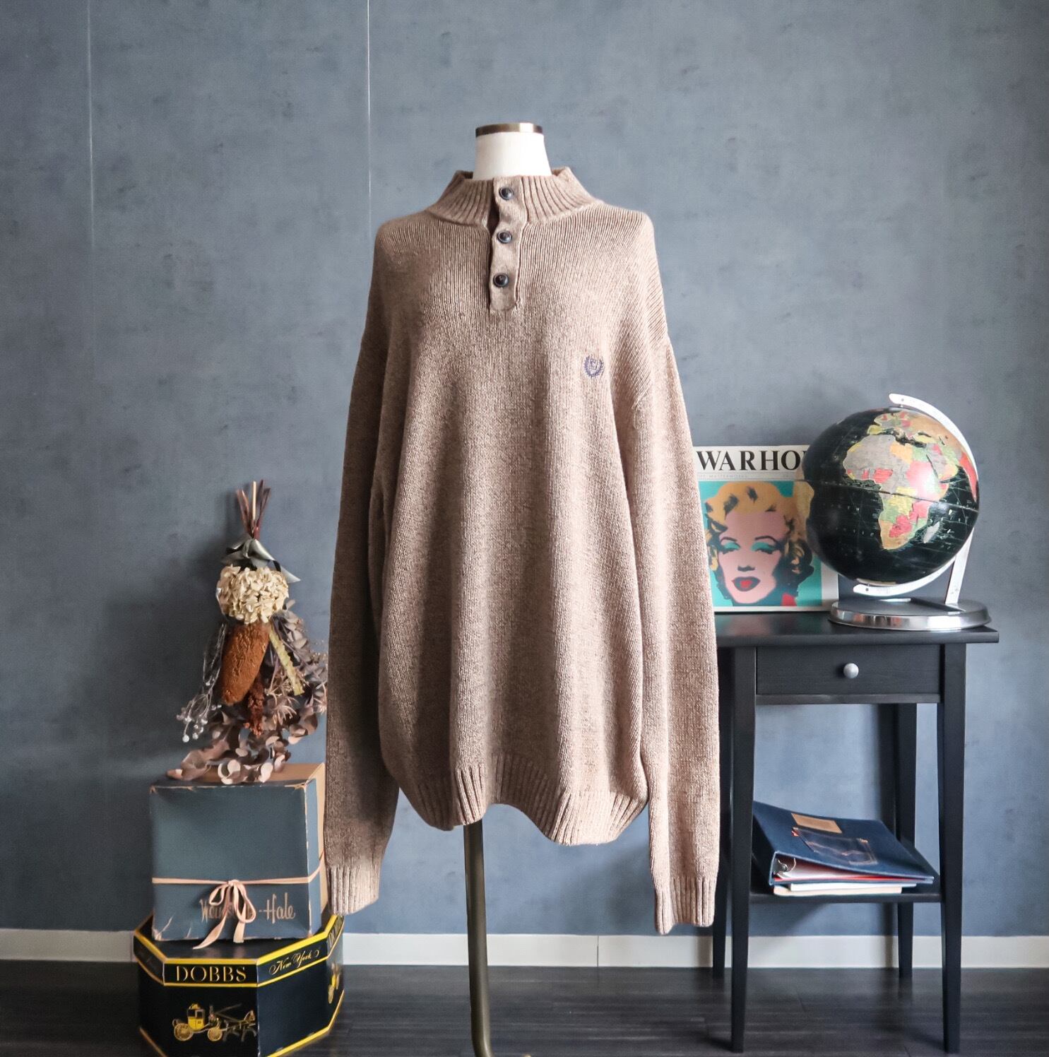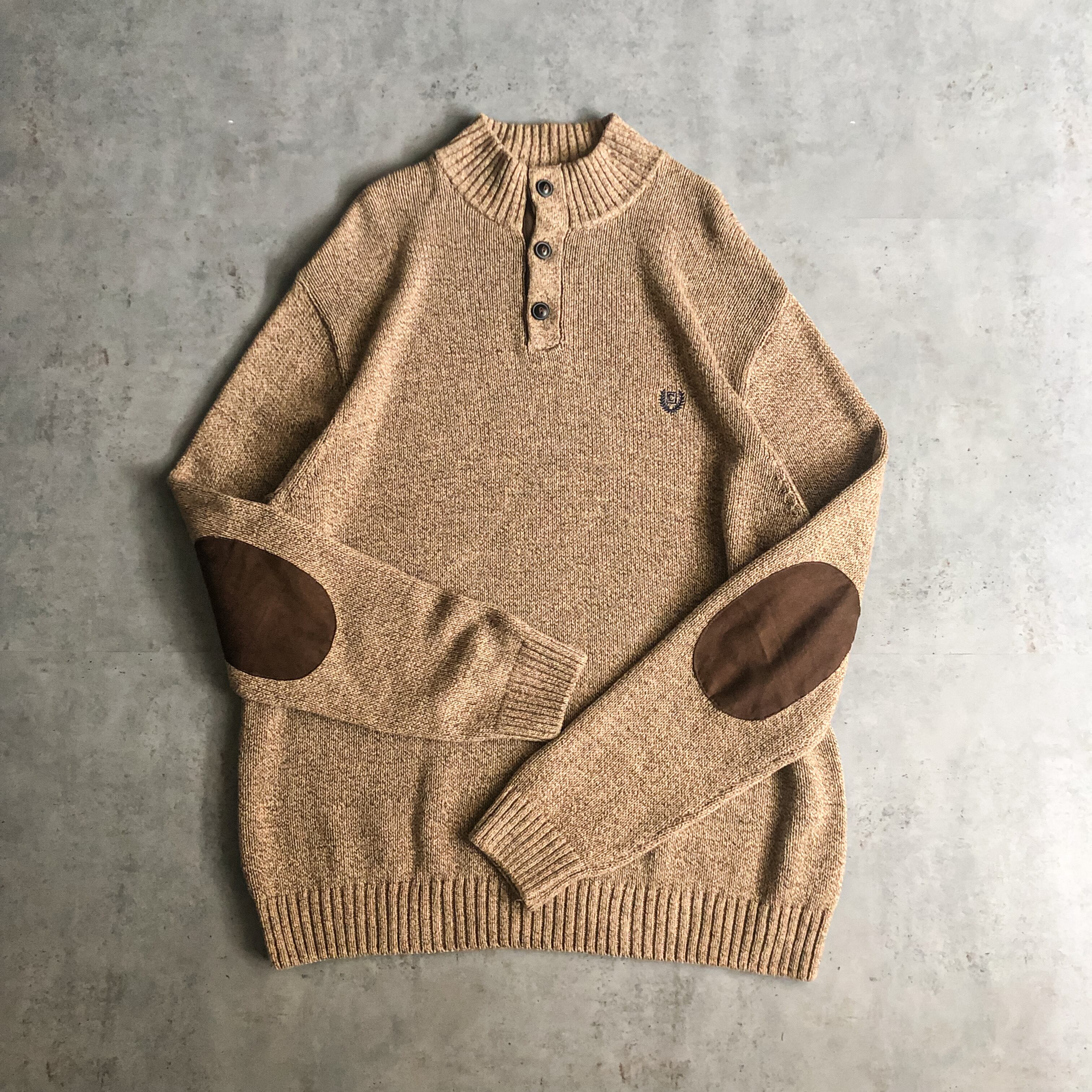 2000's~ Ralph Lauren "CHAPS" highneck cotton sweater with elbow patch