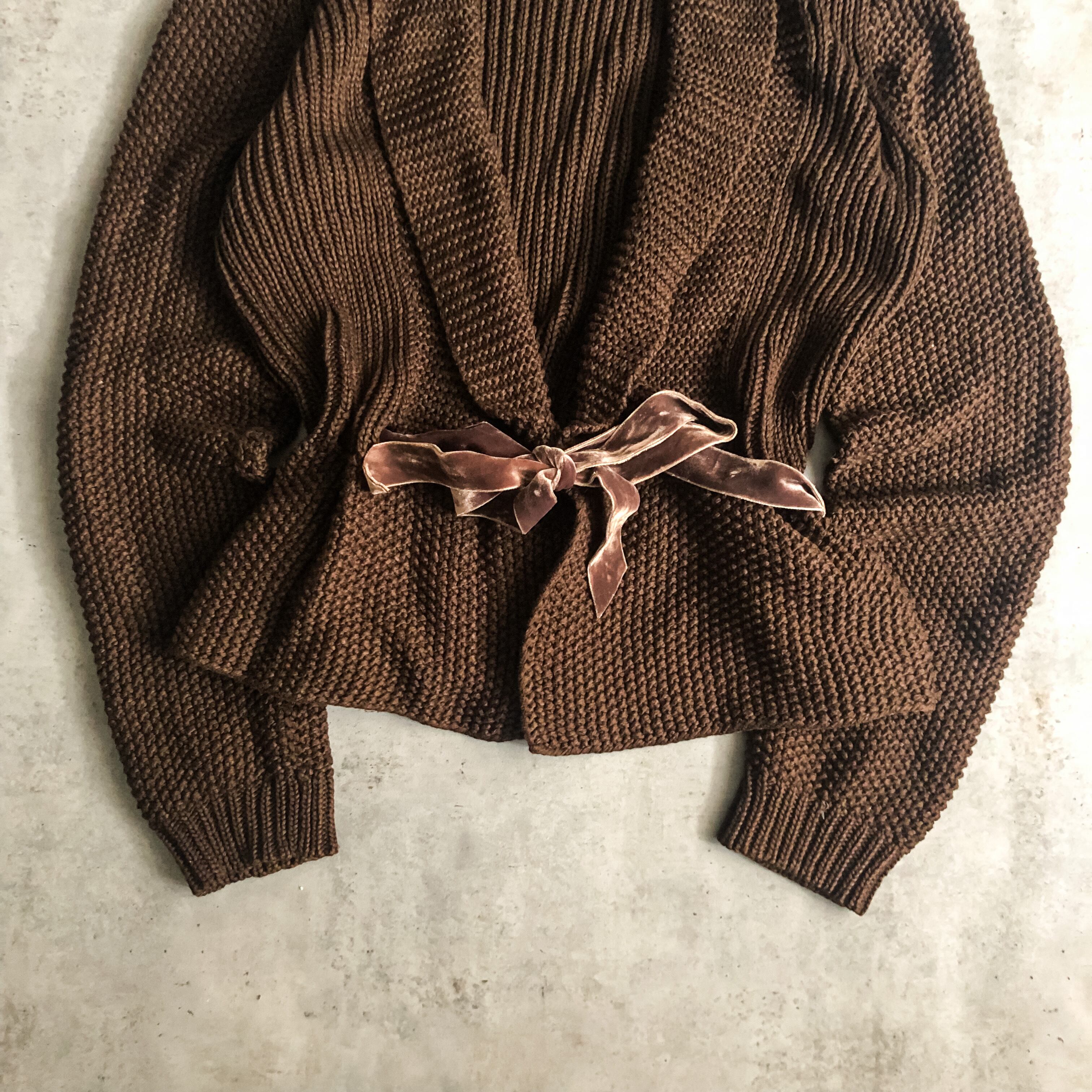 チョコレートブラウンのようなカラーに、ウエスト付近にはベルベットリボンのドローコードが付くスペシャルな逸品です。