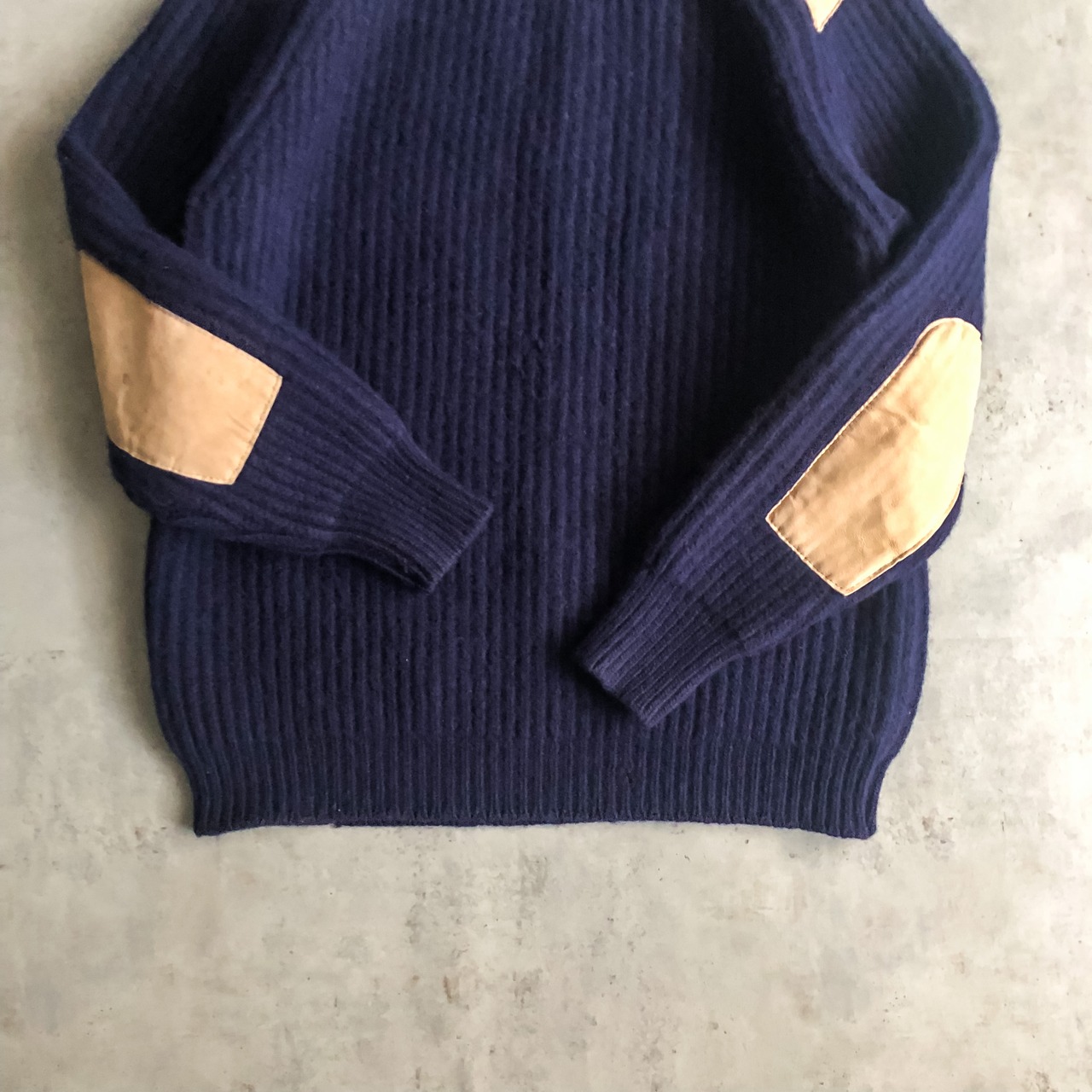 少し詰まり気味のネックに、コマンドーセーターのような肩と肘にスエードのパッチワークが付く素晴らしいデザイン。