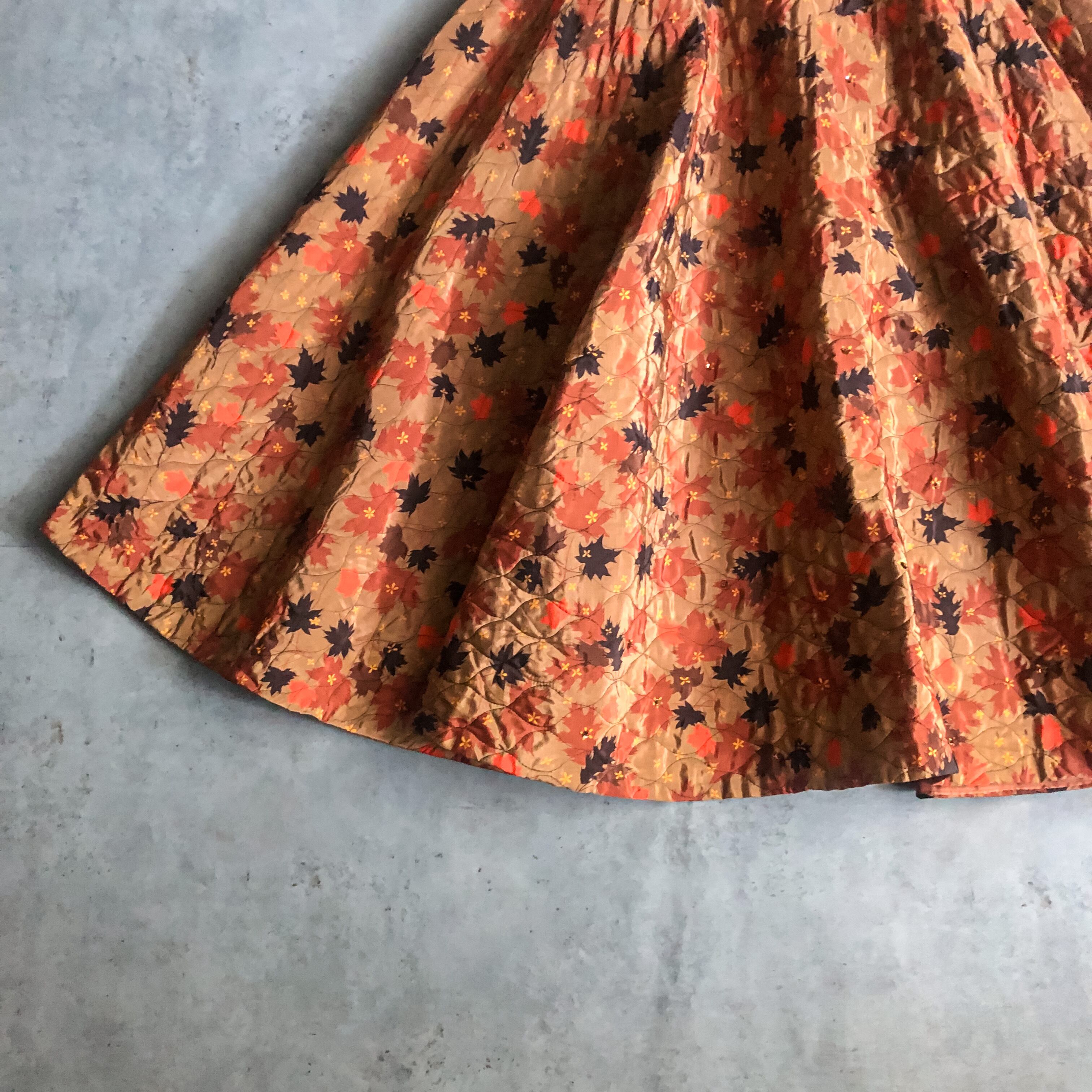 Vintage 1950's fallen leaves pattern quilting circular skirt