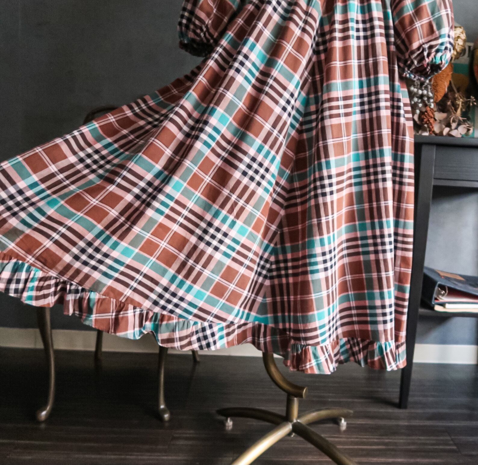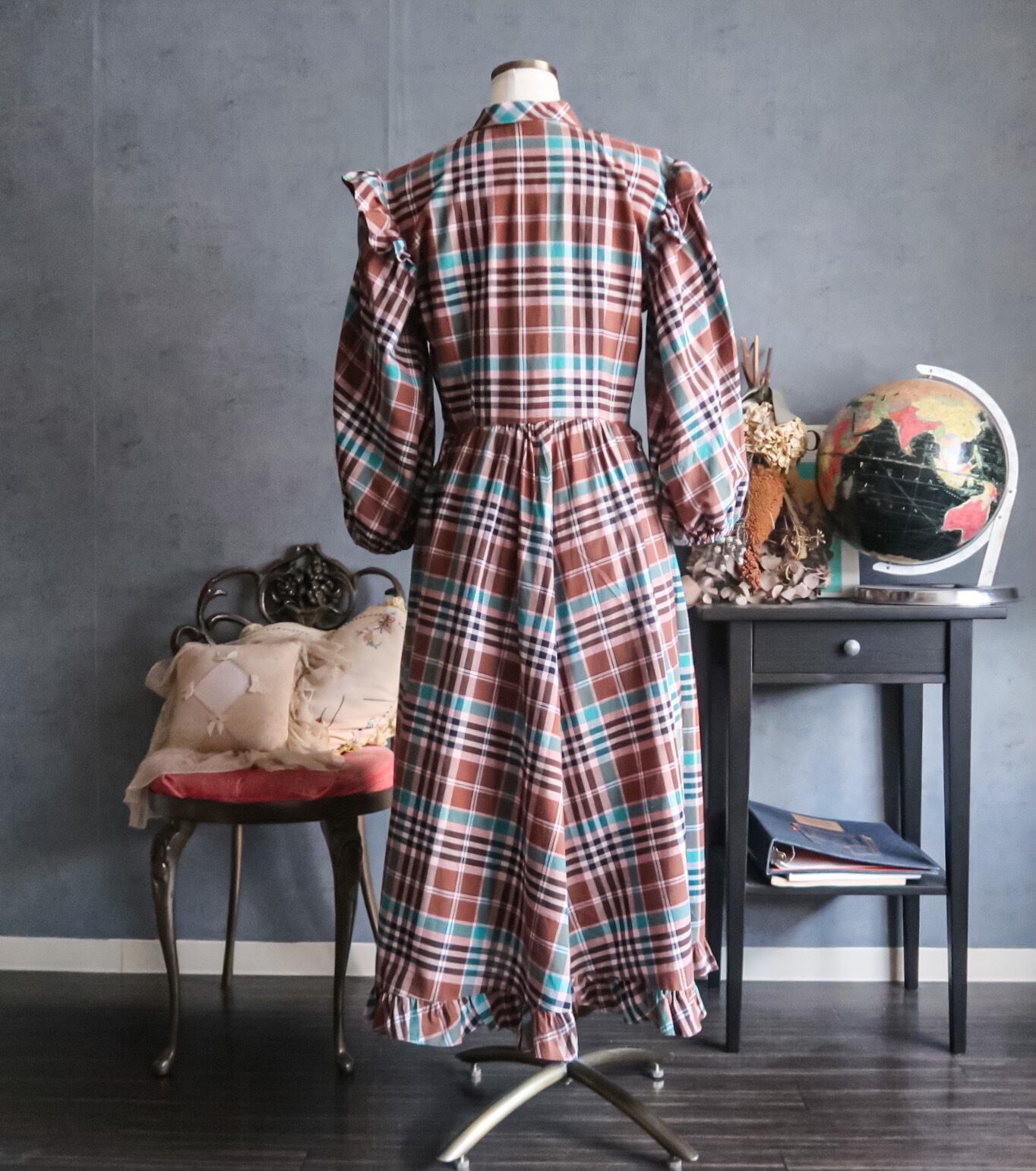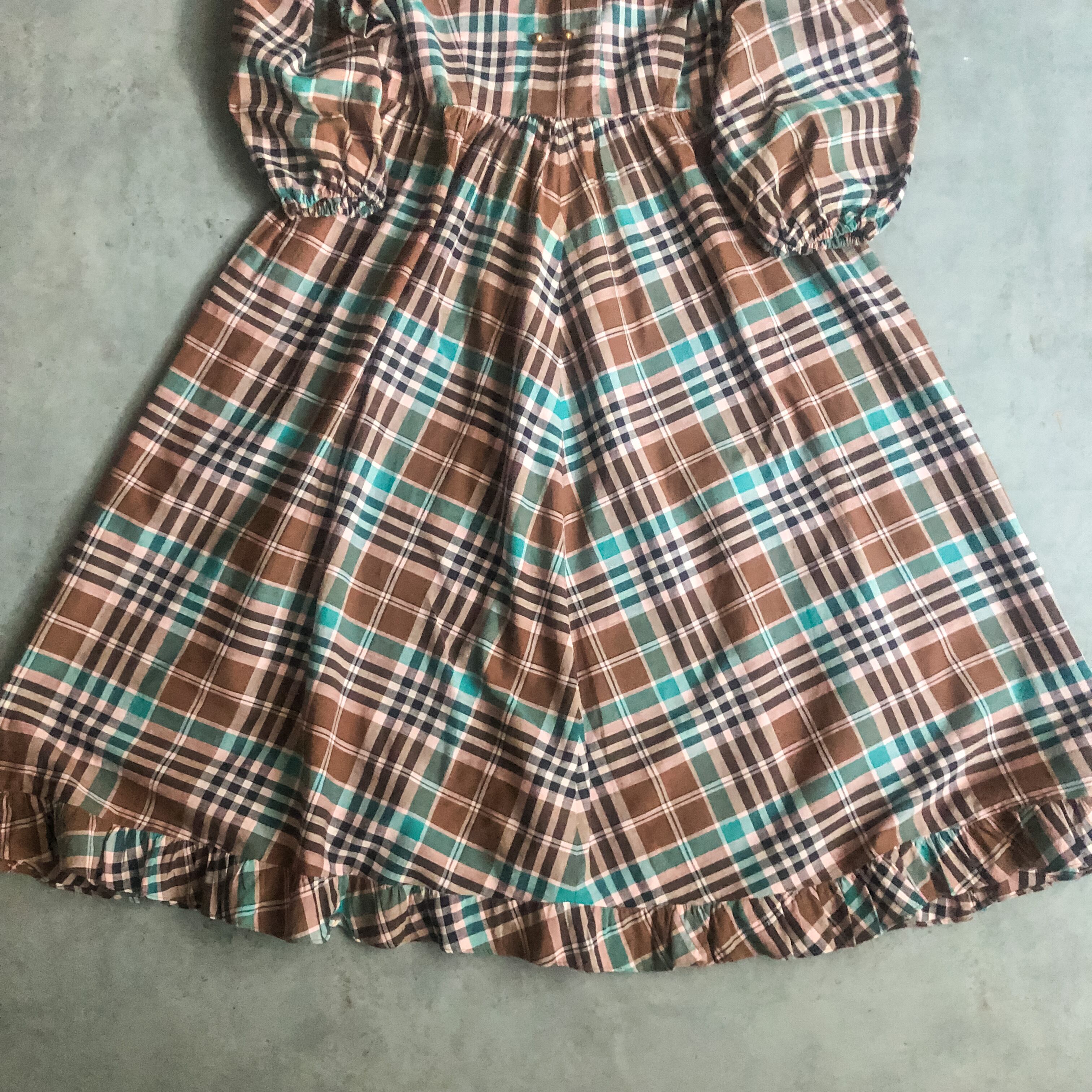 特徴 :絶妙なカラーリングのチェック柄の1940'sヴィンテージワンピース。