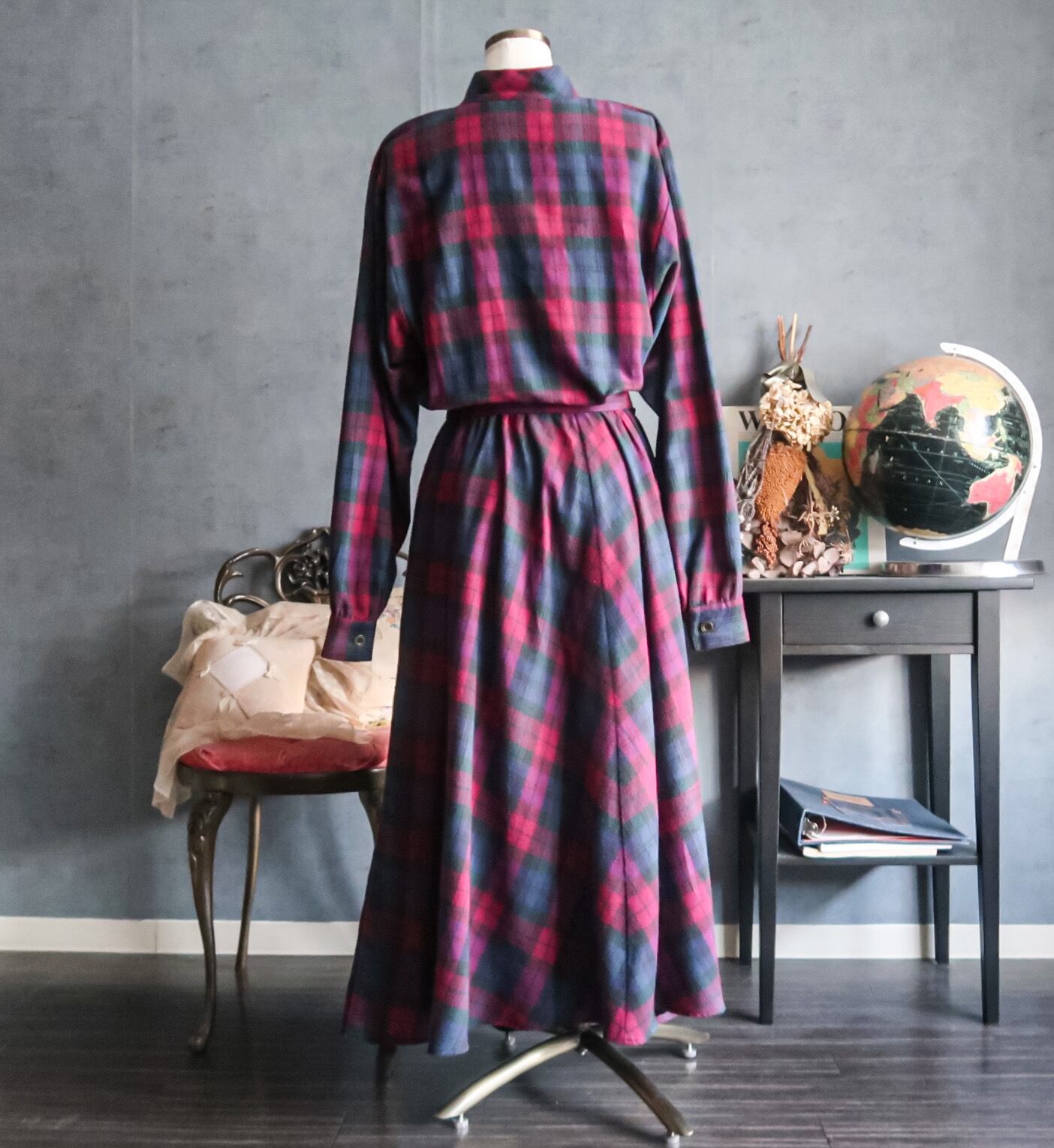 1980's "Carol Anderson" plaid pattern band collar dress made in USA