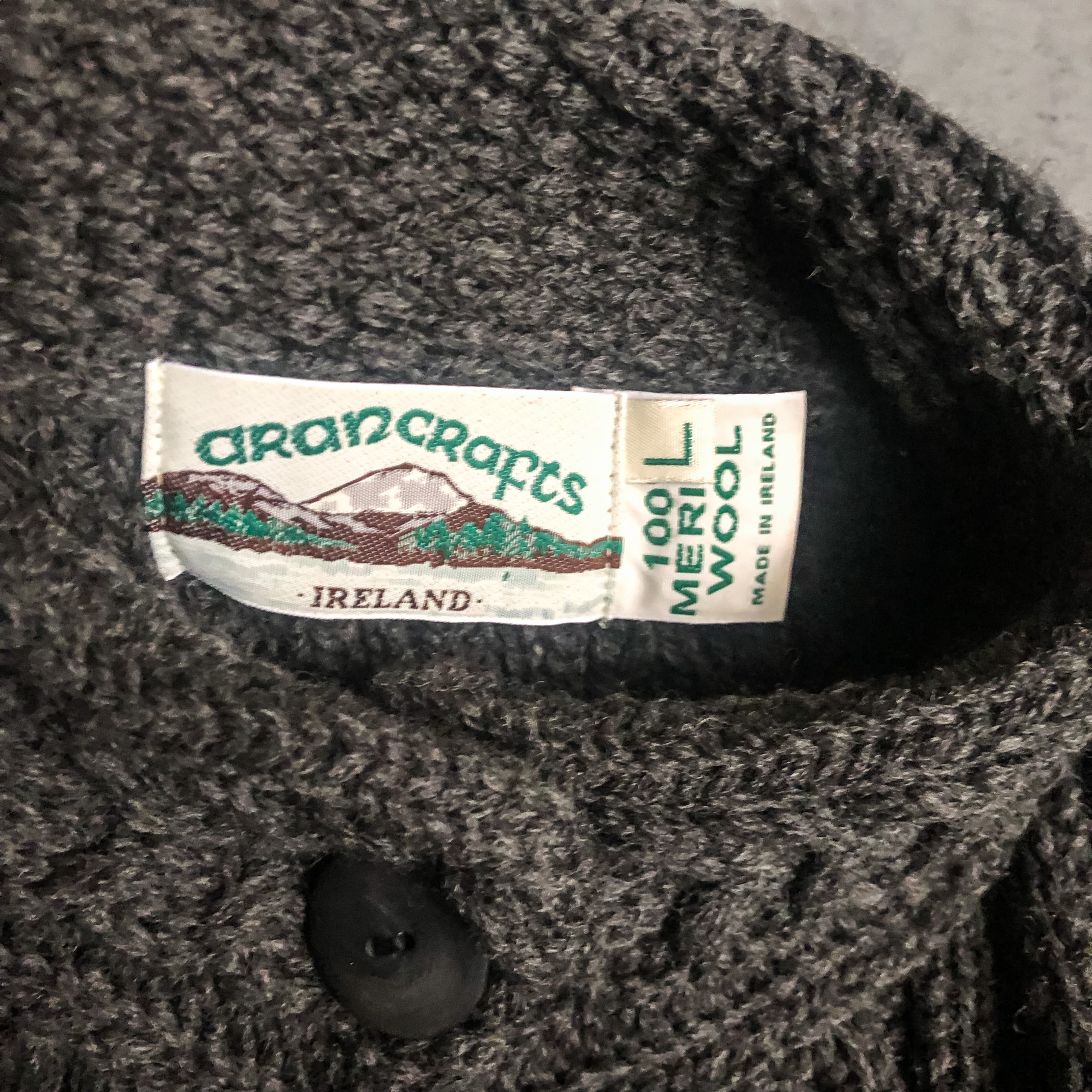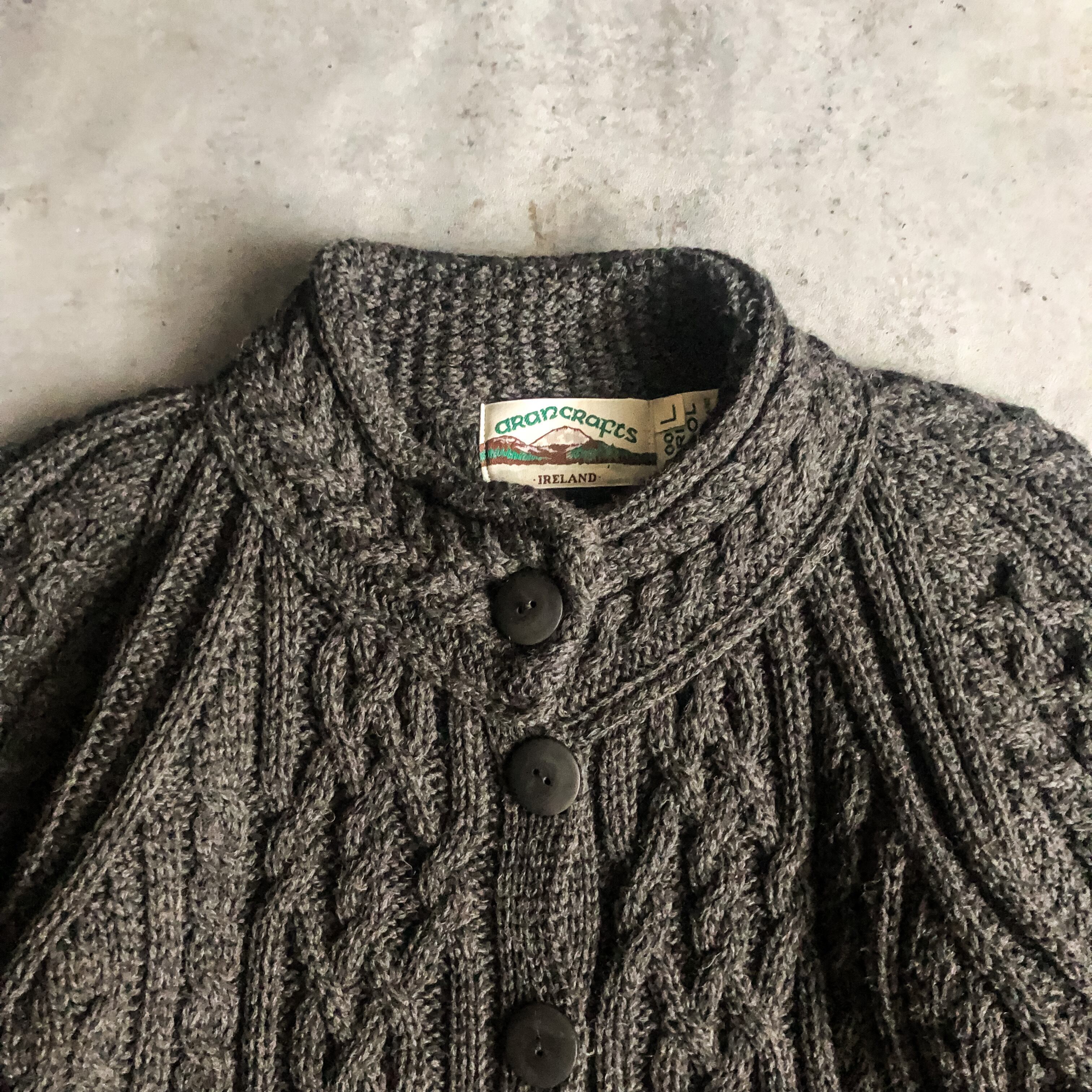 "ARAN CRAFTS" gray stand collar fisherman cardigan made in Ireland