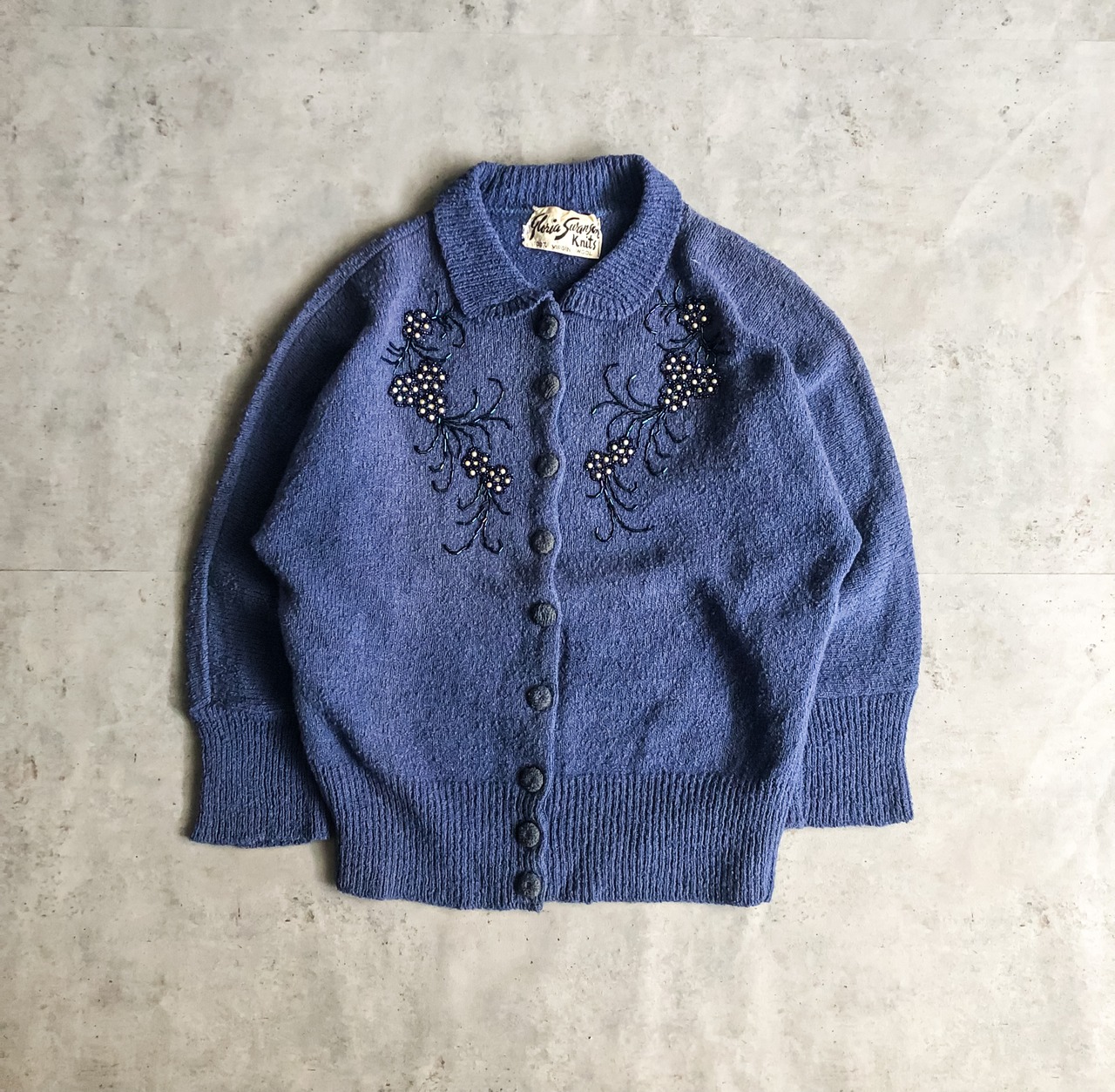 特徴 :少しくすんだ大人っぽいブルーが素敵な1950's頃のヴィンテージカーディガン。