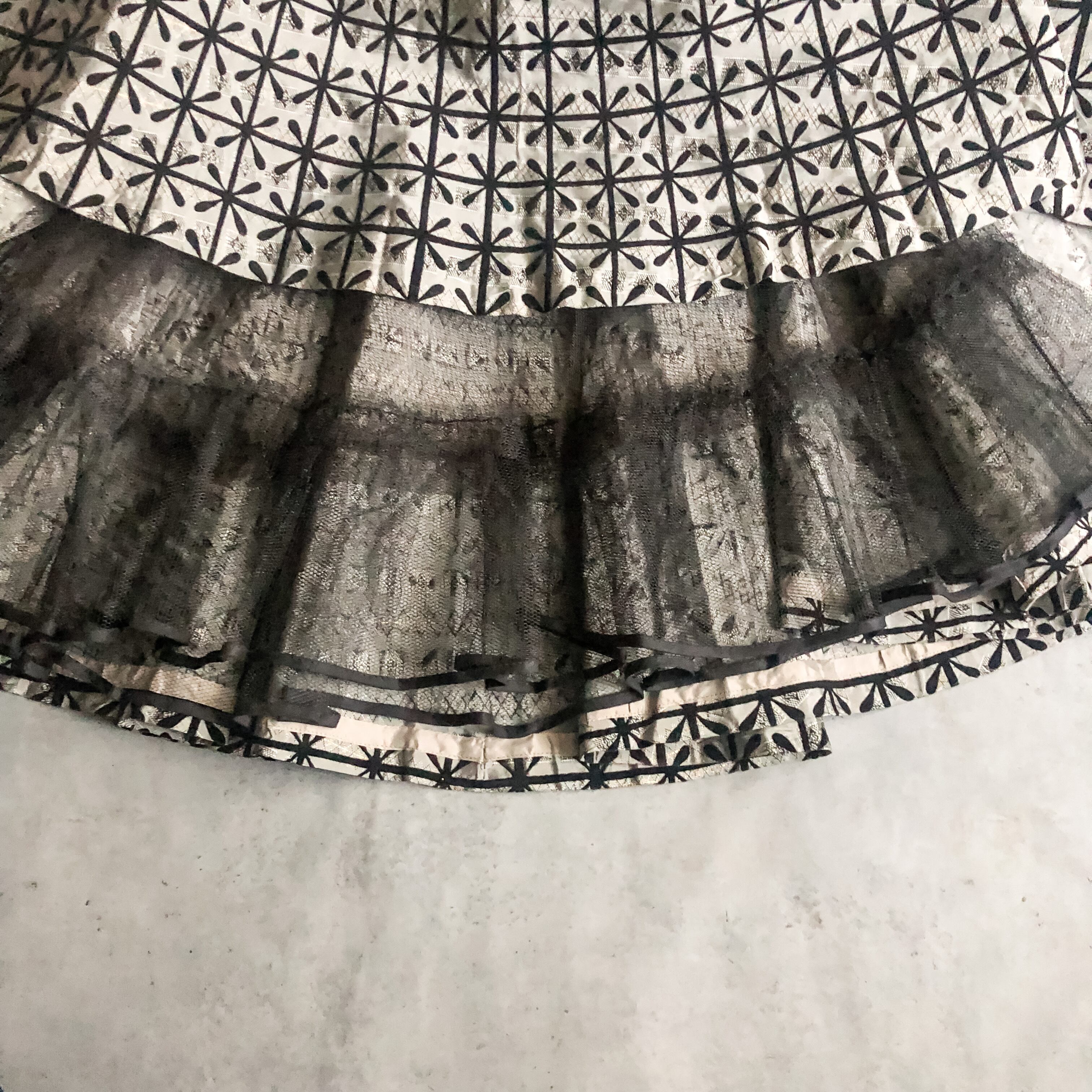 特徴 :少しシャリ感のあるアセテートのような素材感に全面にフロッキープリントが施された1950's頃のヴィンテージスカート。