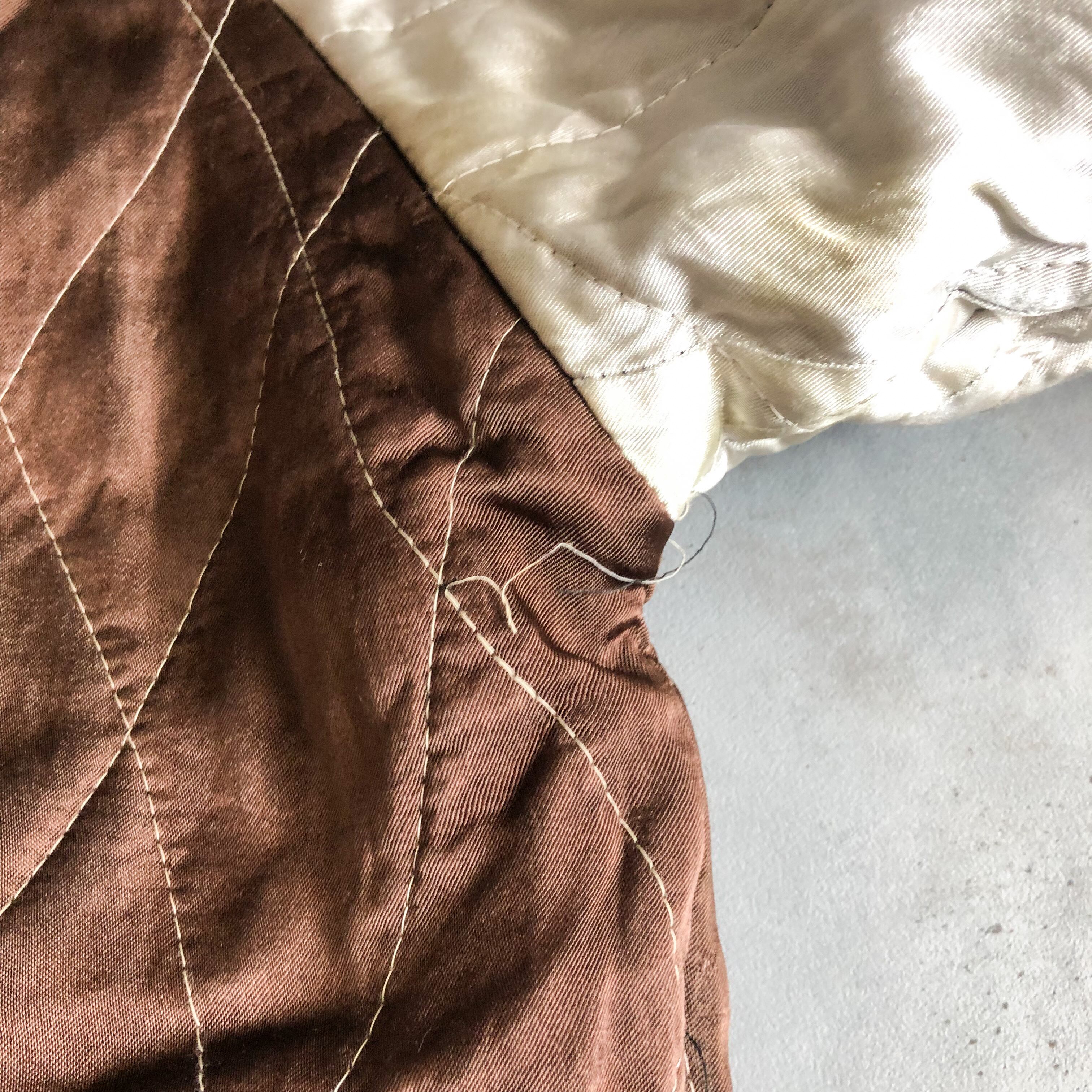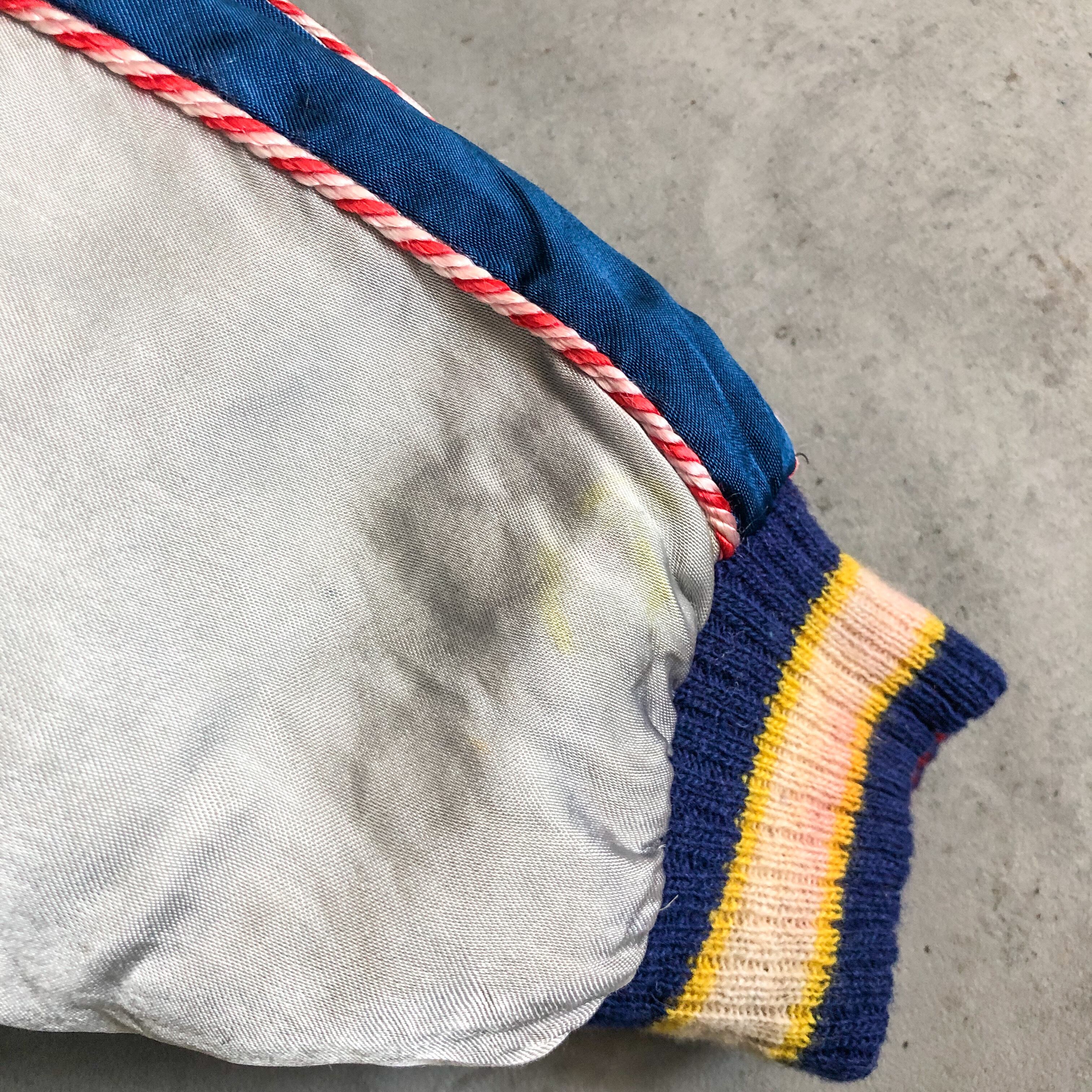 多少の汚れやB面にヤケのような箇所がありますが、大きなダメージやジッパーの破損も無く、比較的スカジャンの中ではまだ良好なコンディションではないかと思います。