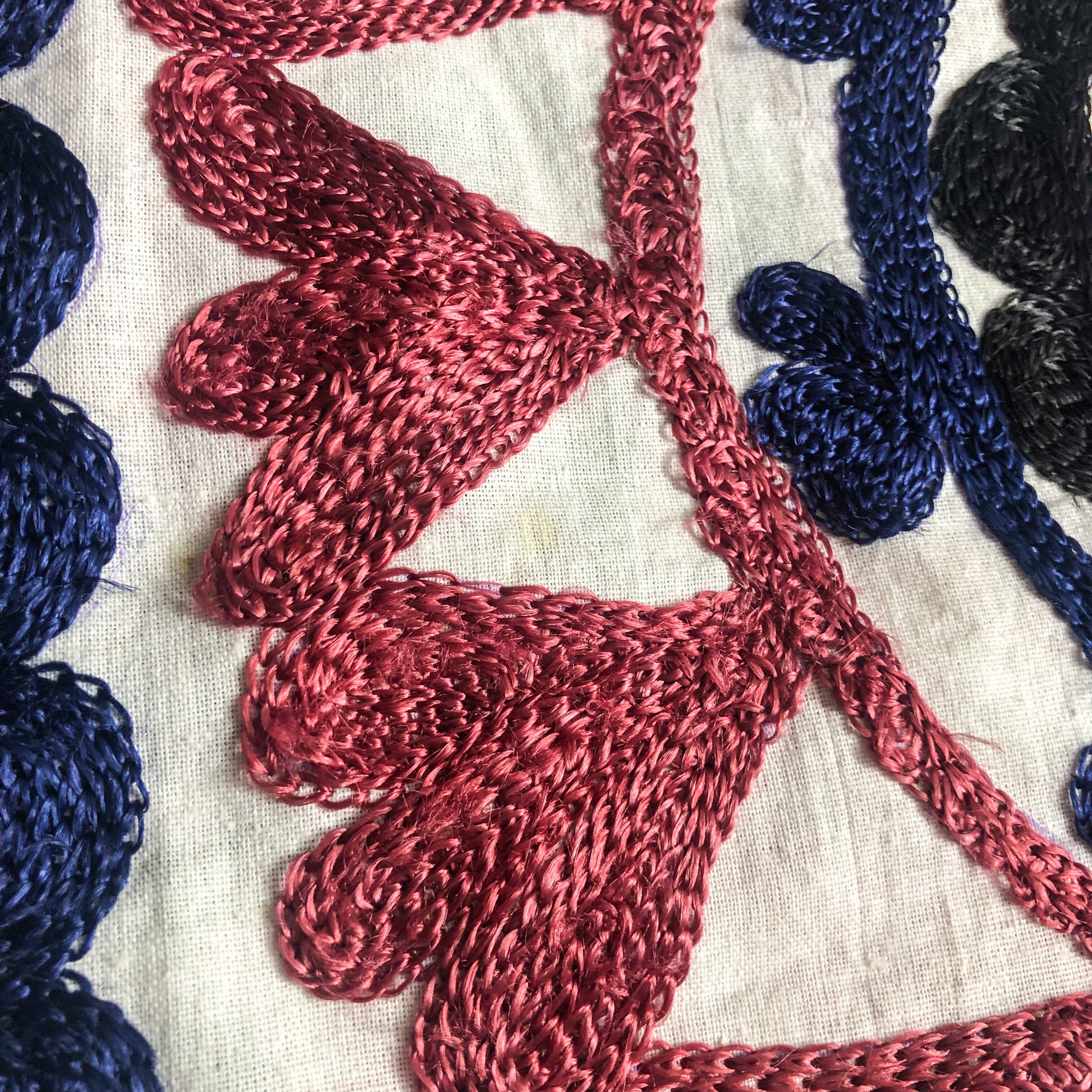 スザニはウズベキスタンの伝統的な刺繍で、華やかな大きな刺繍なのがポイント。
