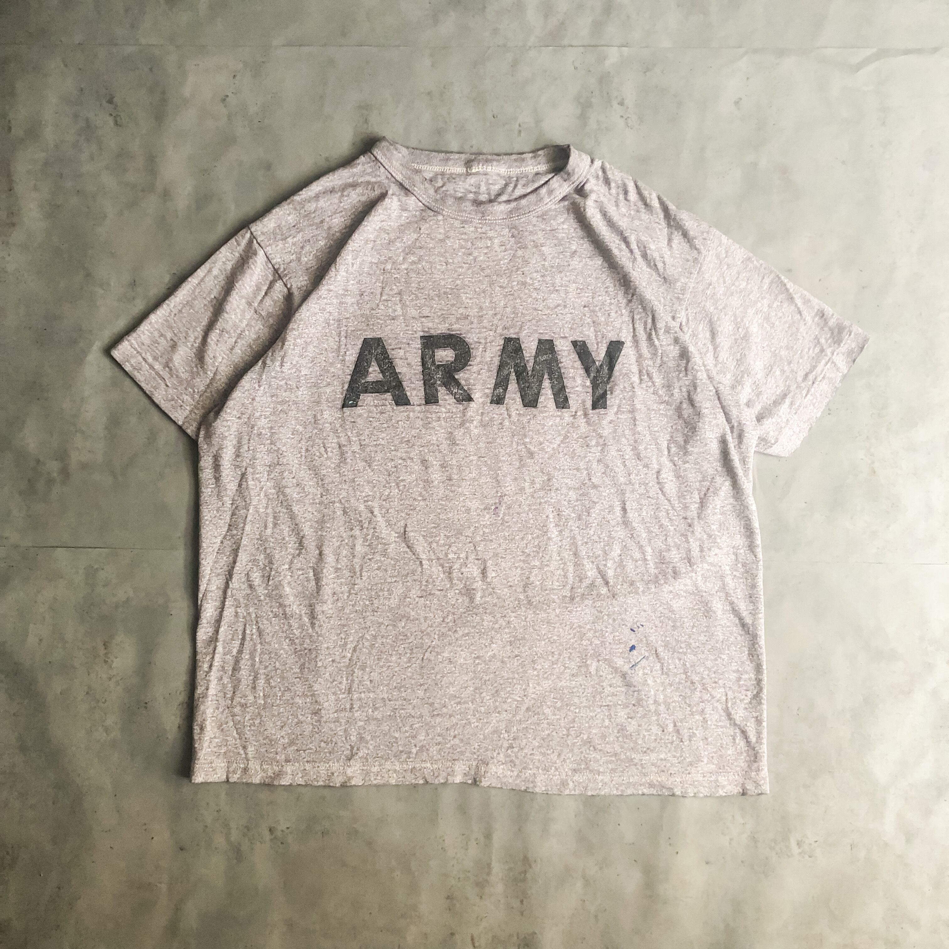 定番なARMY Tシャツですがコットン、ポリ素材特有の経年変化によるかすれたプリントやボディーが非常に雰囲気の良い一枚。