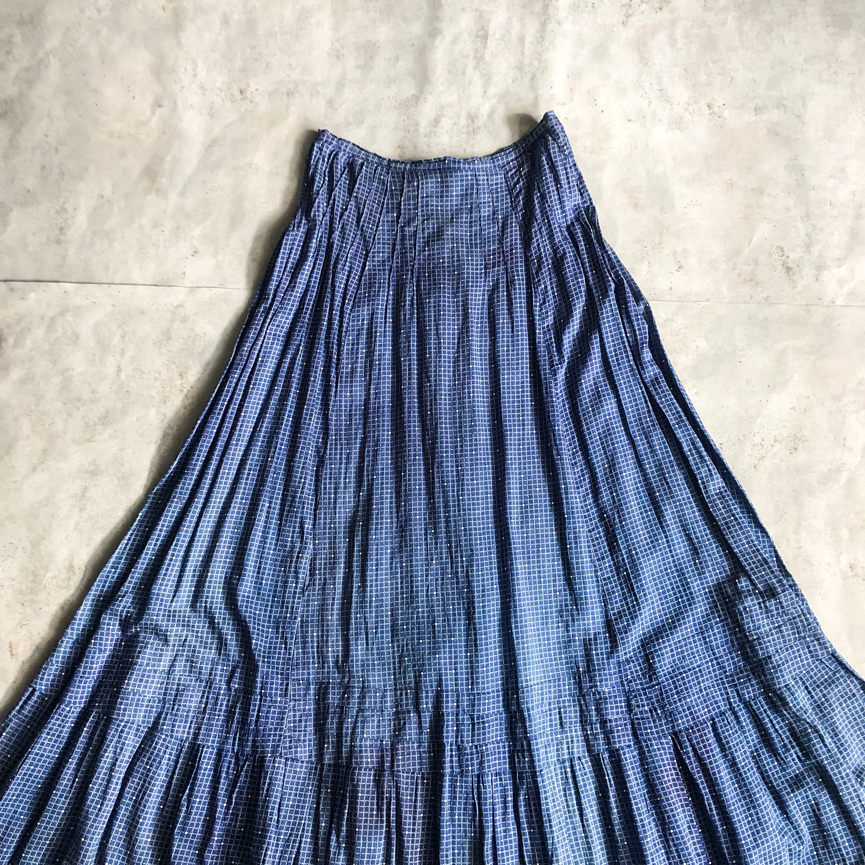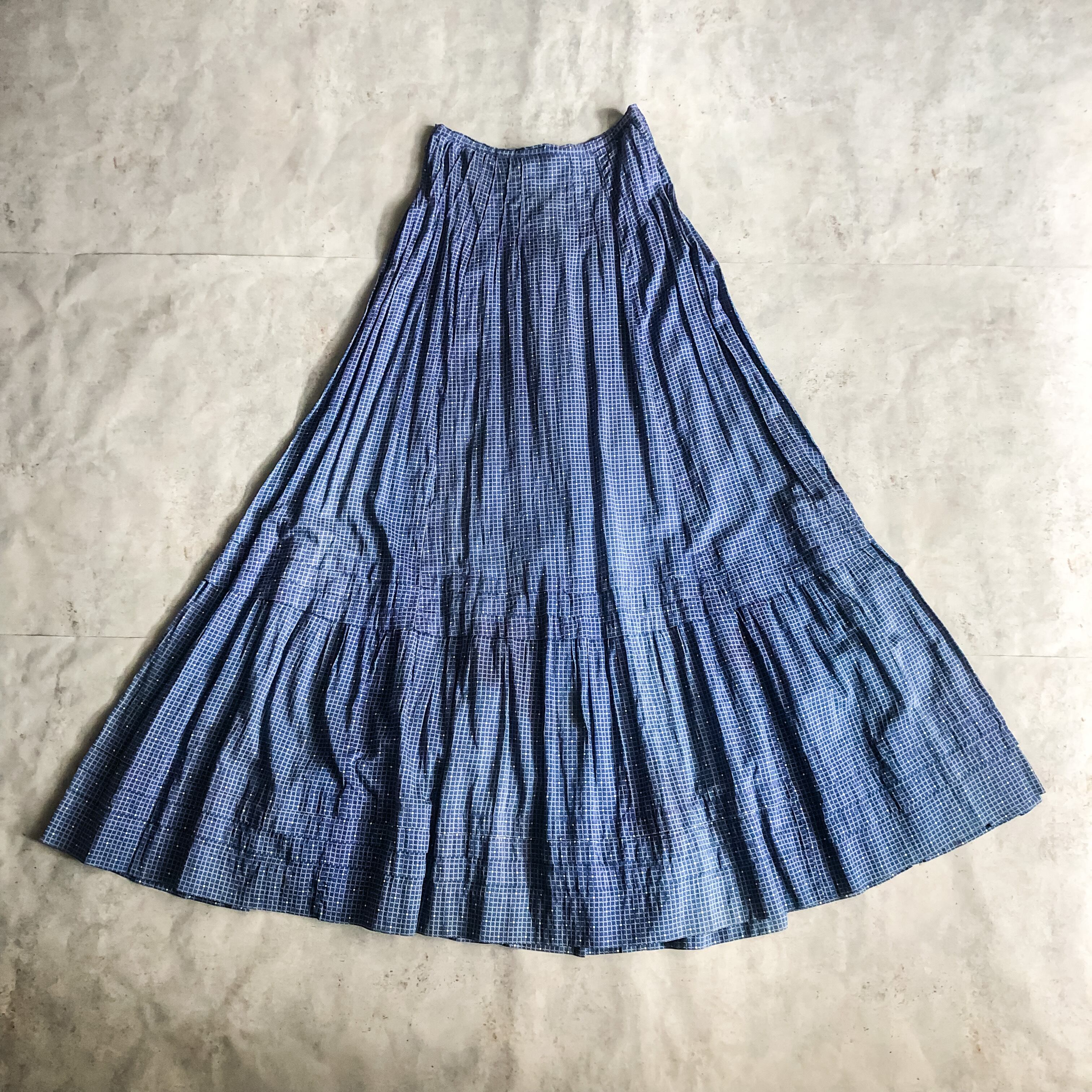 Special! antique 1900's~ dot×plaid pattern indigo calico skirt
