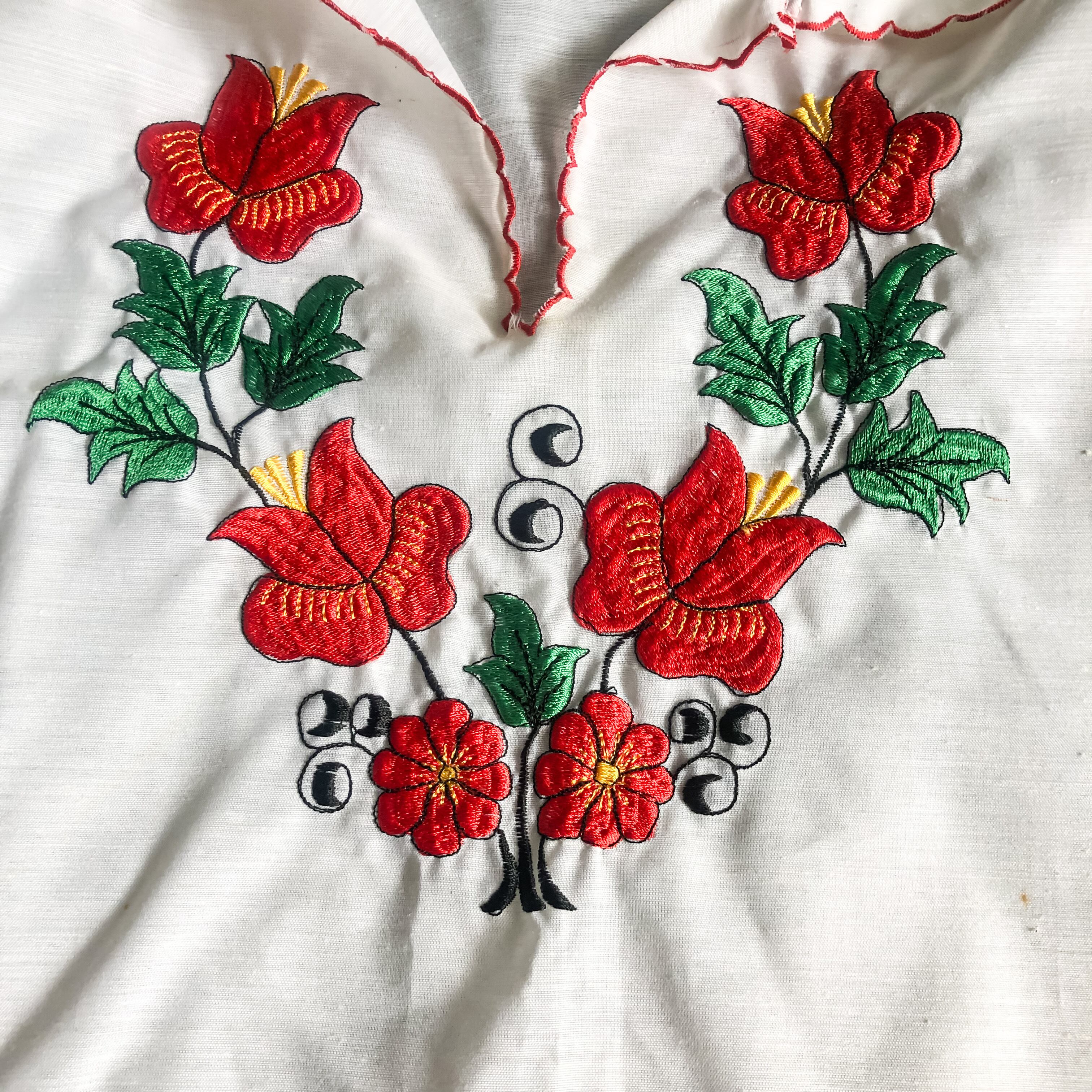 Vintage Hungarian kalocsa embroidery scallop design blouse