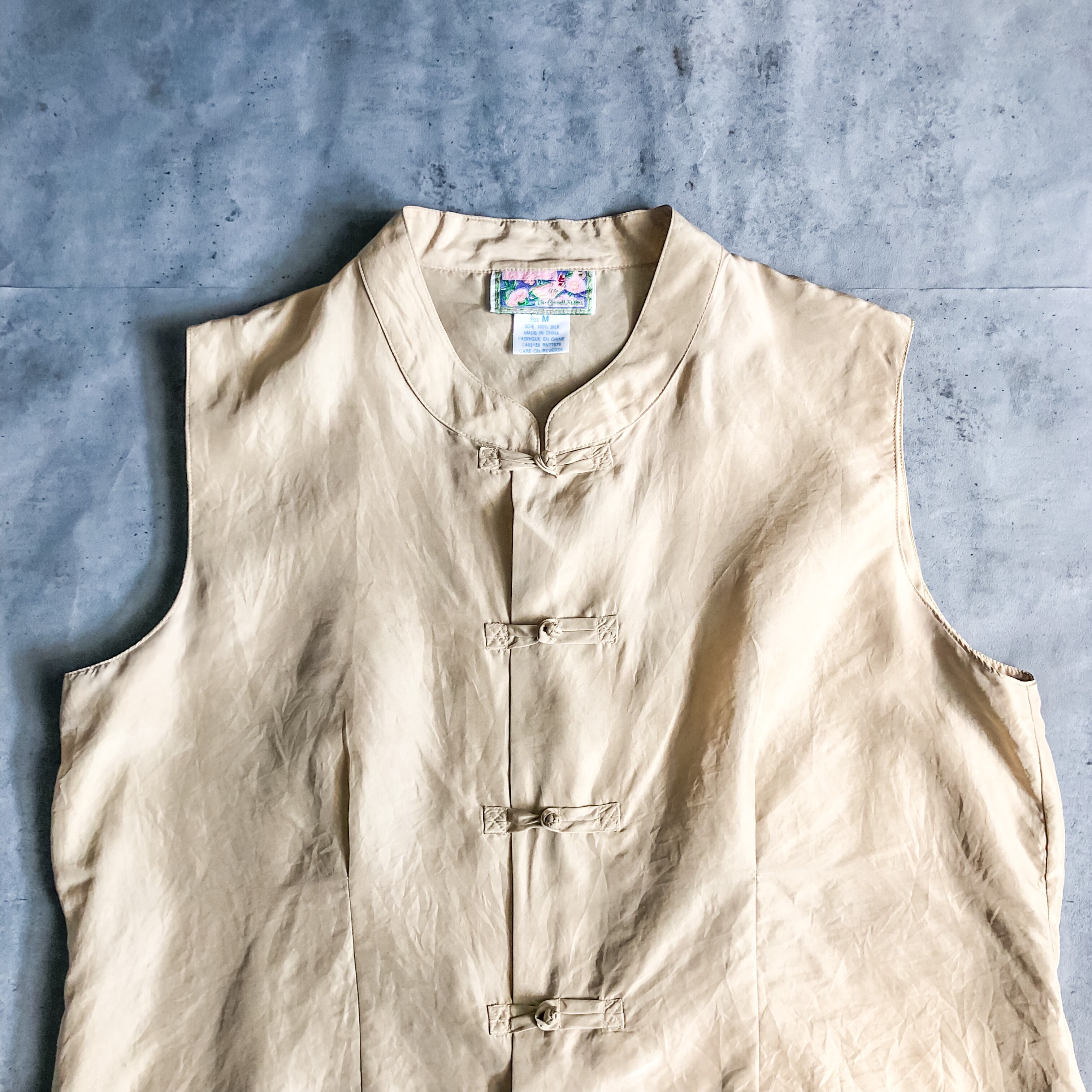 ノースリーブのブラウスとしてだけでなく、身幅広めですのでベスト感覚でも使えるアイテムです。