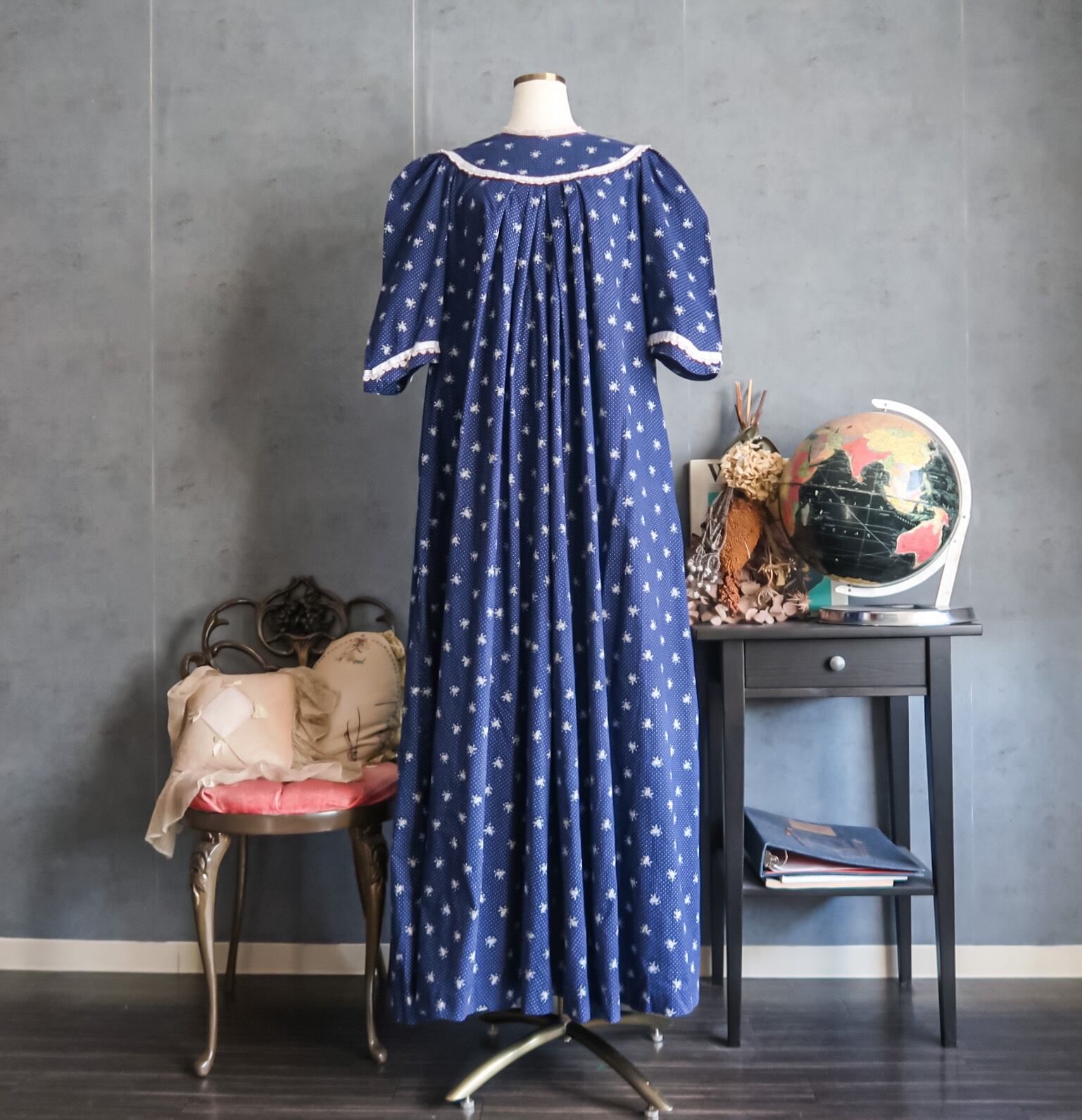 特徴 :アンティークのインディゴキャリコワンピースをインスパイアして作られた1970's頃のヴィンテージプレーリードレス。