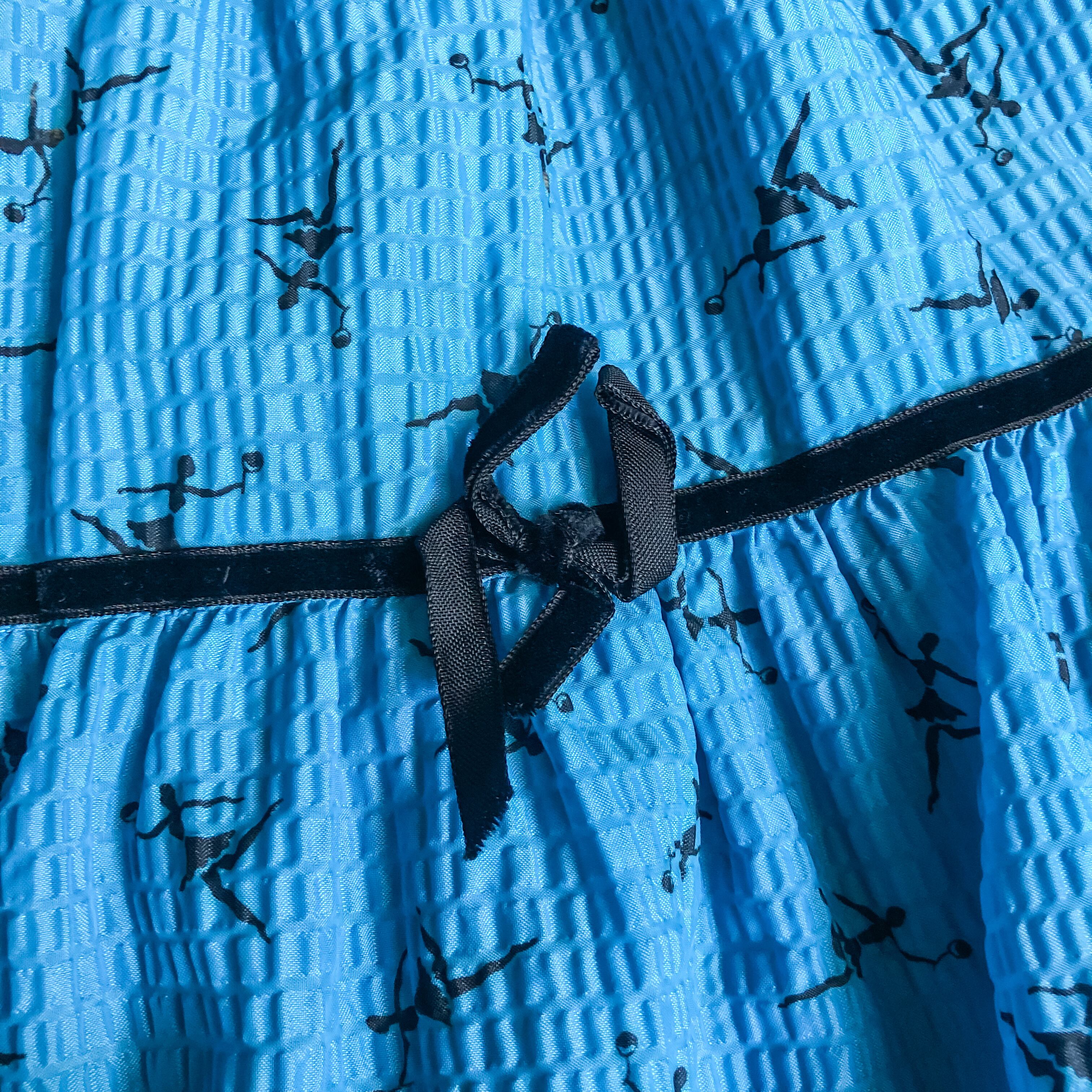 スカートはサーキュラーでボリュームのあるシルエットに、ベルベットのパイピングとリボンも非常にキュート。