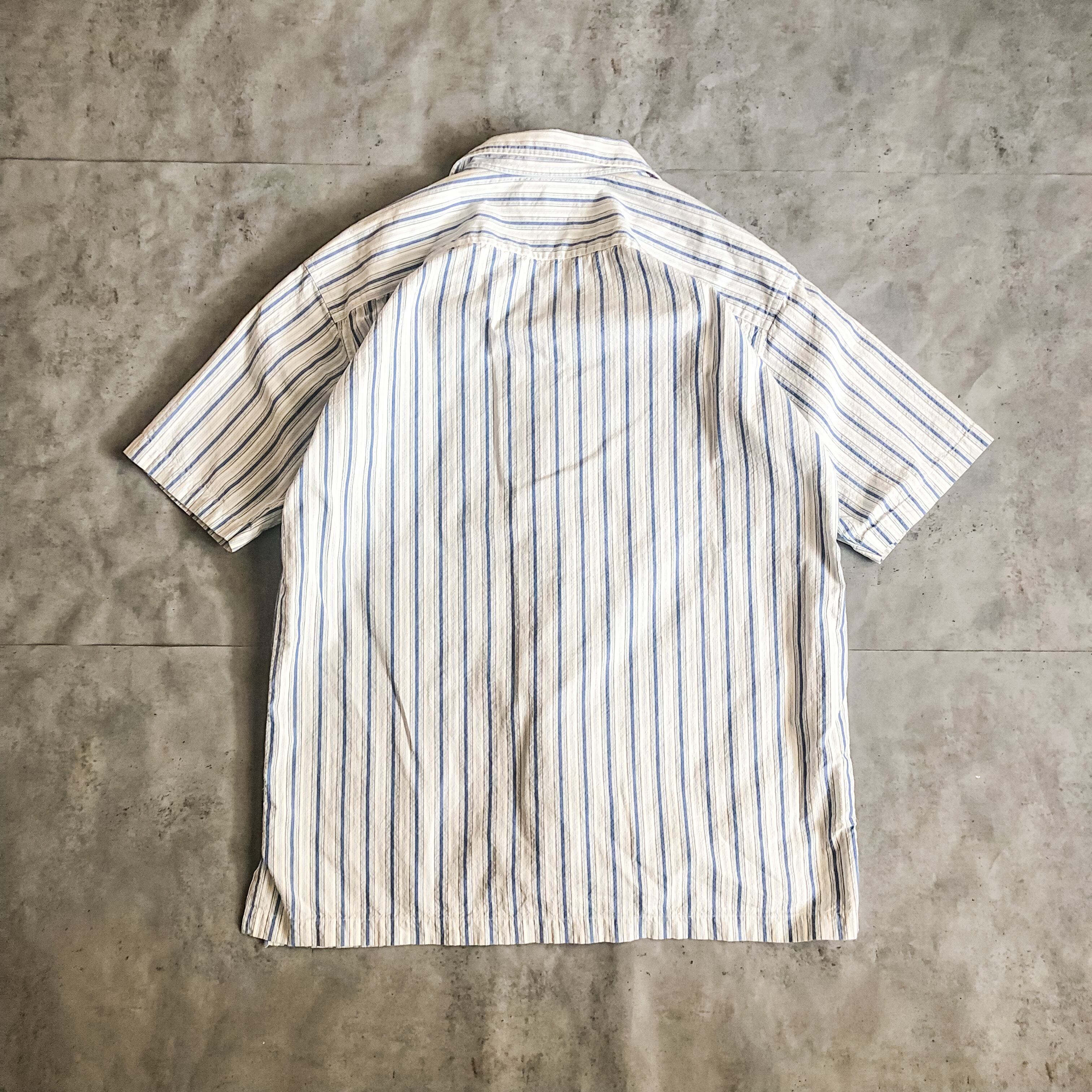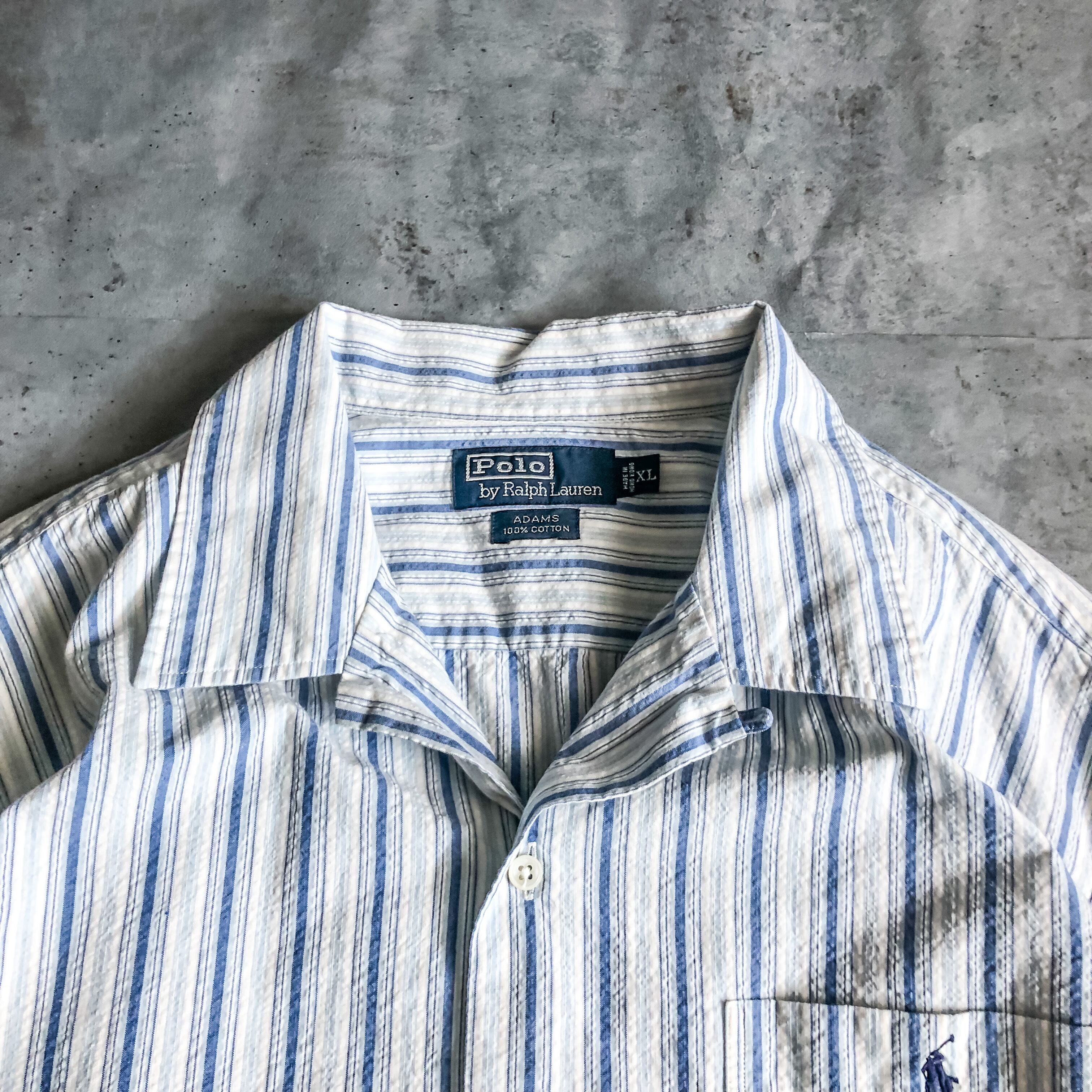 1990's Polo Ralph Lauren ADAMS stripe pattern seersucker open collar S/S shirt