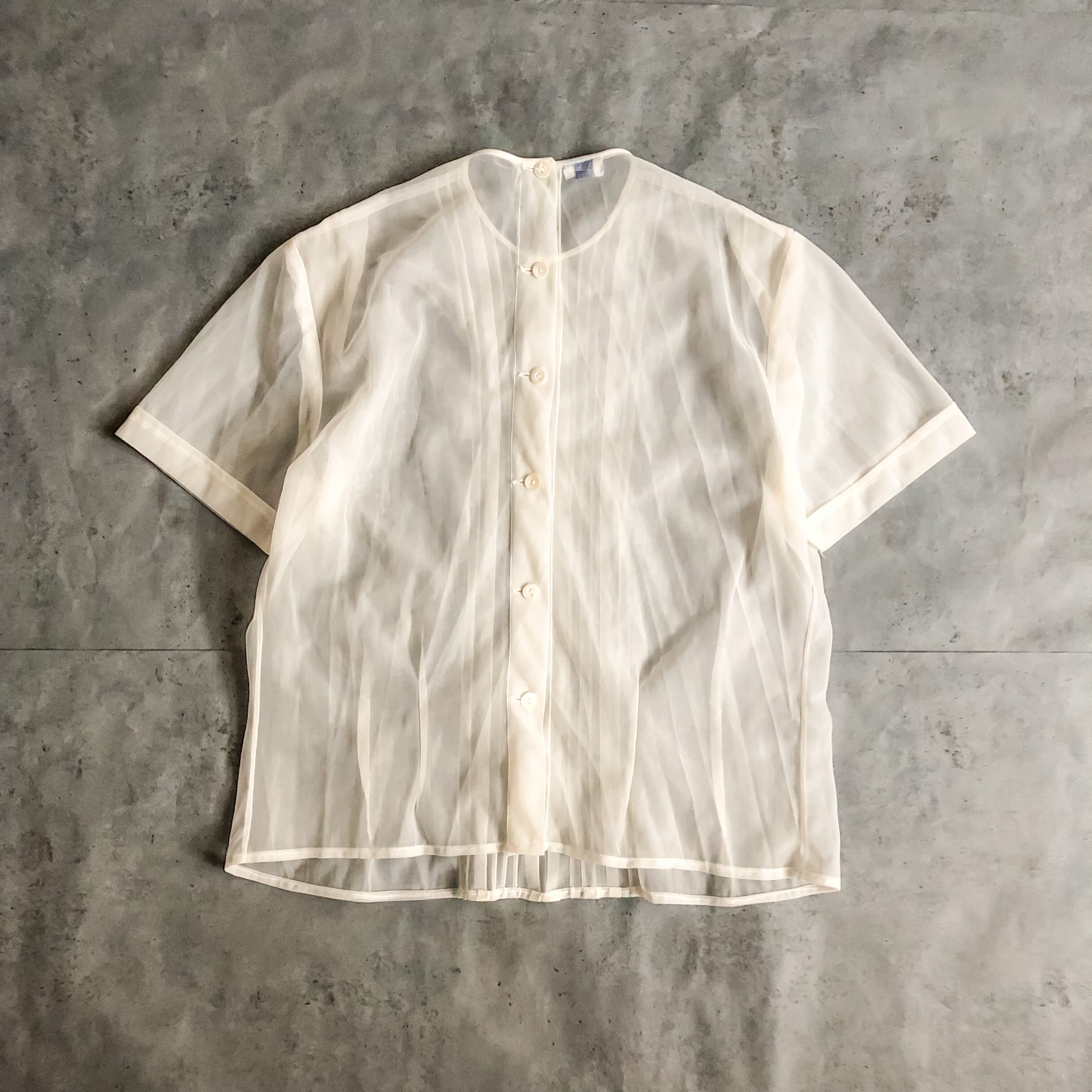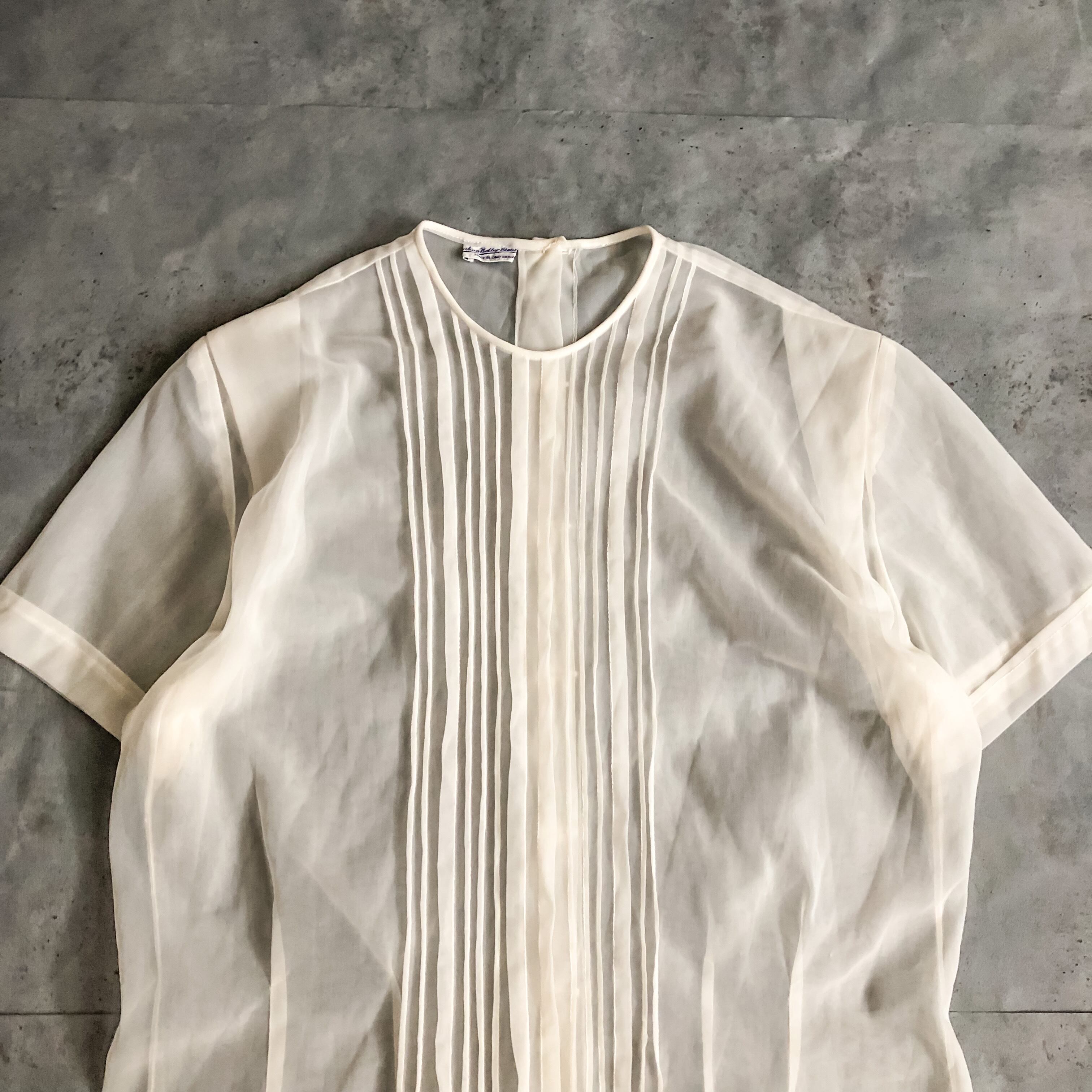 透け感のあるシアーな生地とシンプルなプリーツのデザインが素敵な逸品です。